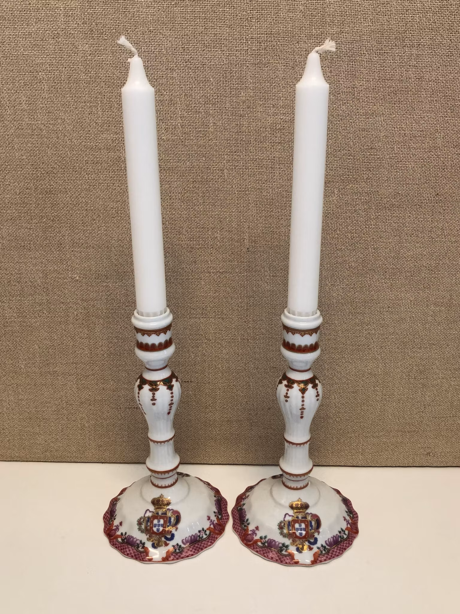 Ljusstakar ett par porslin stämplade Service D.Pedro III, XVIII Replica Palácio Nacional Queluz Portugal NG.