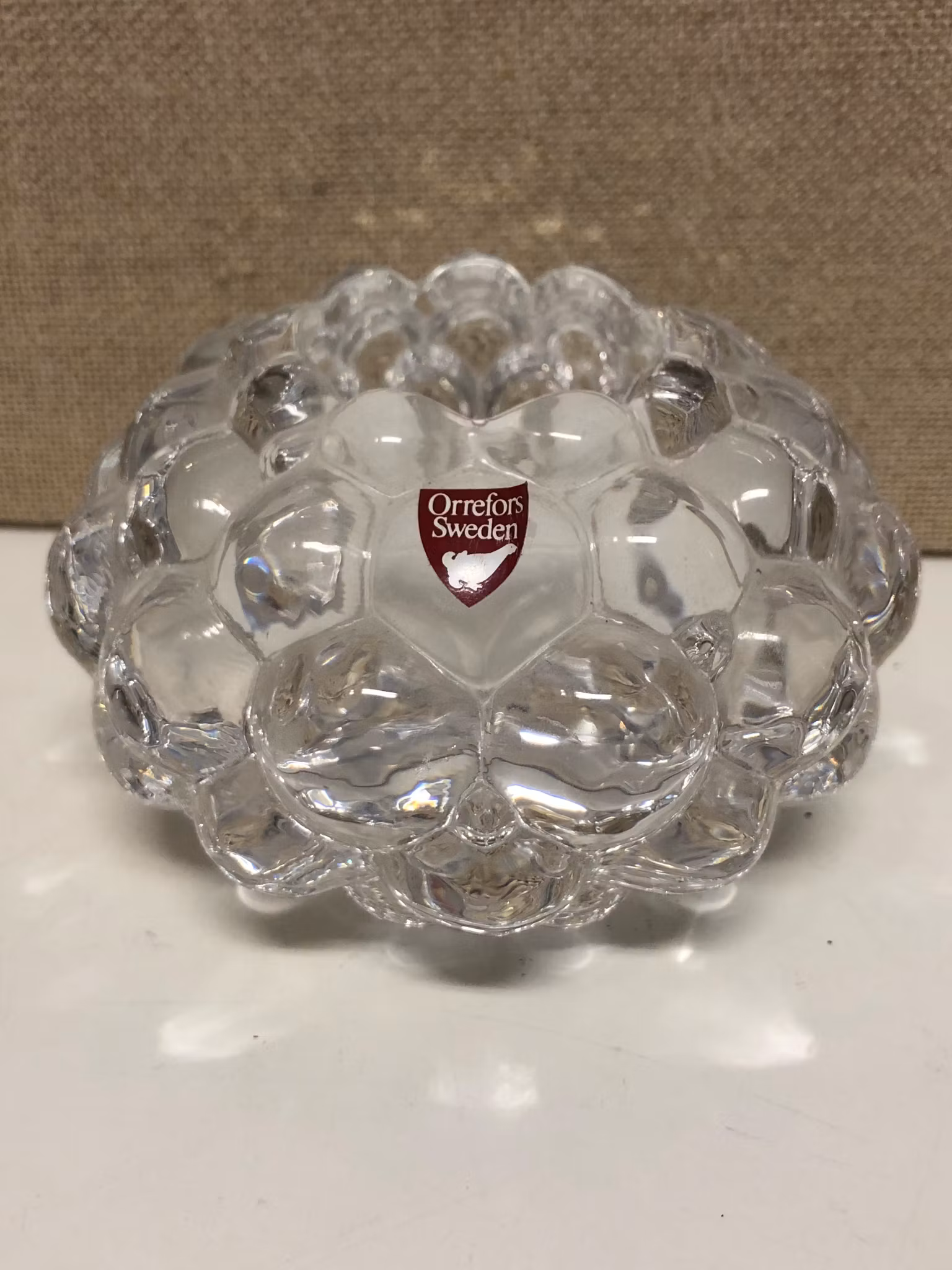 Ljuslykta Hallon design Ann Nilsson, märkt i botten samt etikett Orrefors.