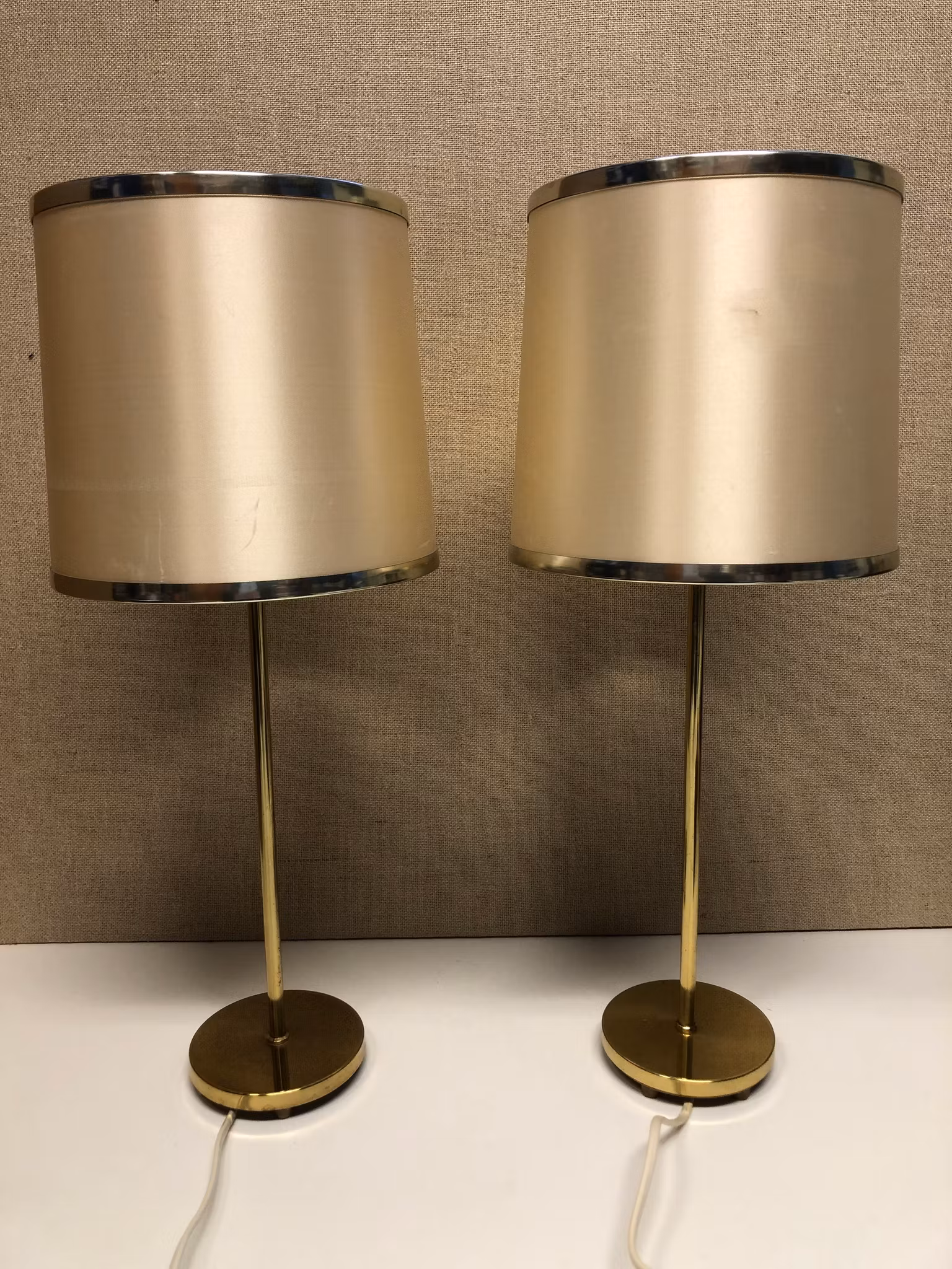 BORDSLAMPOR, ett par, mässsing, 6280 Falkenbergs Belysning. 70-tal.