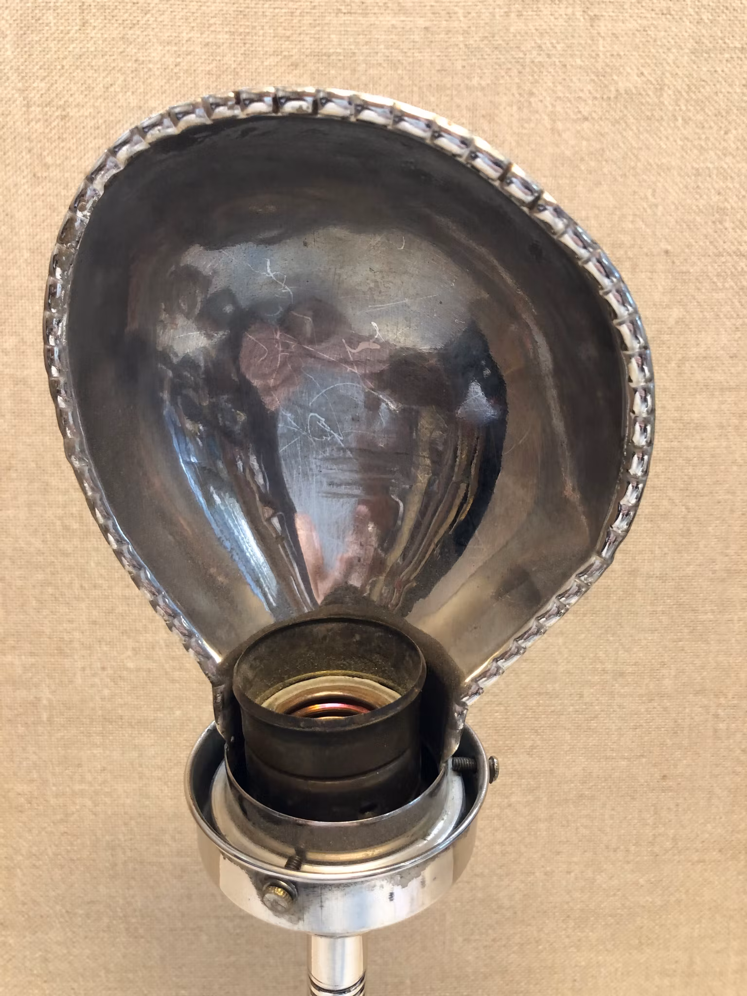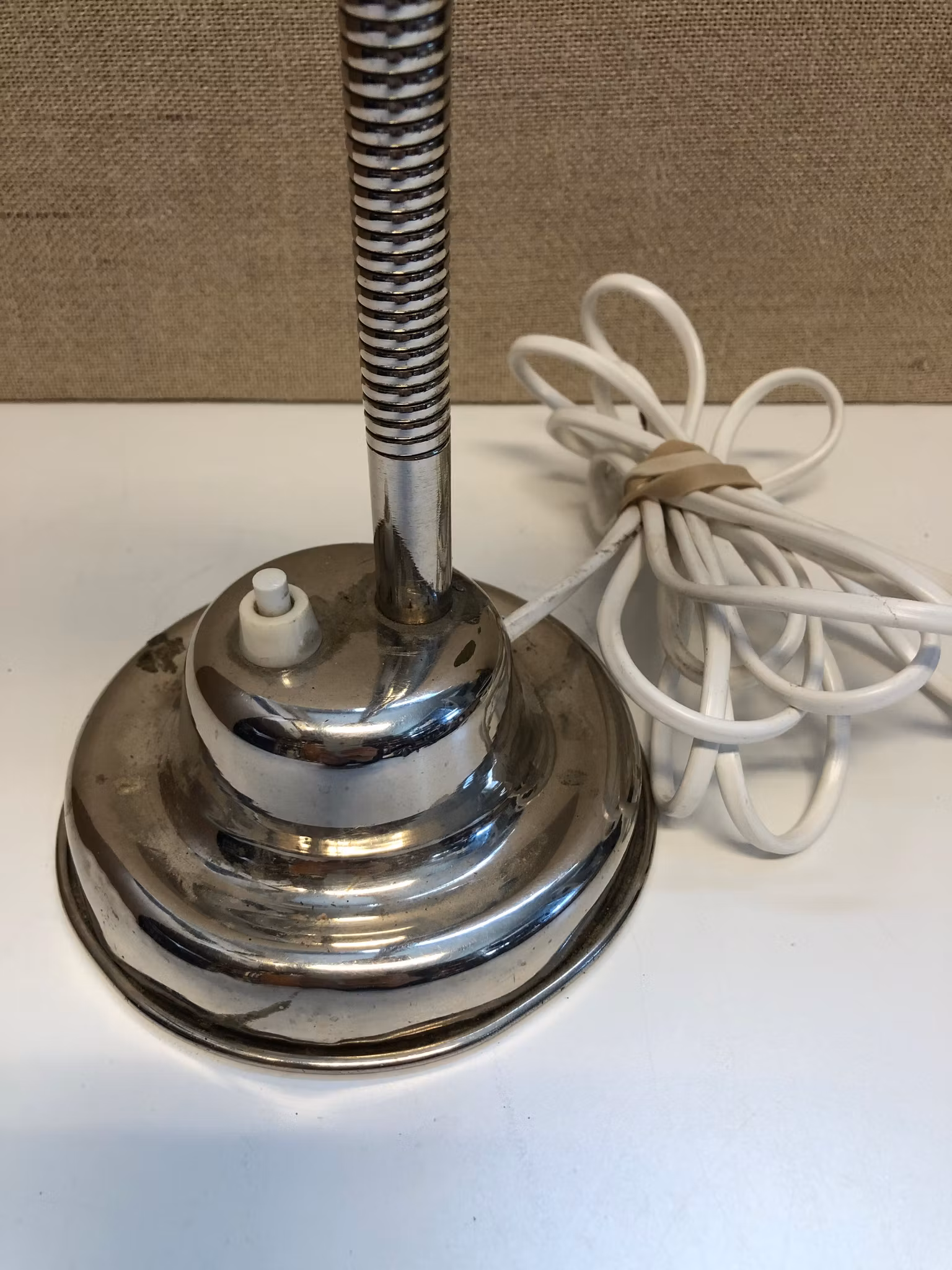 Bordslampa art deco, funkis med järnvikt i botten, omärkt, ställbar, metallskärm.