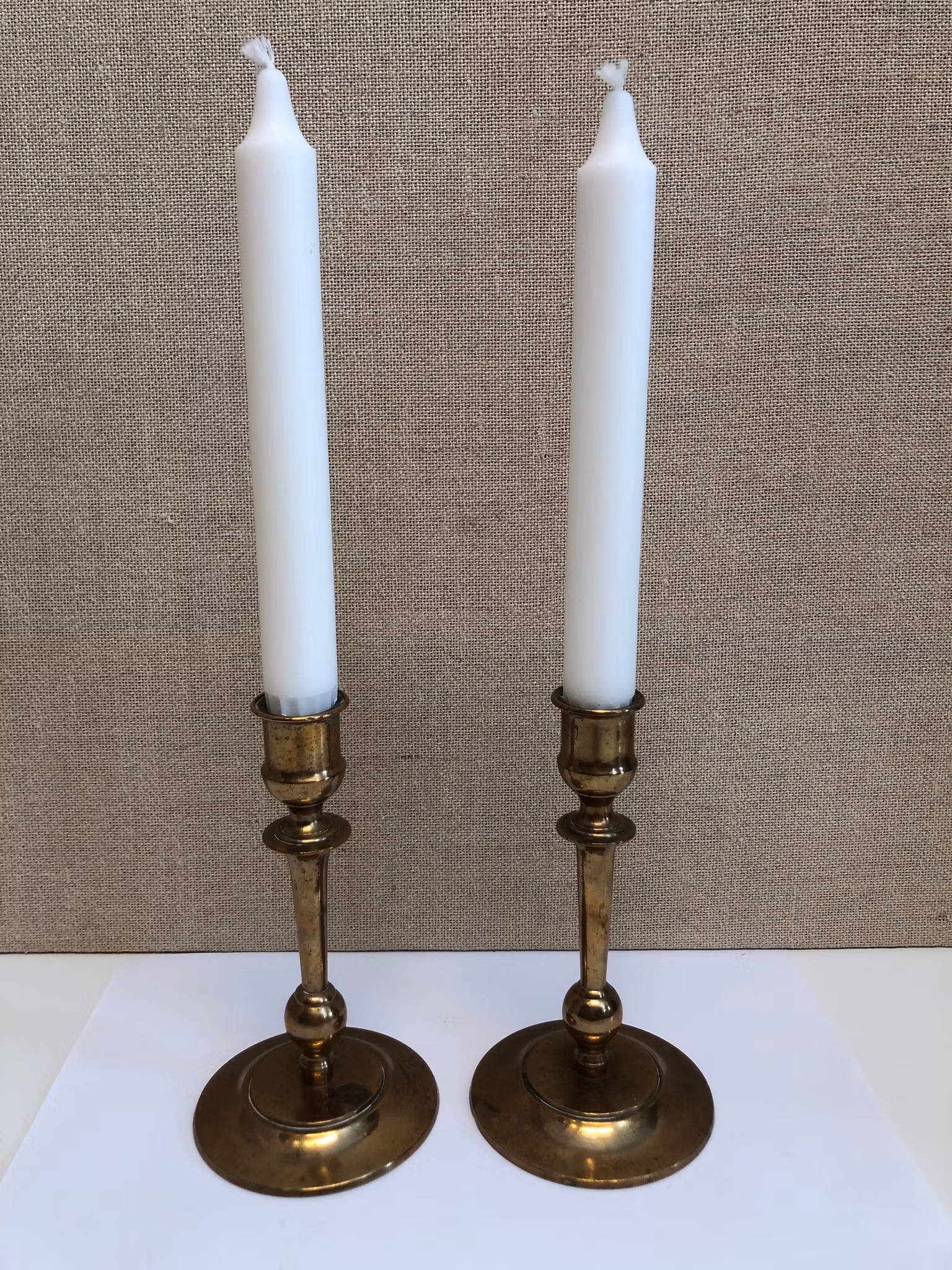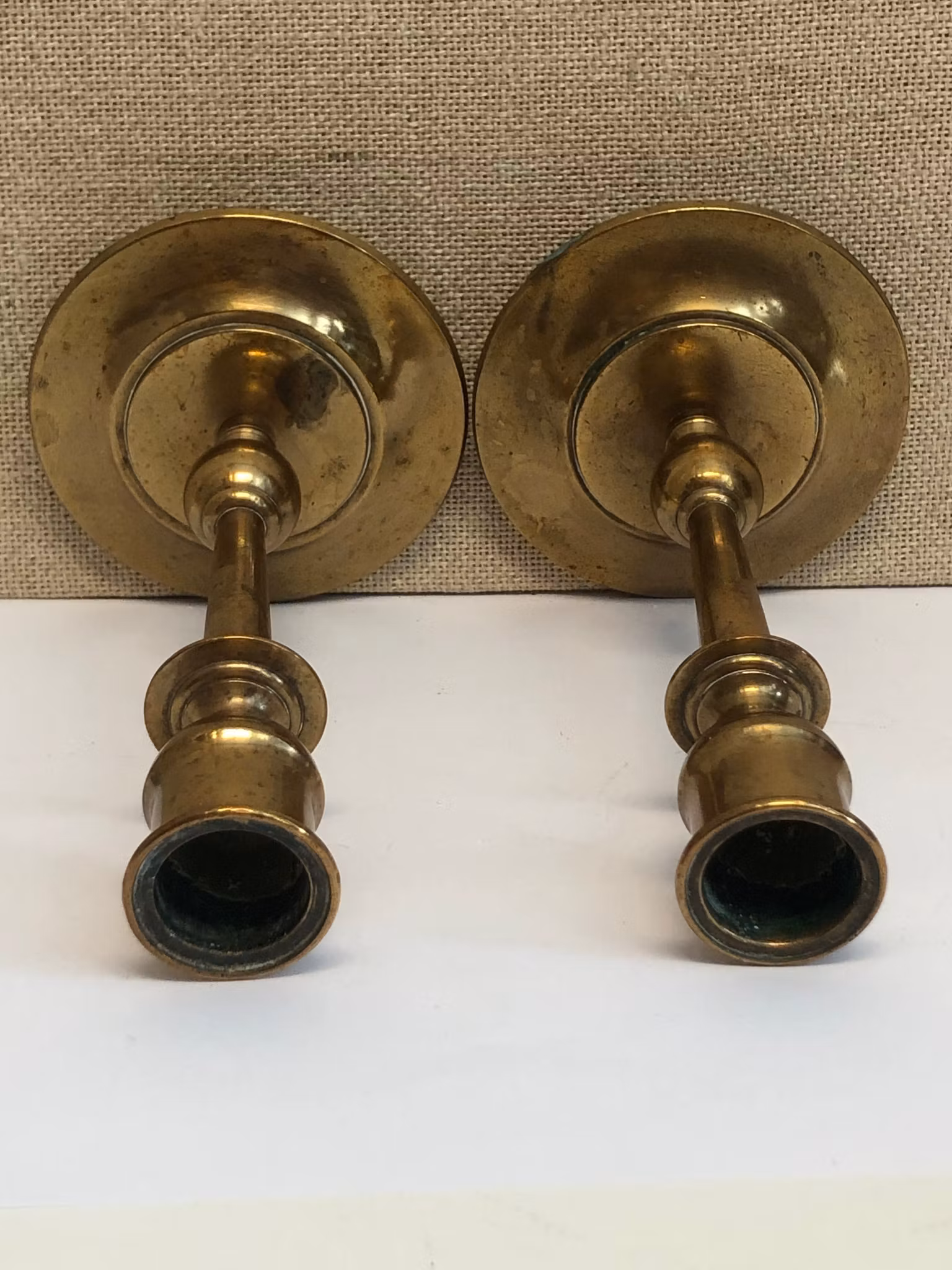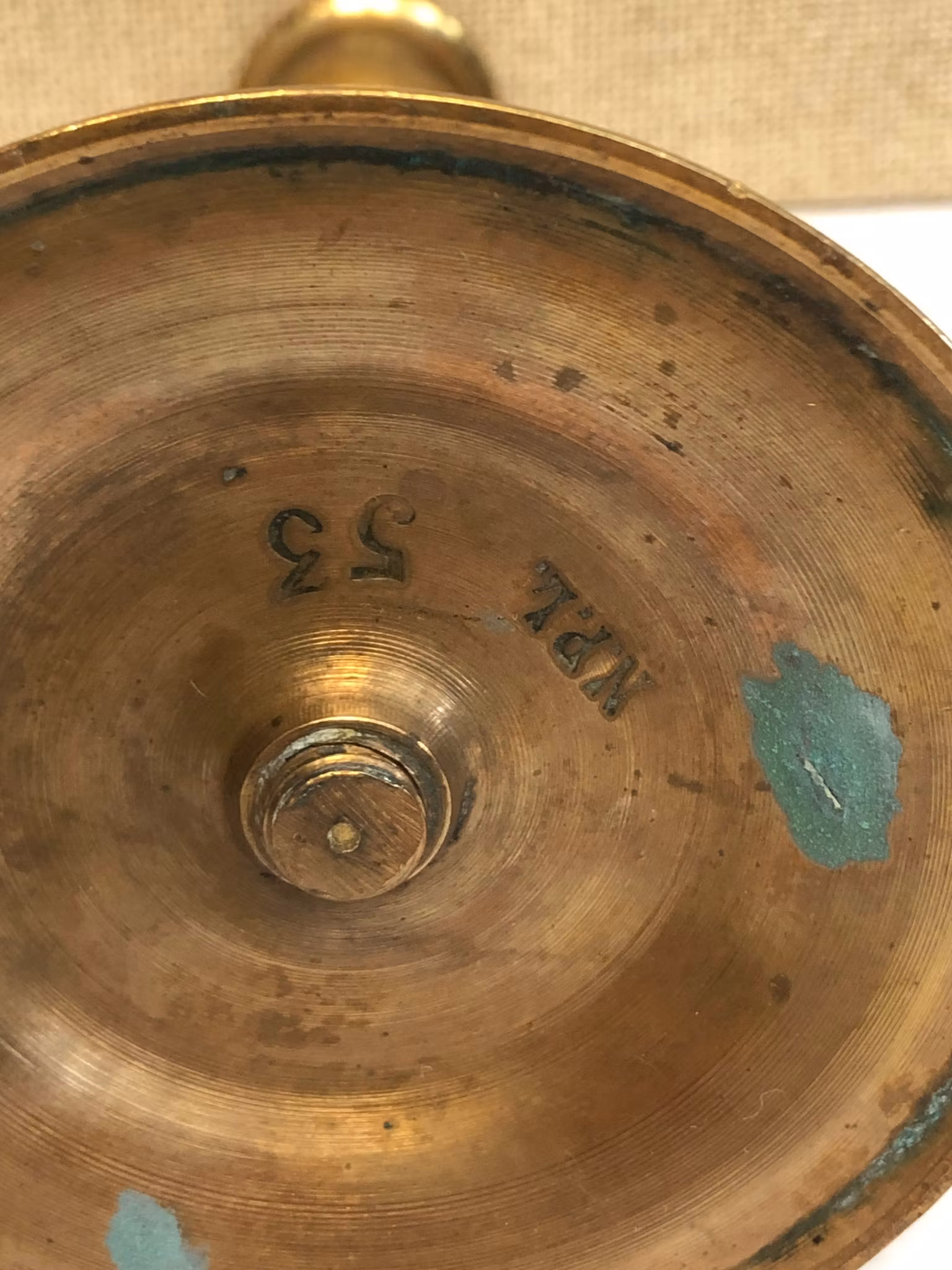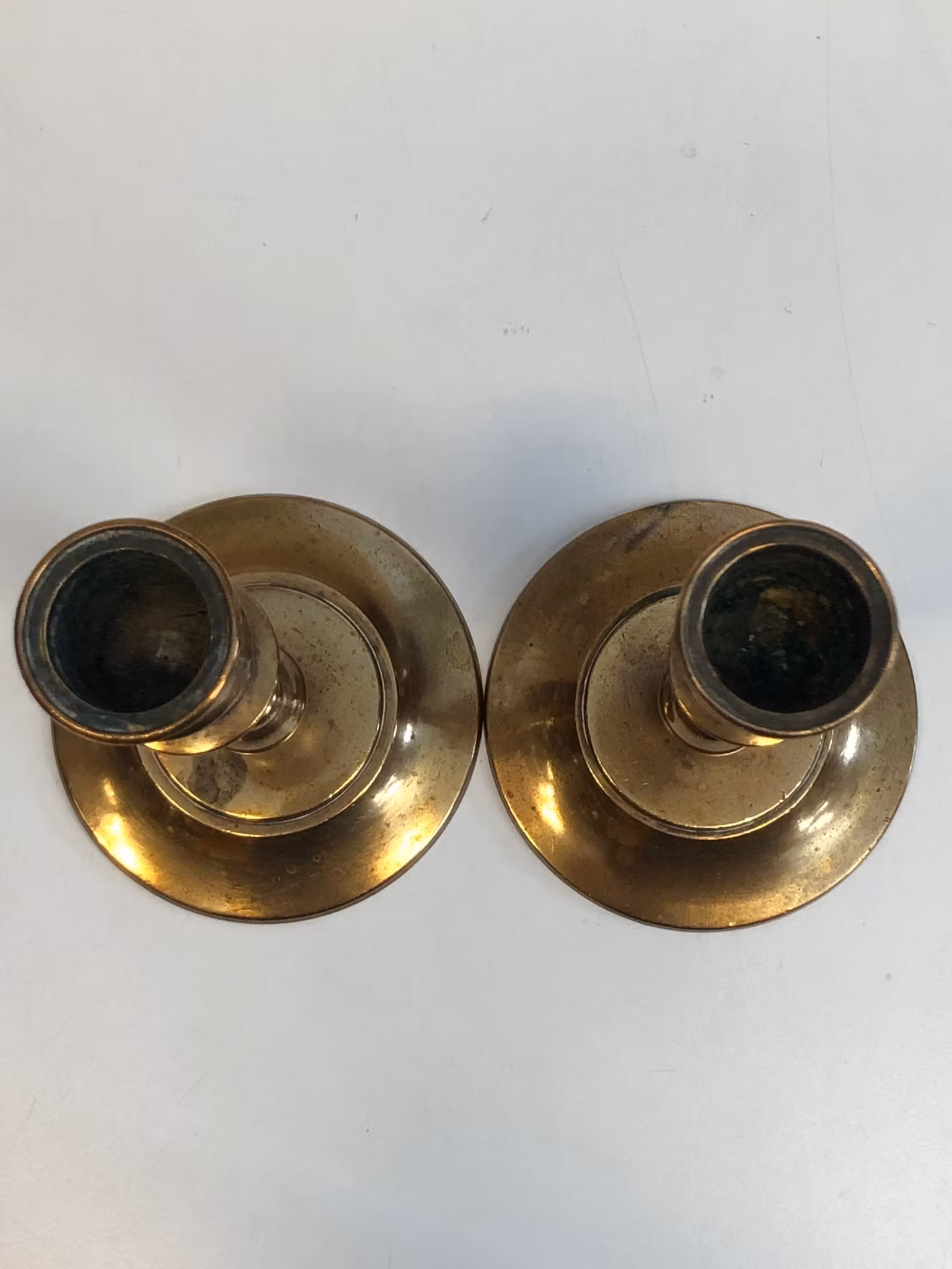 Ljusstakar ett par i mässing, stämplade 53 NPL (Nils Petter Lindeberg Sundsvall)