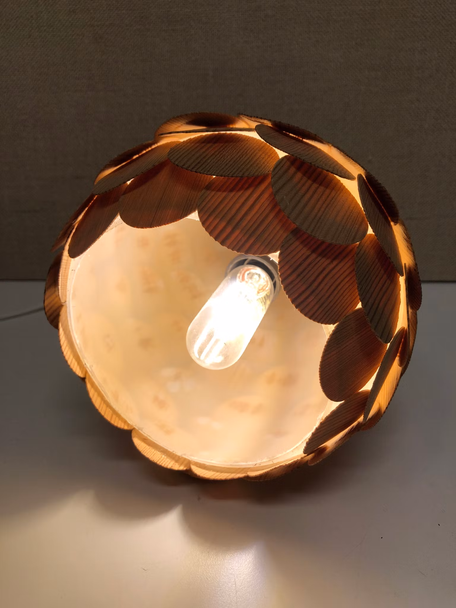 Tak/fönsterlampa i trä med en ljuspunkt, insats i plast.