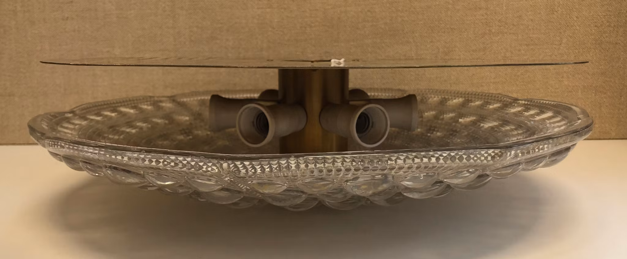 TAKLAMPA, "Takplafond", glas/mässing, Carl Fagerlund, Orrefors, 1900-talets andra hälft.