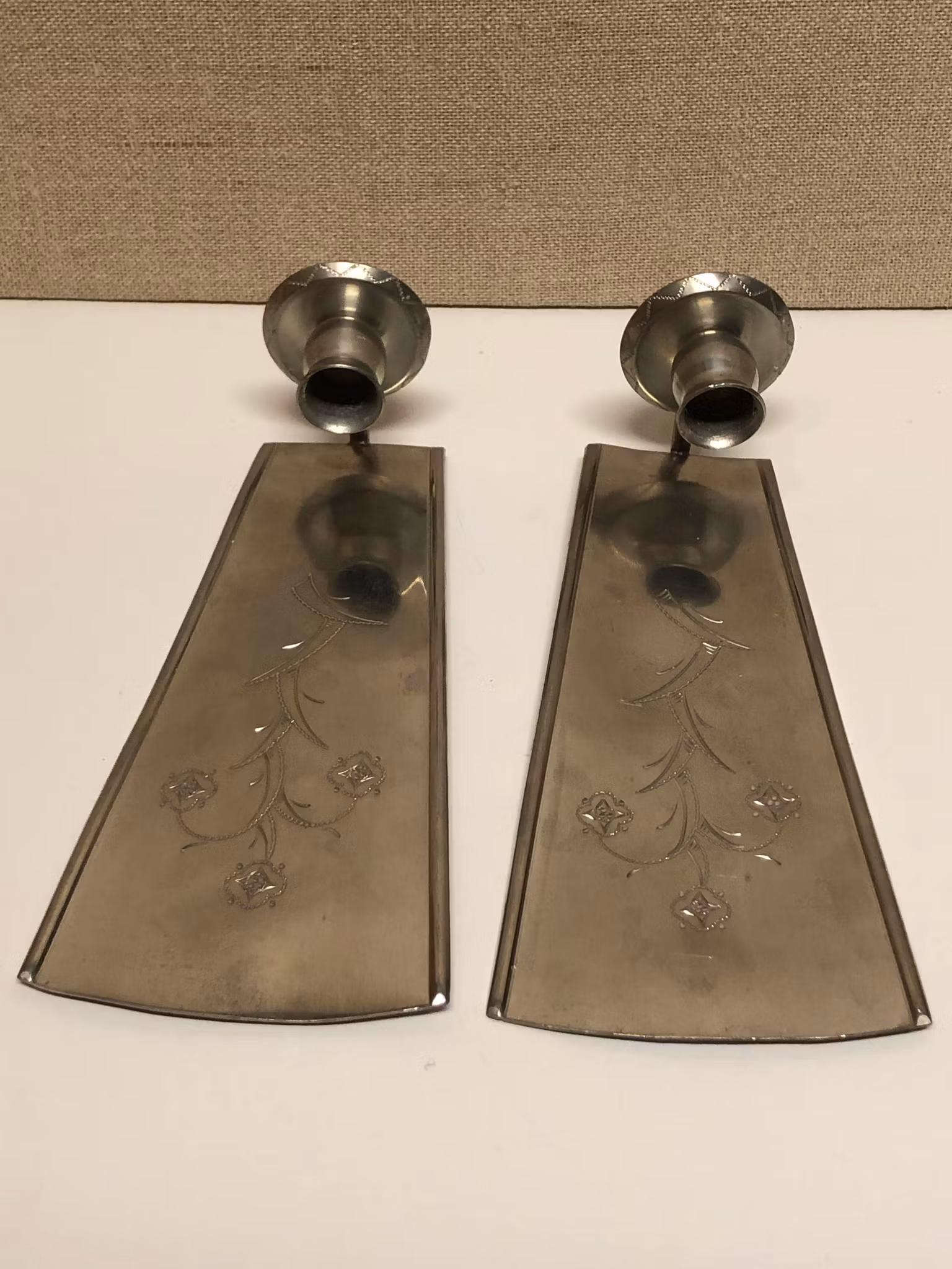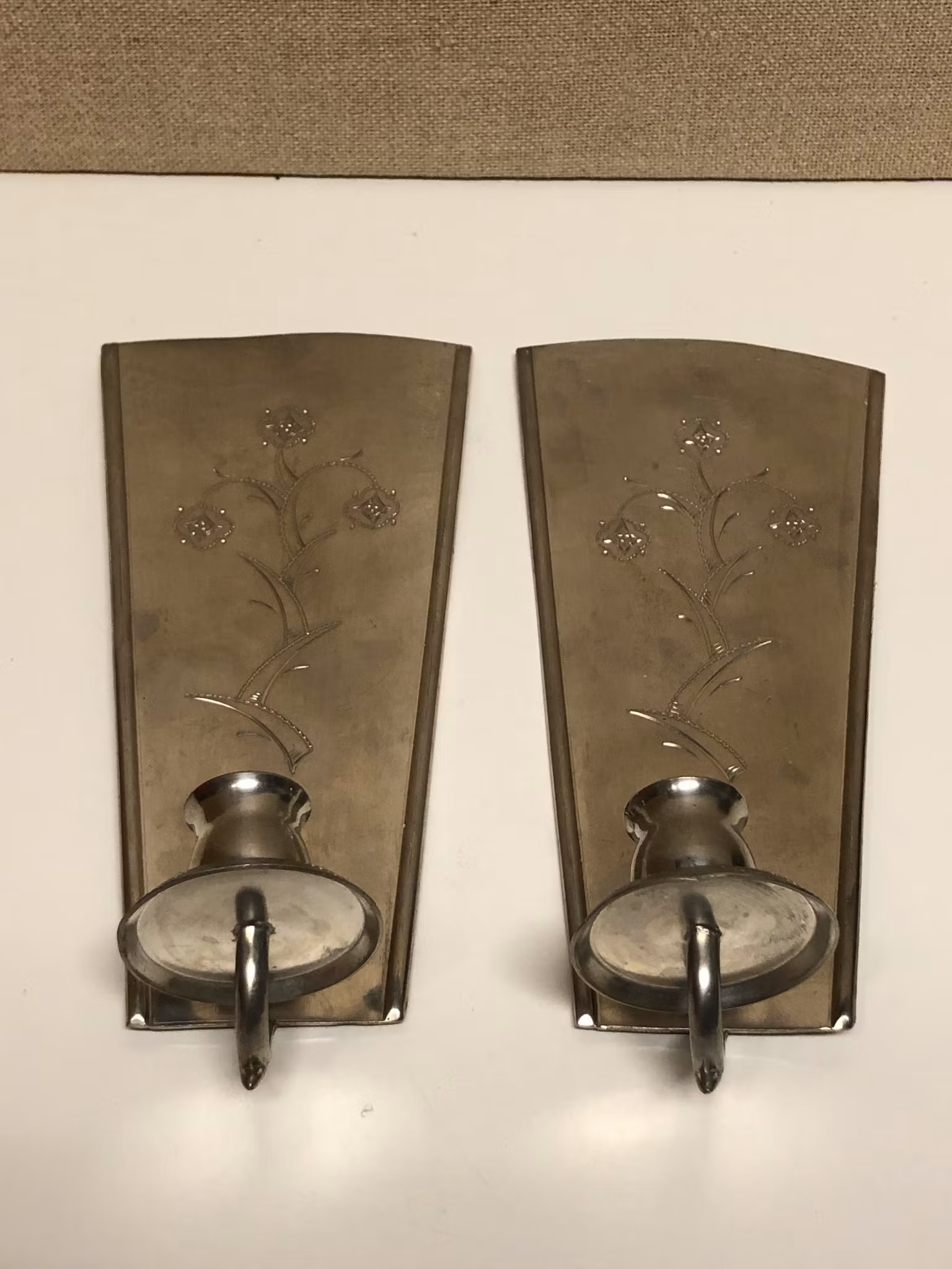 Vägglampetter ett par stämplade svenskt B.H.E. tenn.
