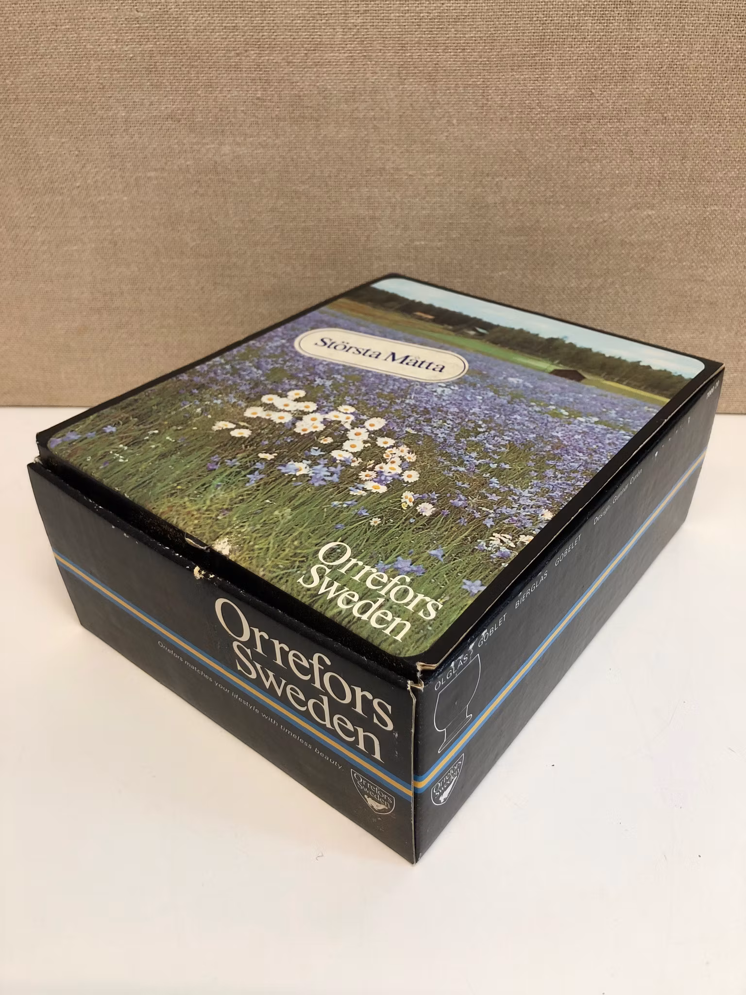 En originalkartong med fyra ölglas Största måtta design Gunnar Cyrén Orrefors.