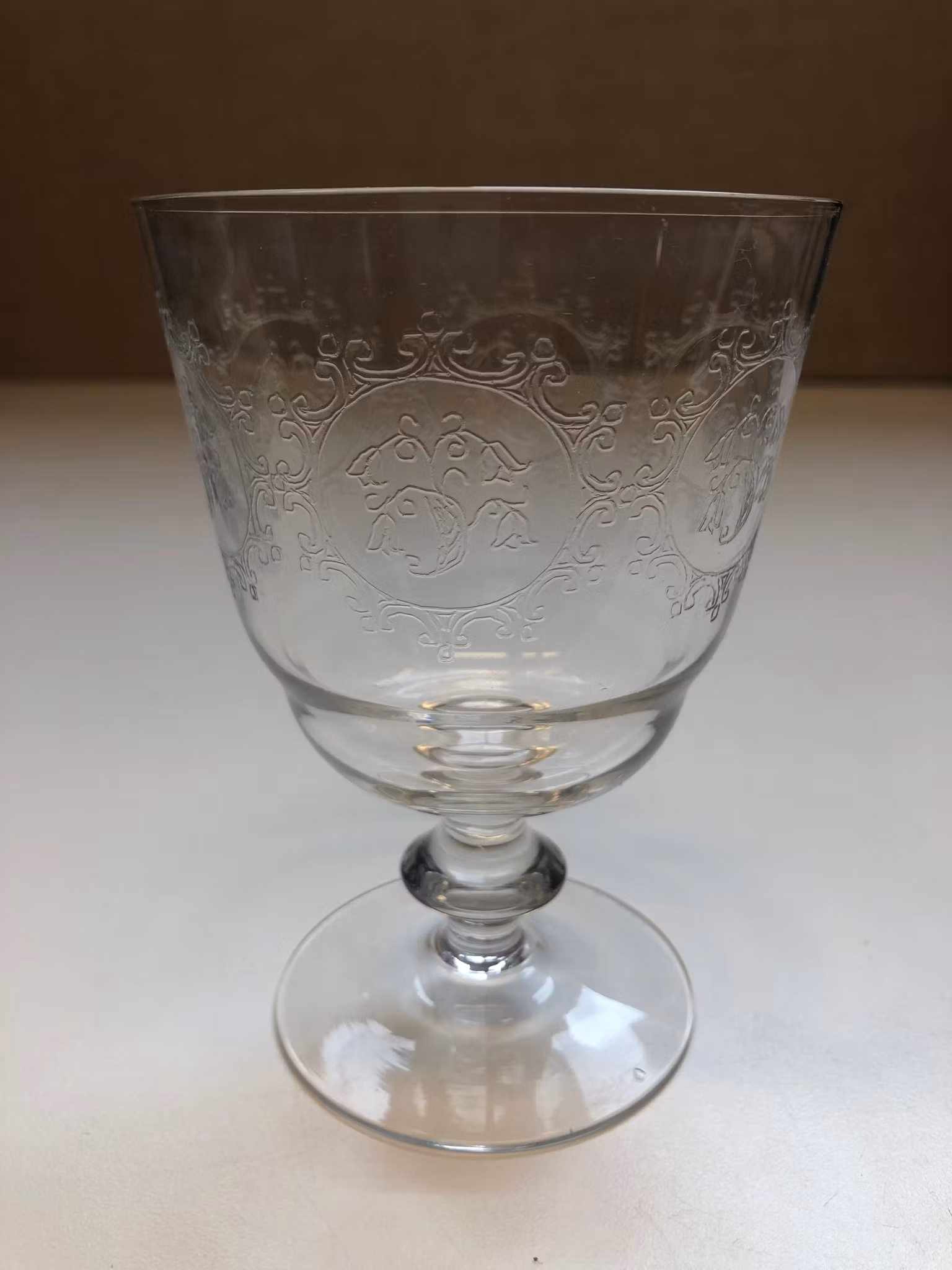 Rödvinsglas i klar glasmassa samt slipad dekor.