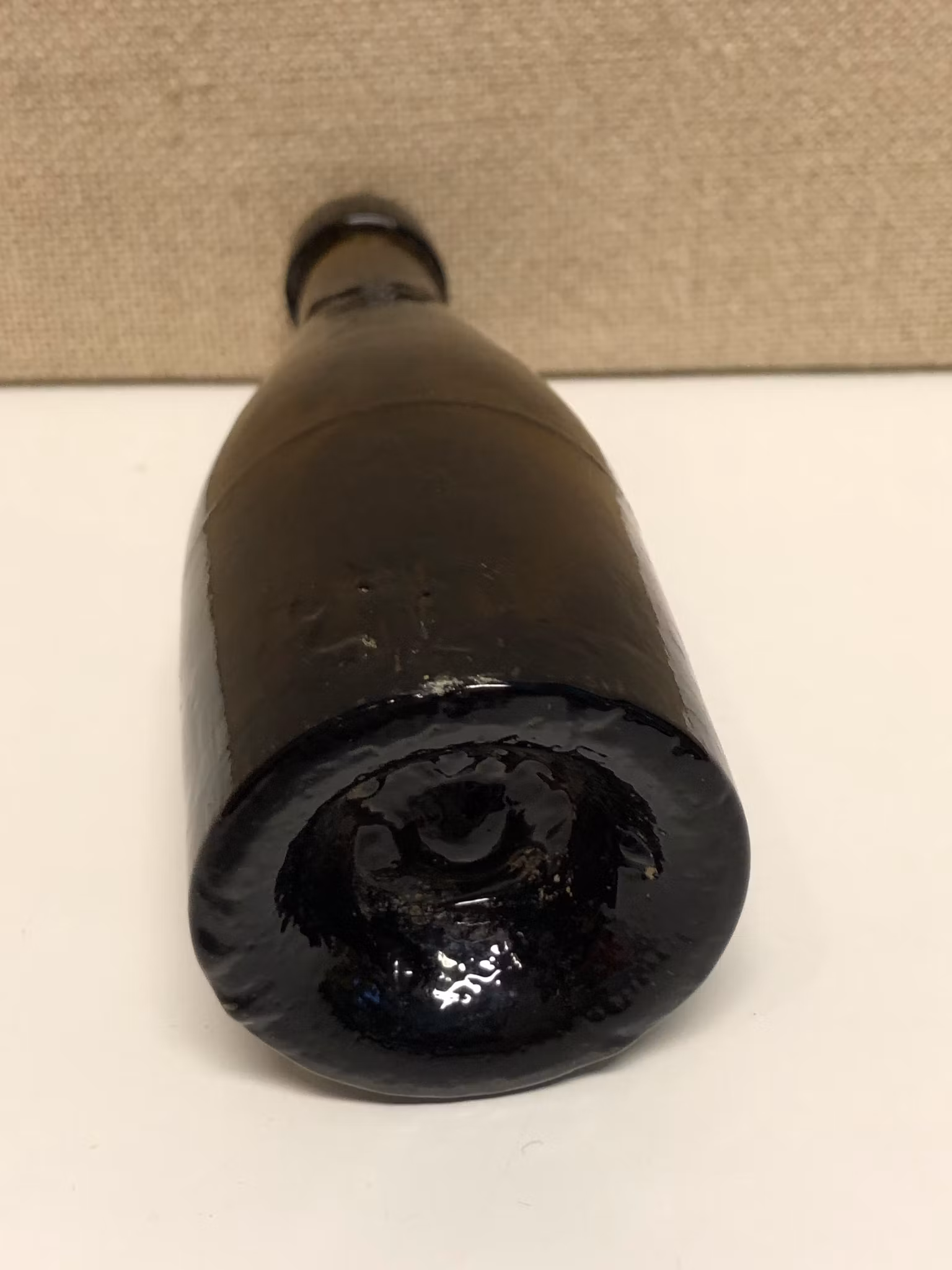 Flaska i mörk glasmassa, omärkt.