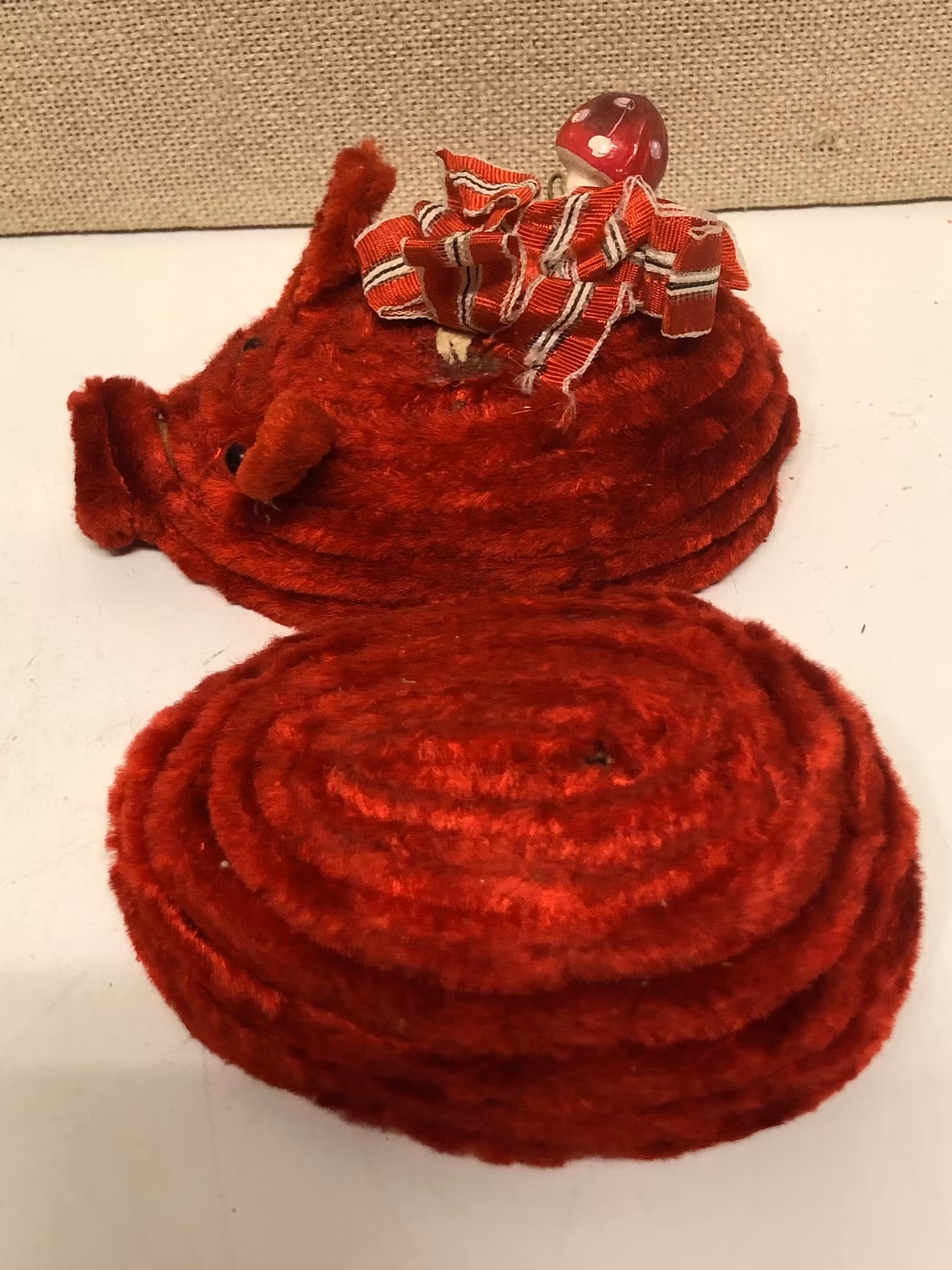 Julgris med gömma, stomme i kartong klädd med piprensare.