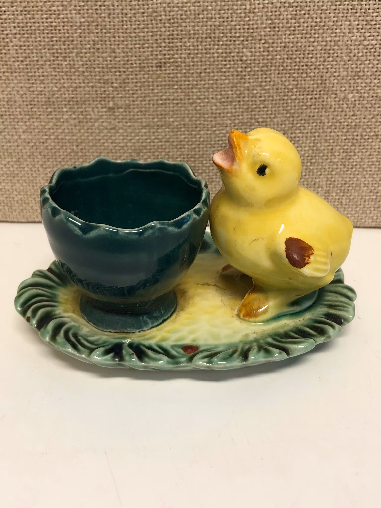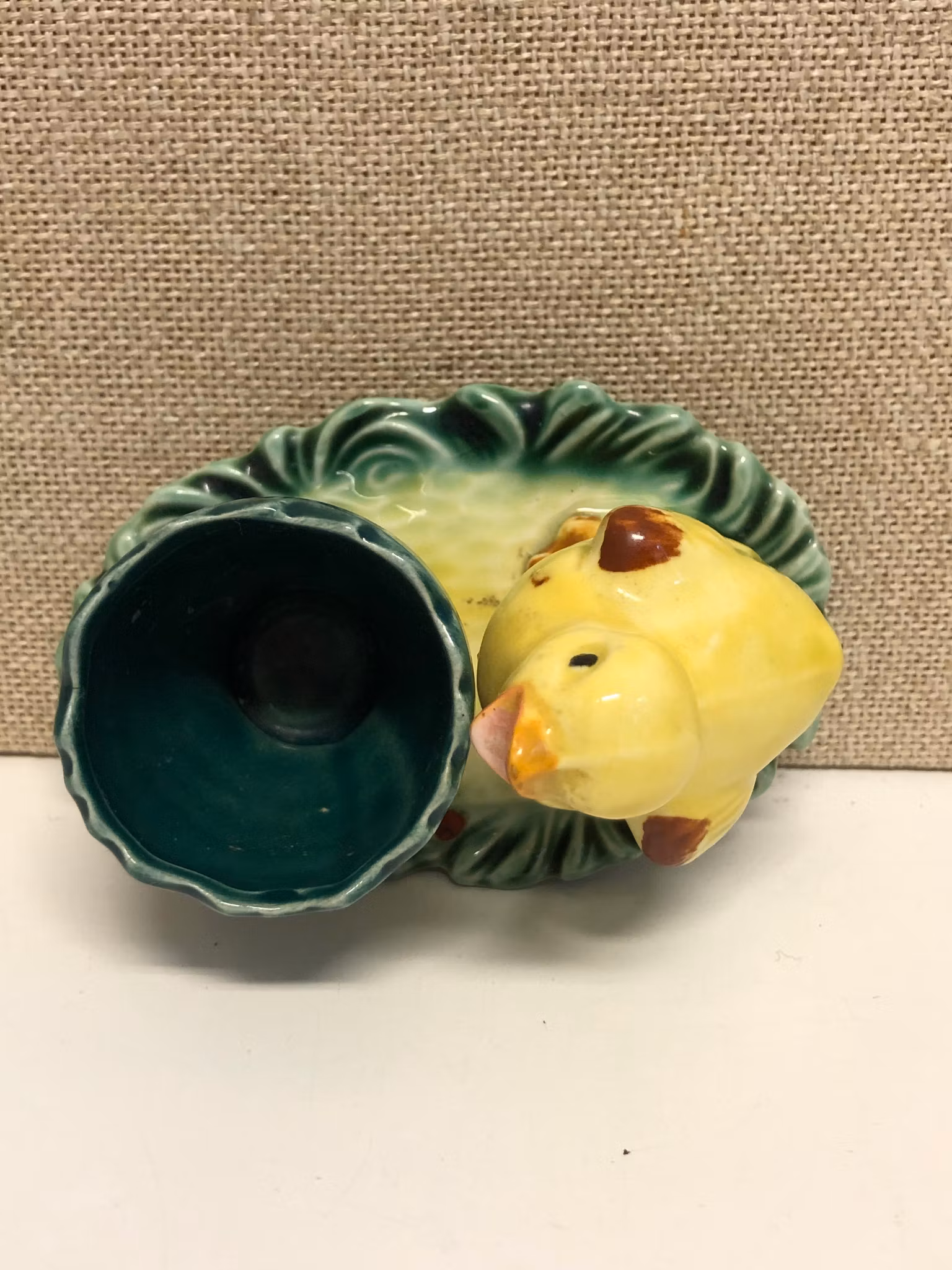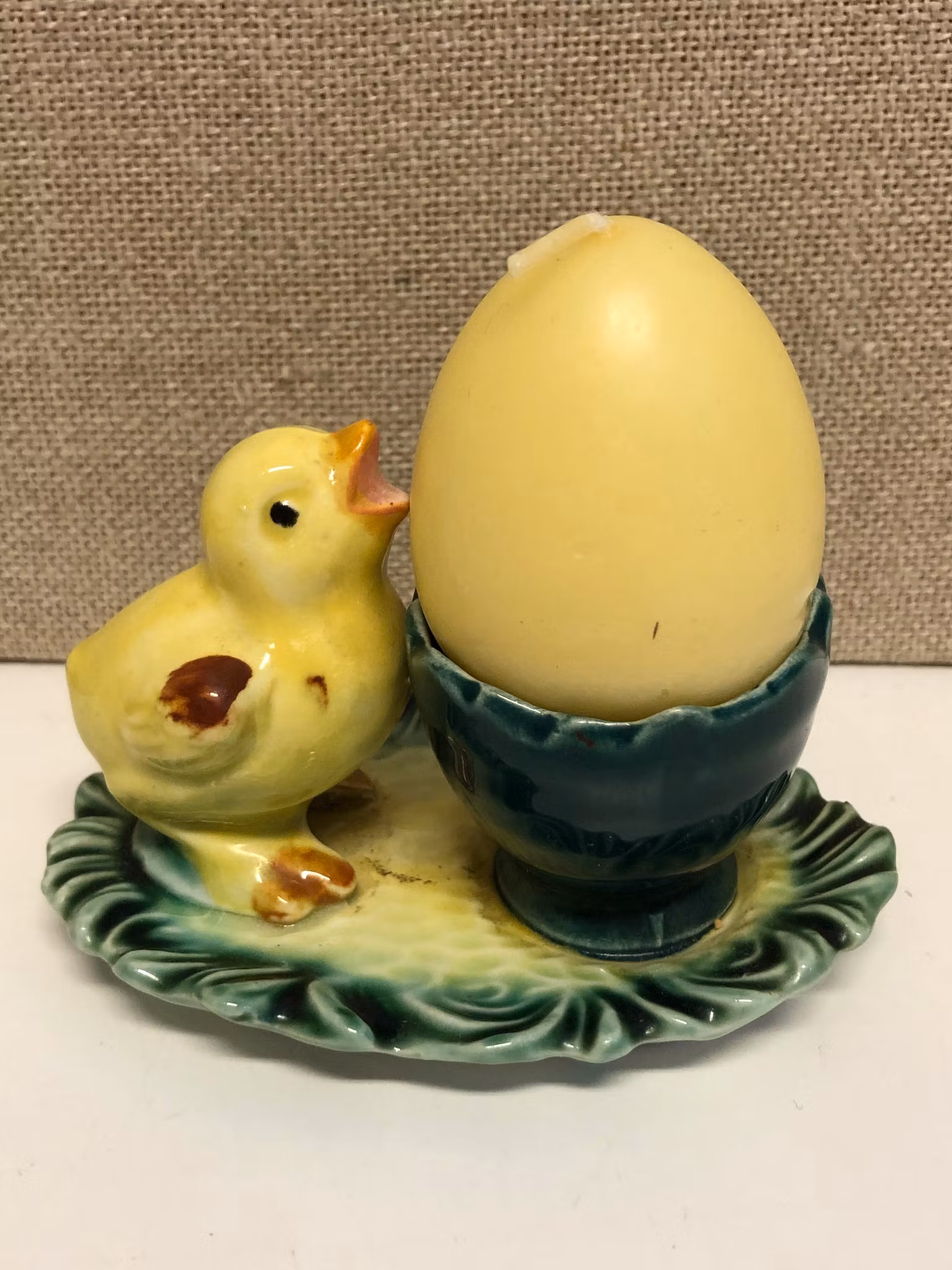 Äggkopp i porslin, omärkt, medföljer ett stearinljus i form av ett ägg.