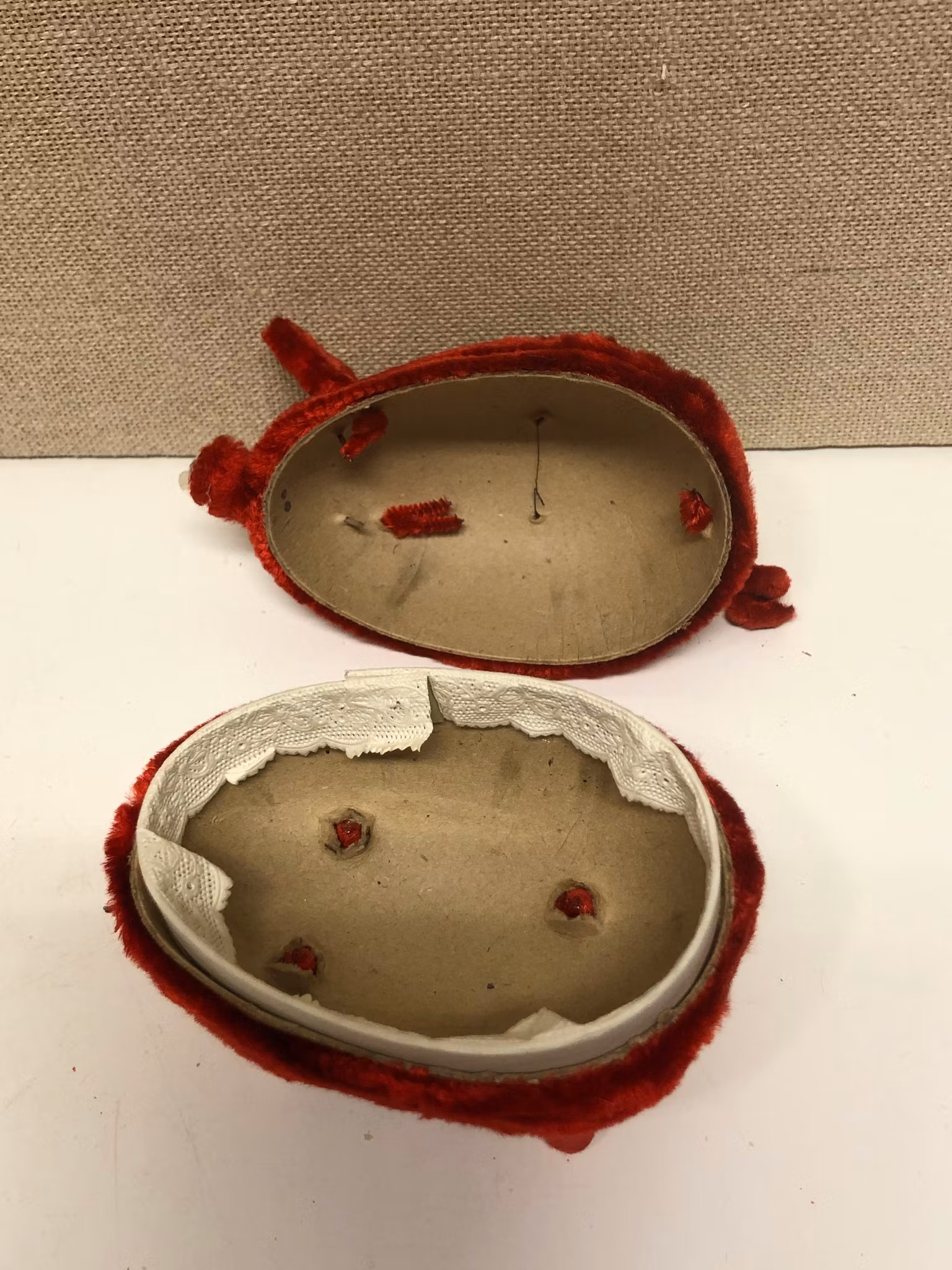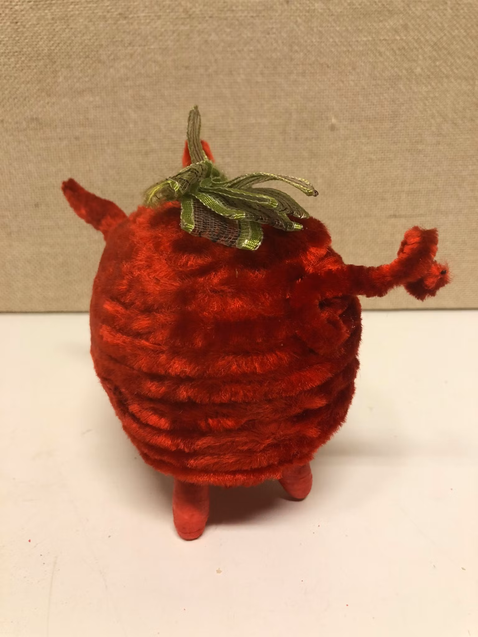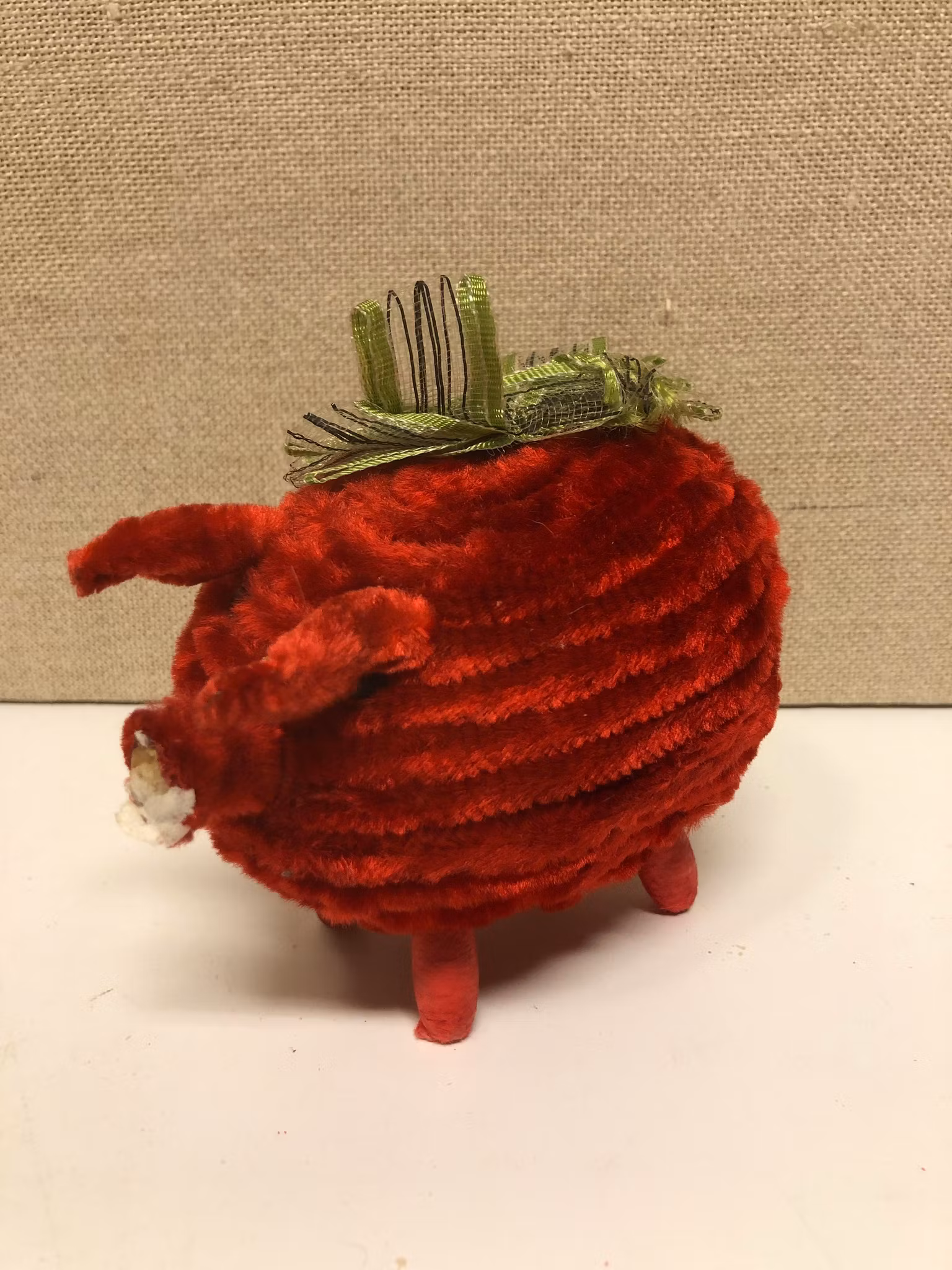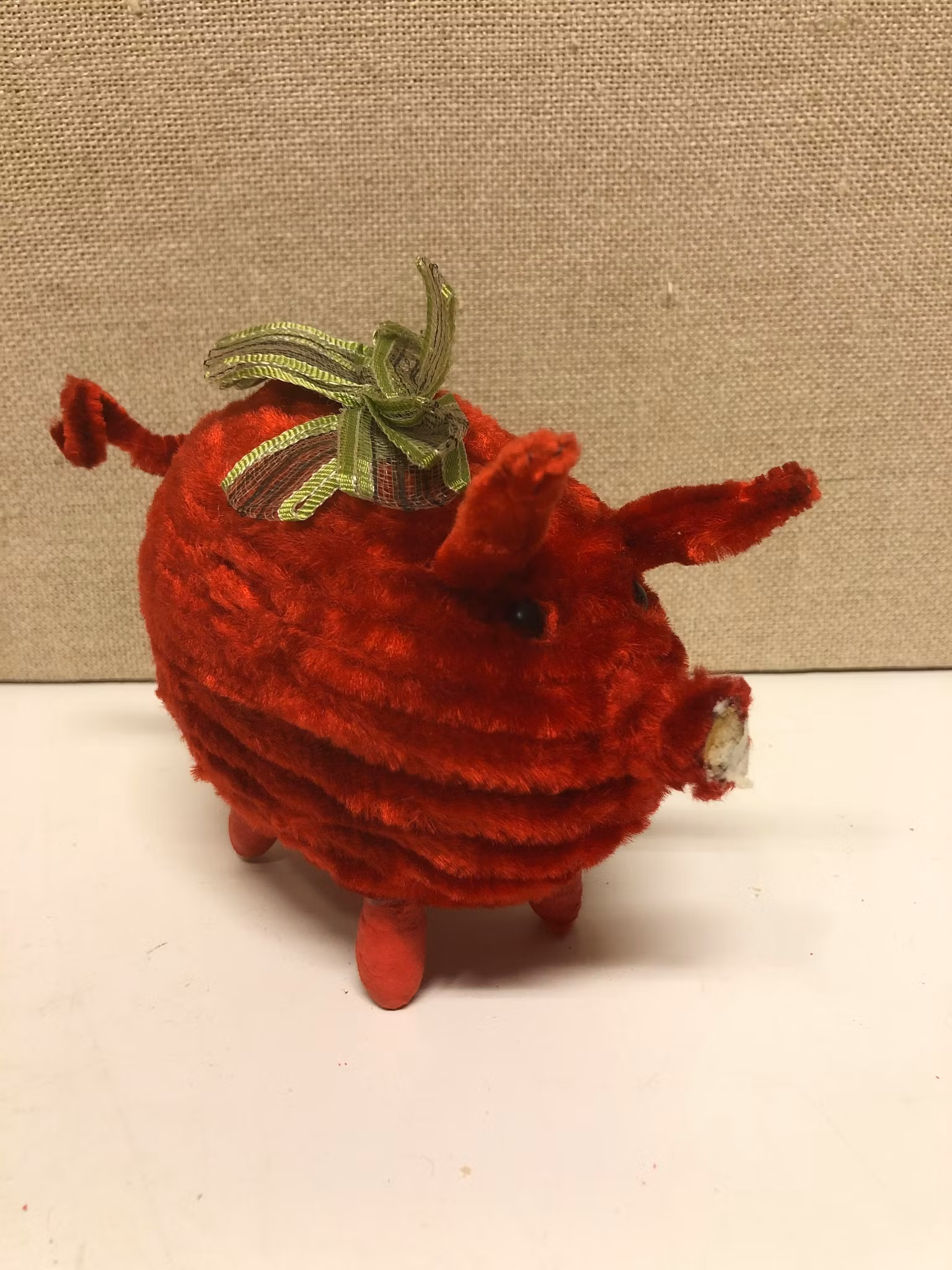 Julgris med gömma, stomme i kartong klädd med piprensare.