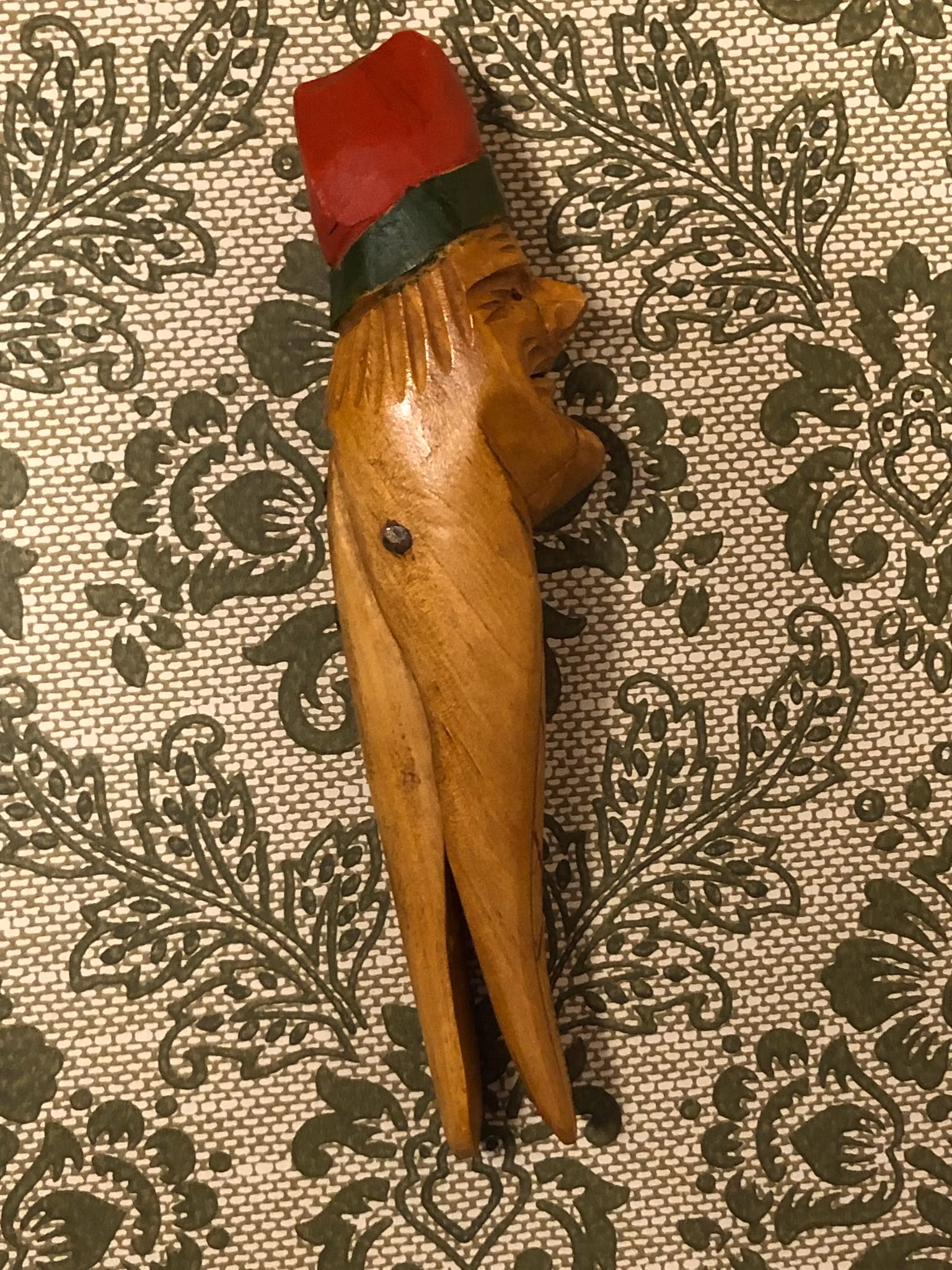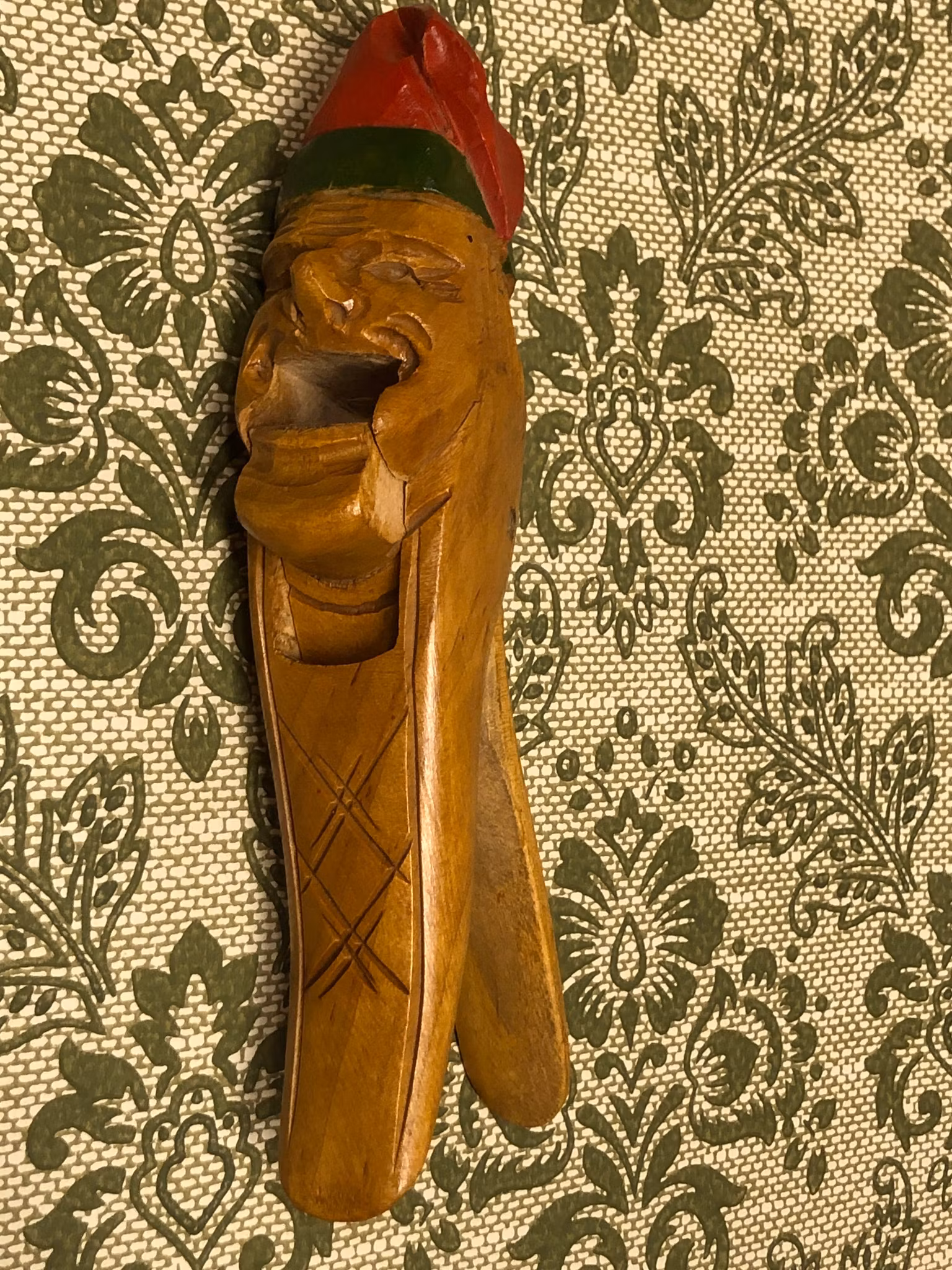 NÖTKNÄPPARE, trä, gubbe med röd luva, 1900-tal.