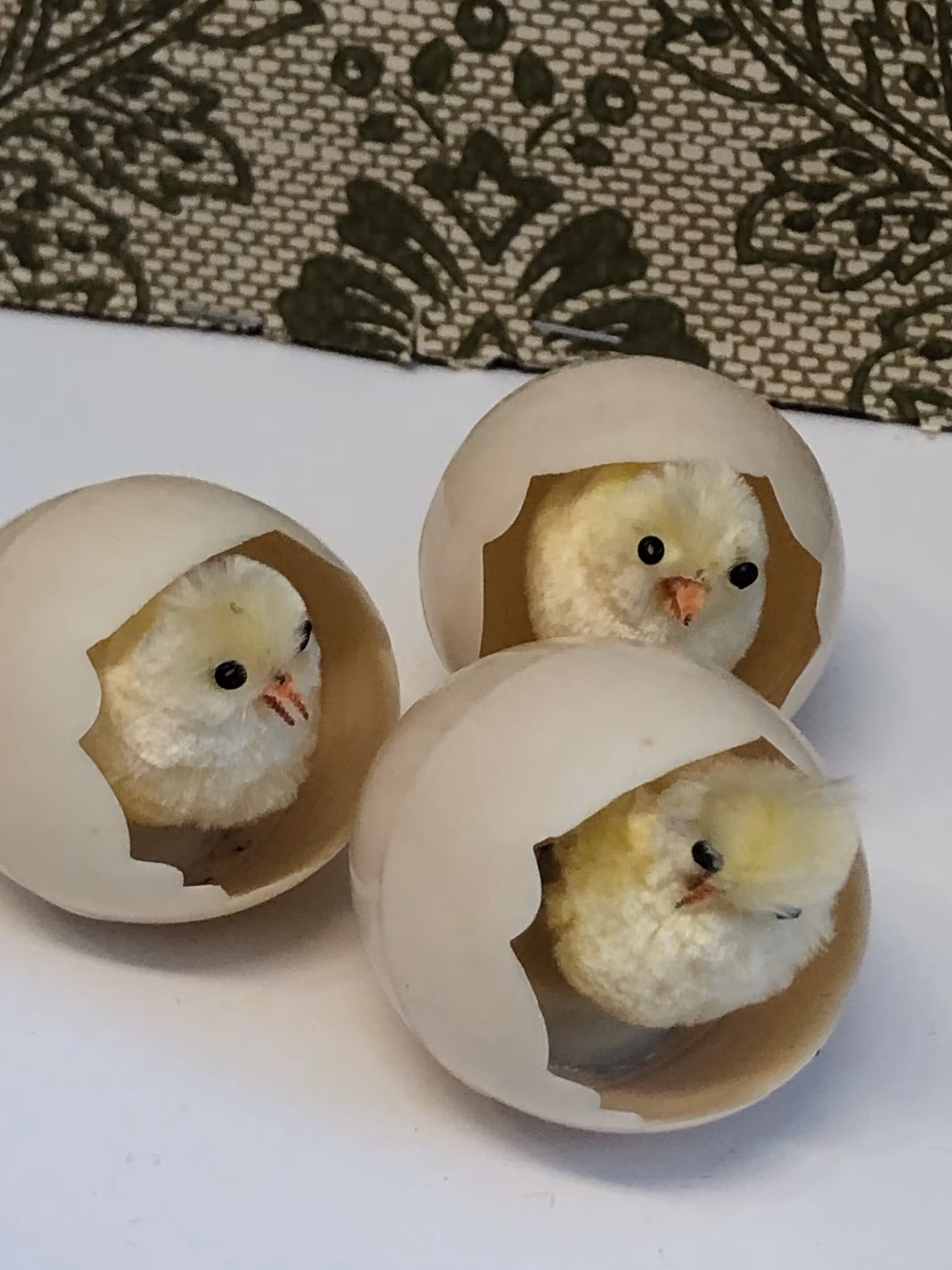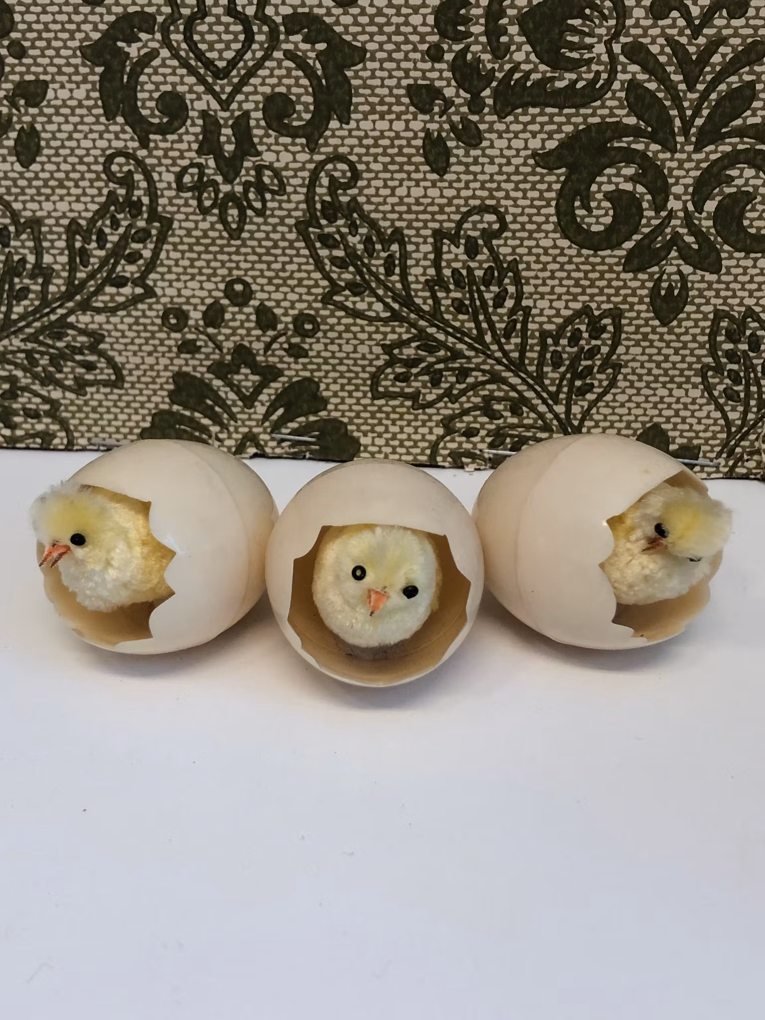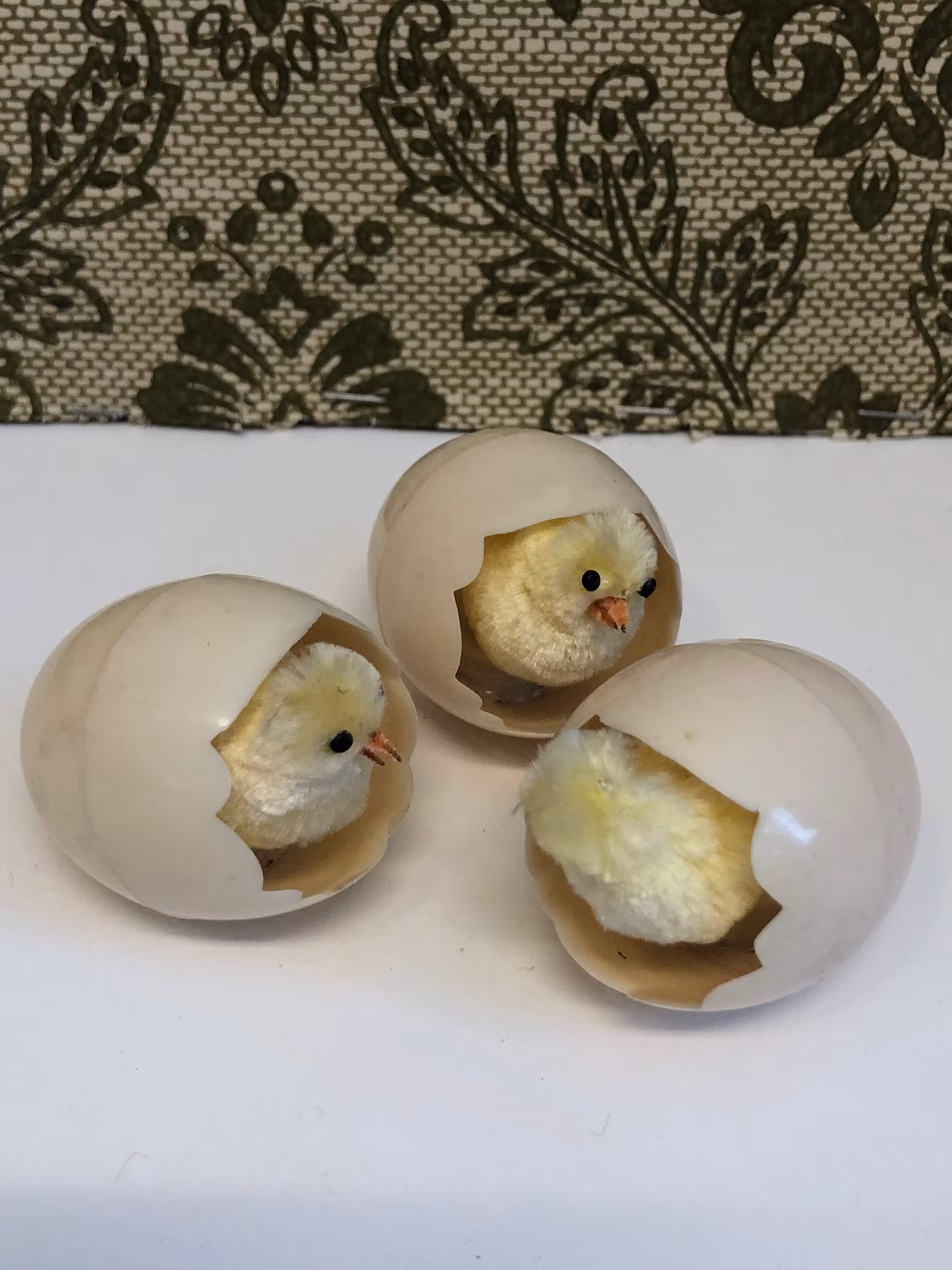 PÅSKKYCKLINGAR 3 st, metall/pappermassa, 1900-tal.