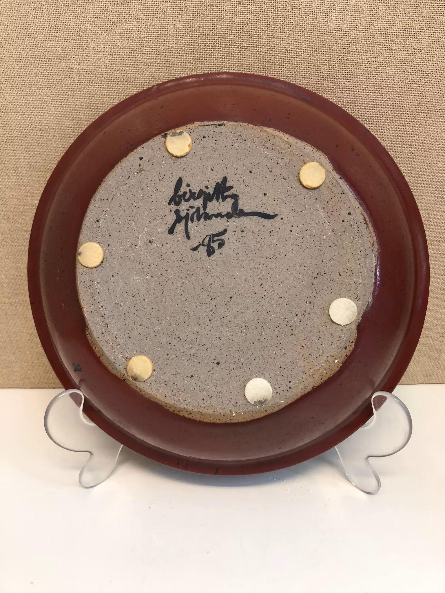 Fat i keramik av Birgitta Sjölander i Bergsjö, signerad samt daterad -85.