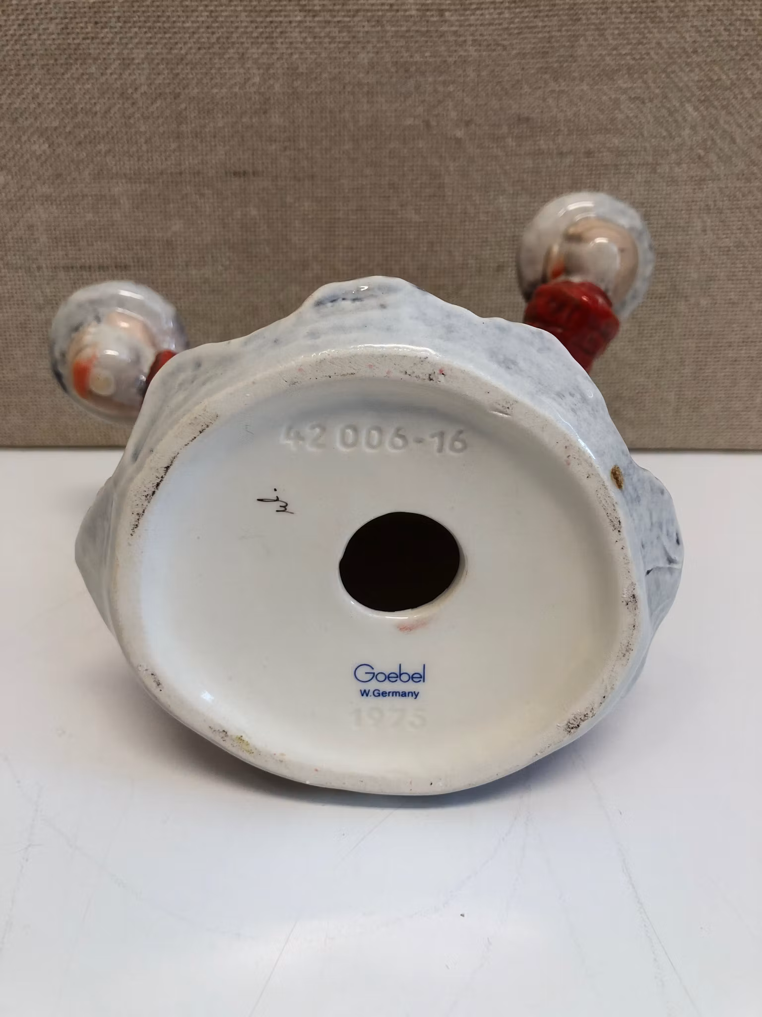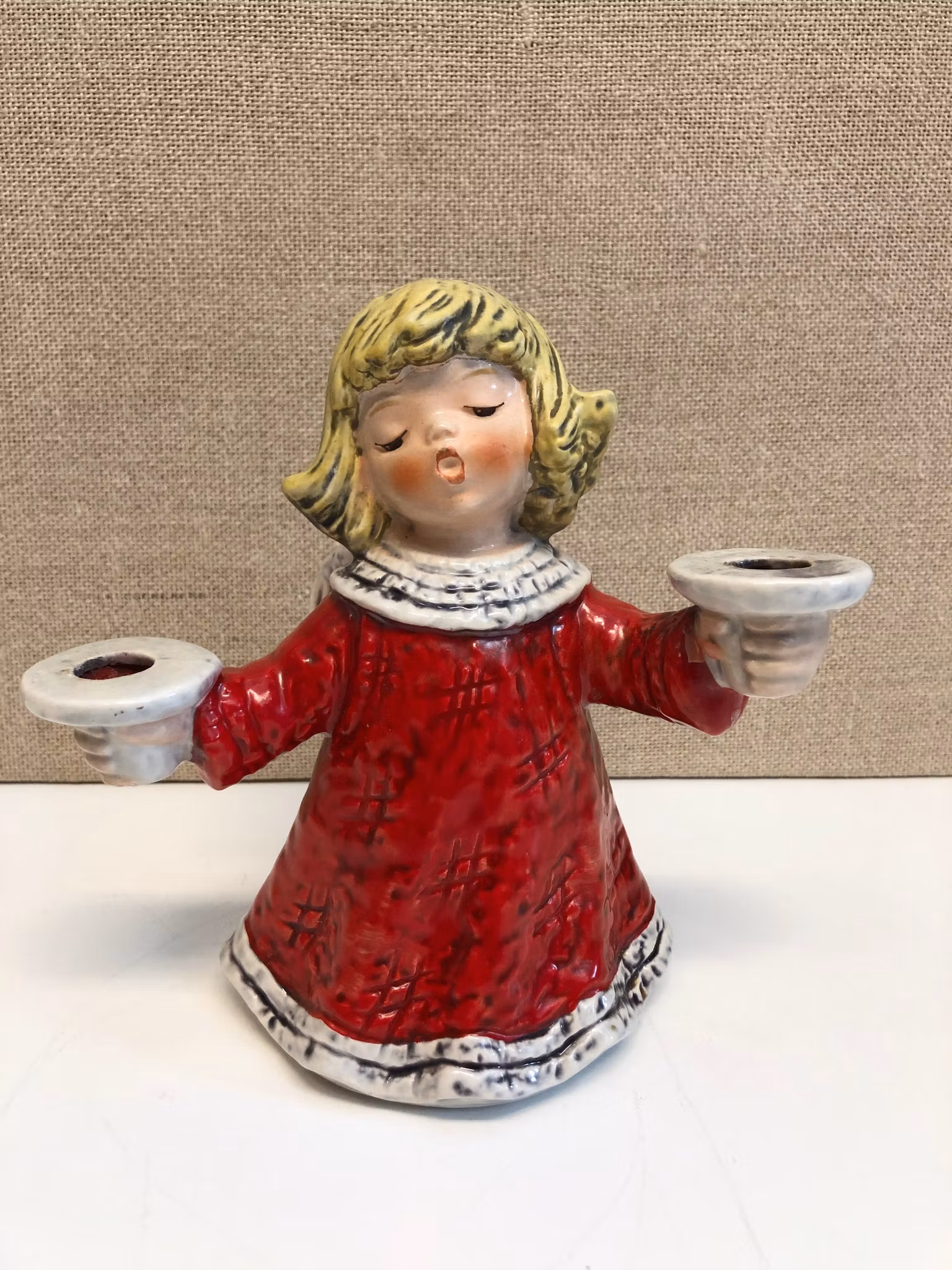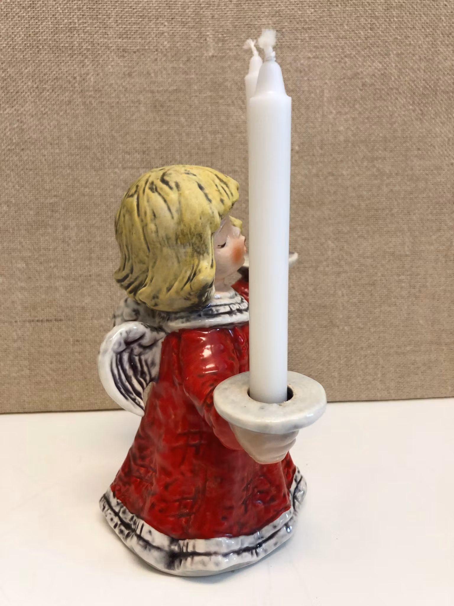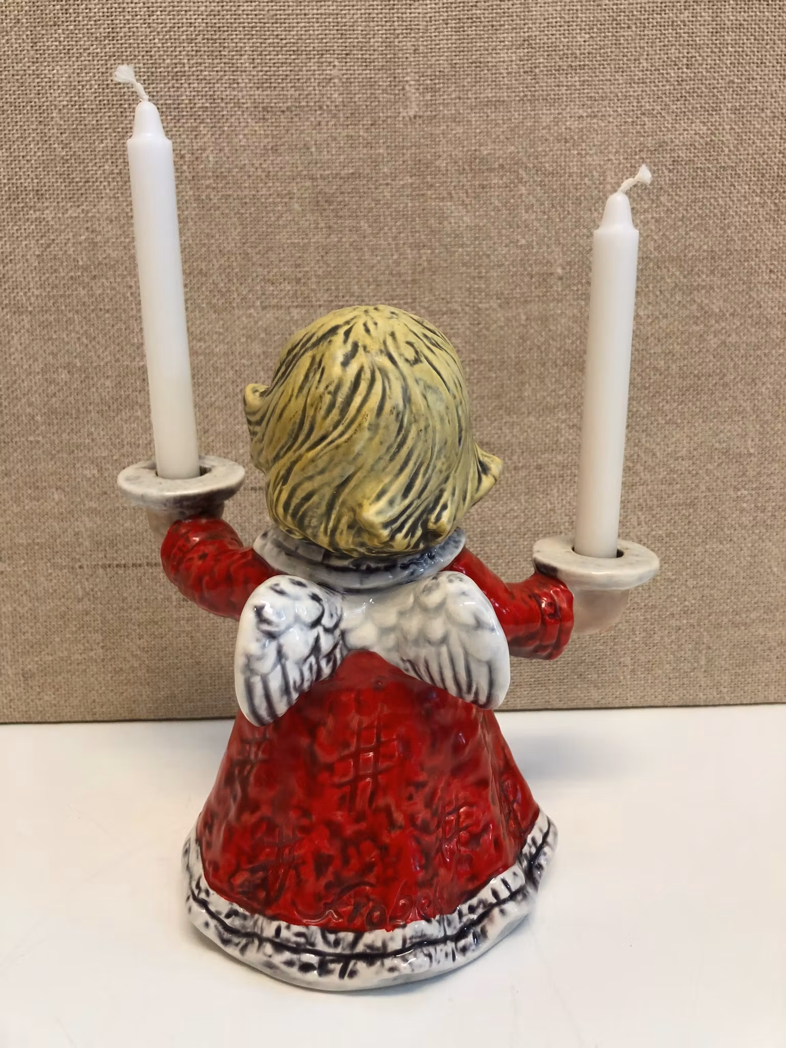 Figurin i porslin i form av Ängel för två ljus, märkt 42006-16 Goebel W. Germany 1975.