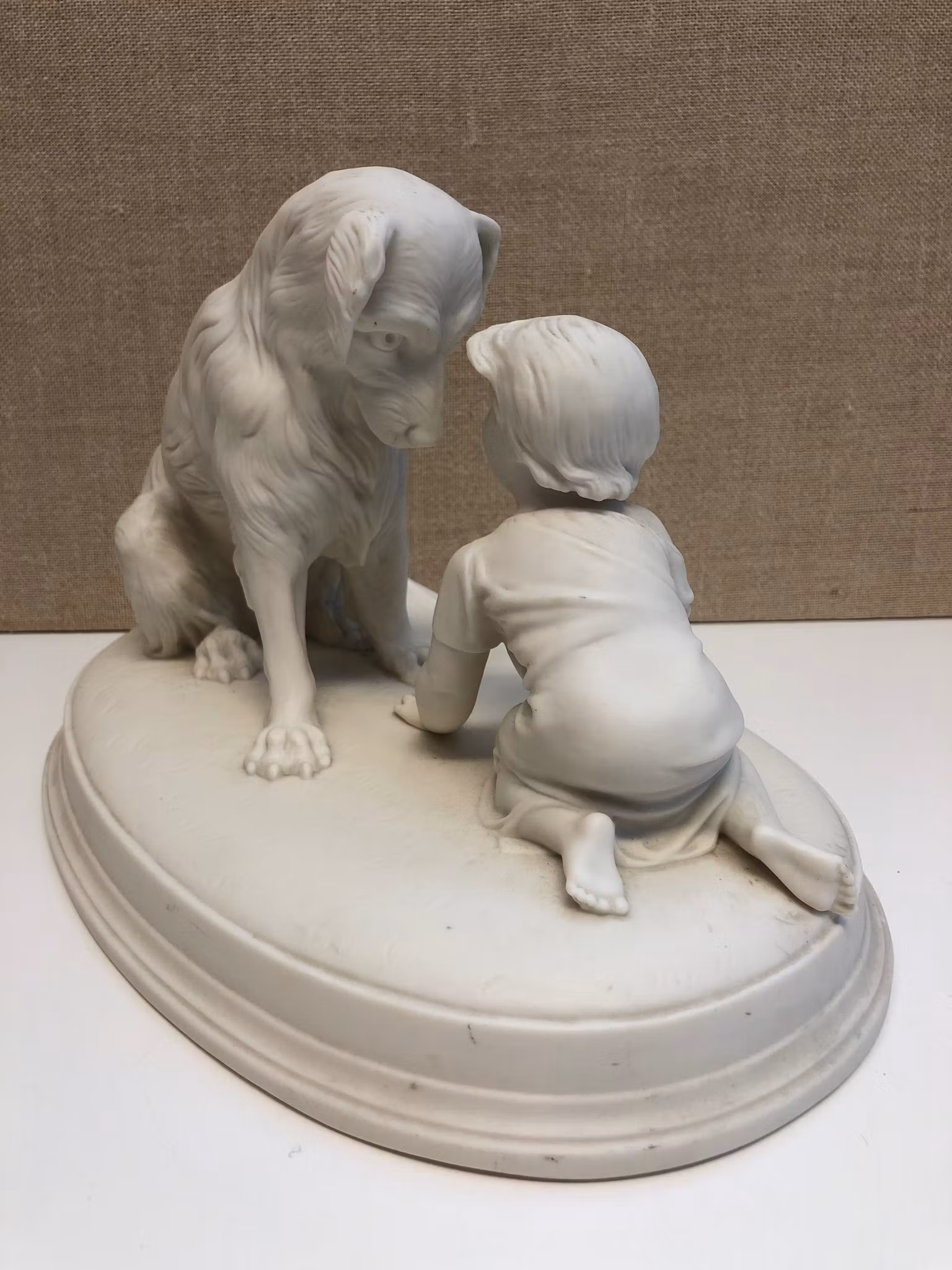 Stor figurin i parian -Kan du inte tala? stämplad i godset A Gustavsberg 1927.