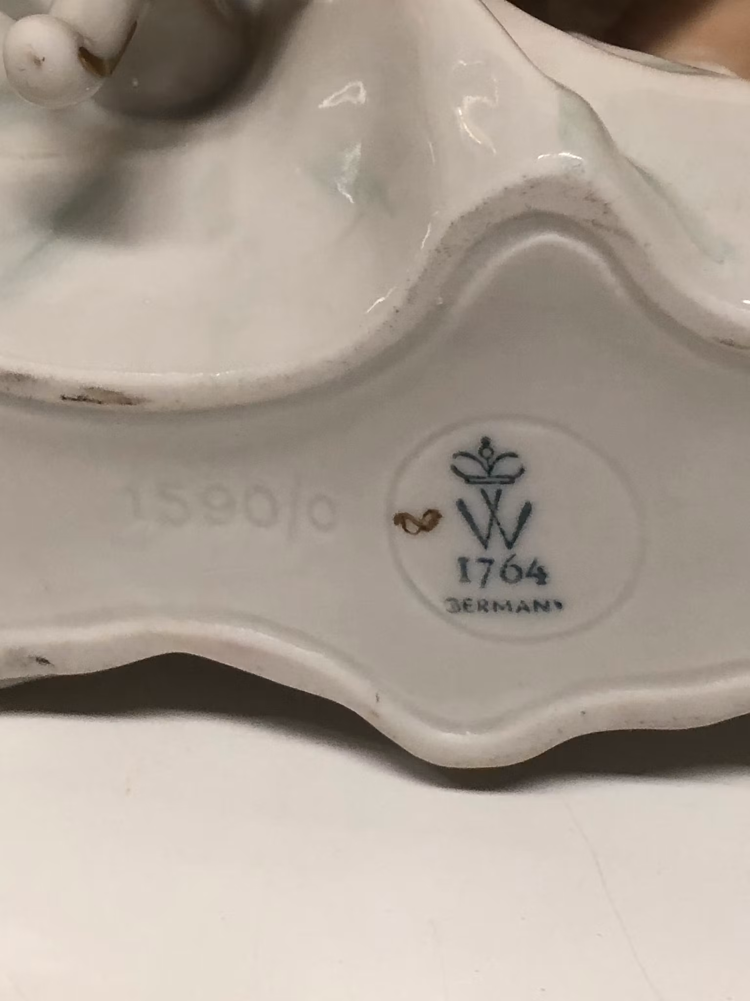 Figurin i porslin märkt W 1764 Germany 1590/0 i godset.