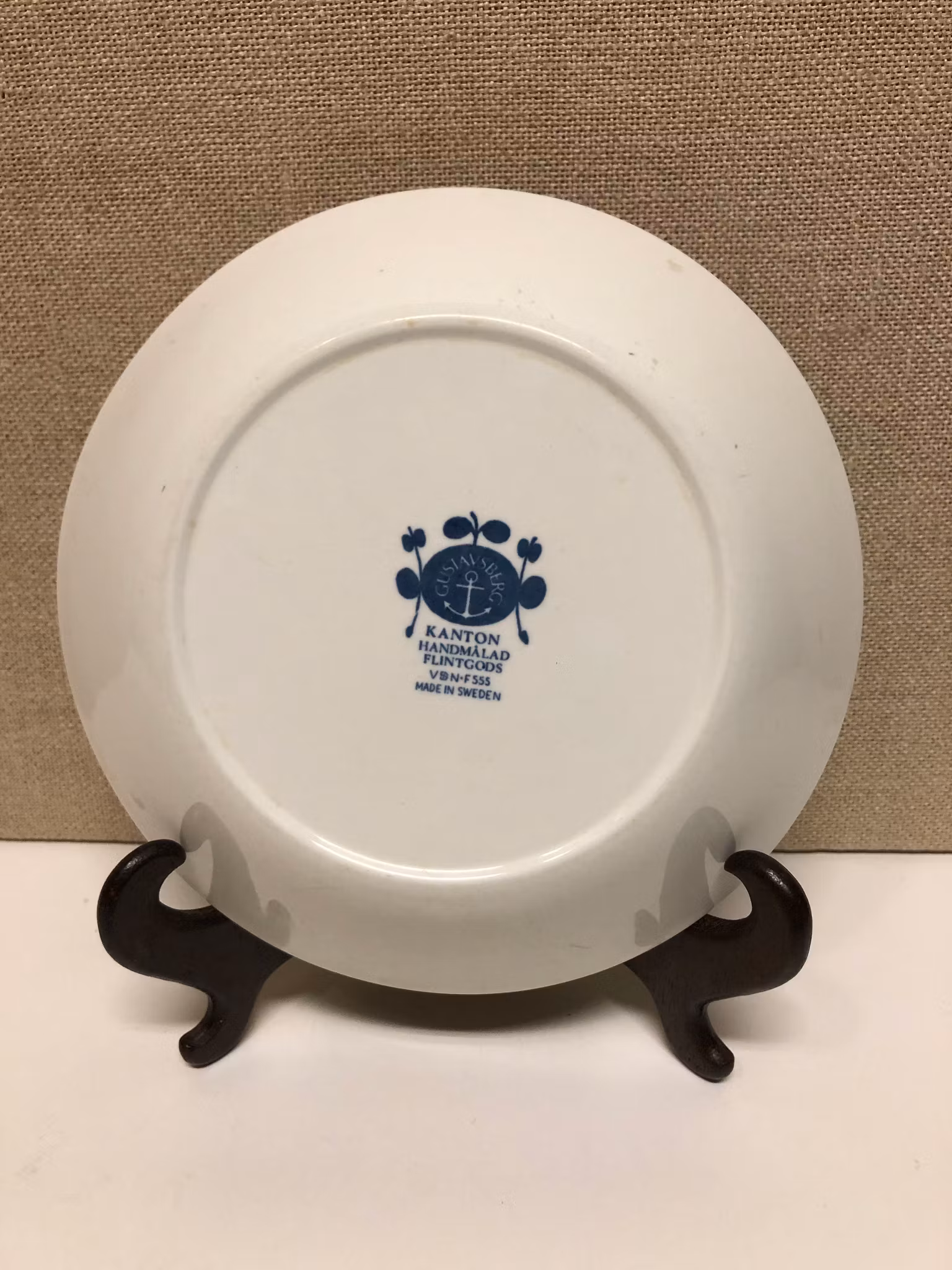 Djuptallrik design Stig Lindberg märkta Gustavsberg Kanton handmålad flintgods VDN 555 made in Sweden.