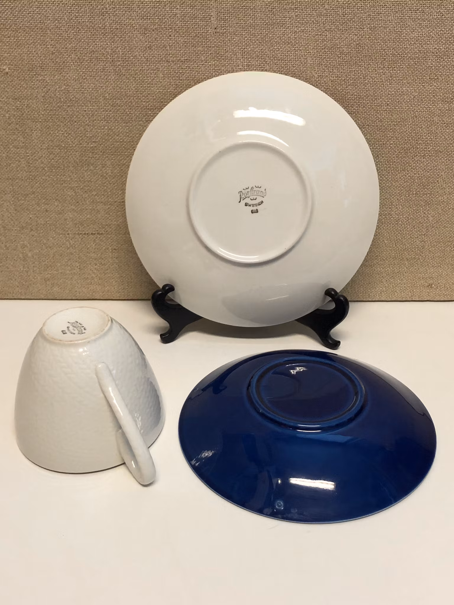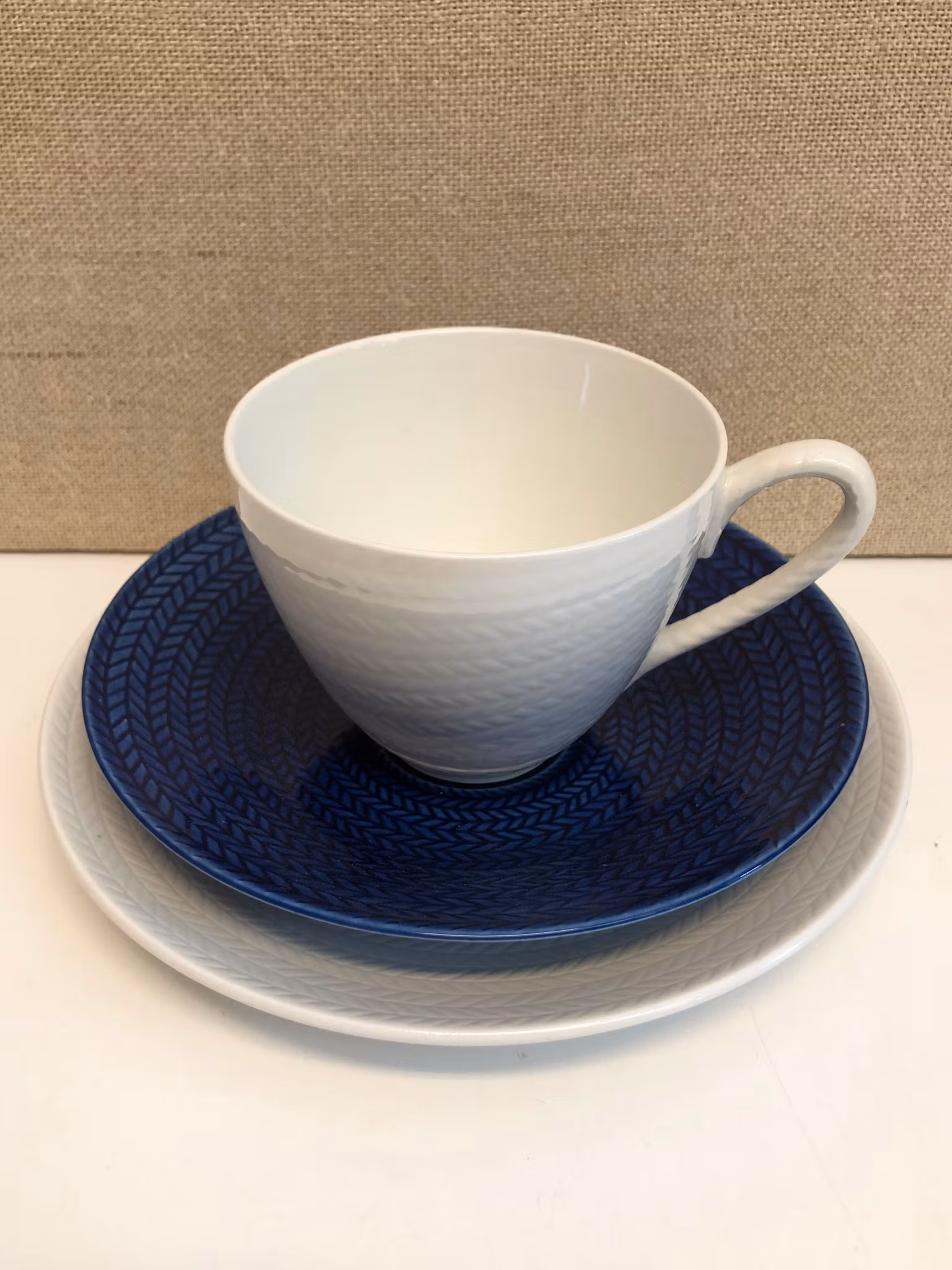 HERTHA BENGTSSON. Tekopp med fat samt Assiett, porslin,"Blå Eld", Rörstrand.