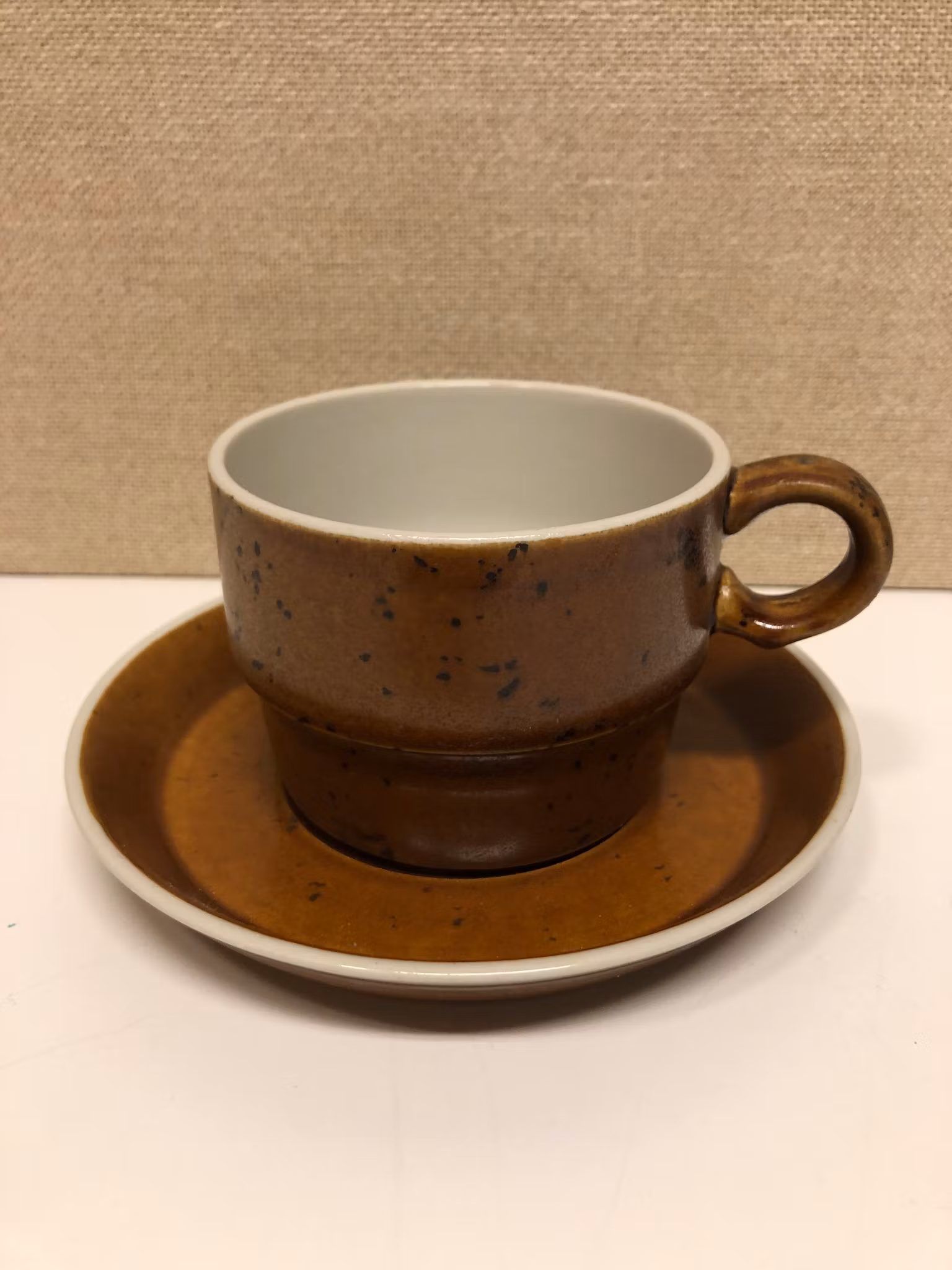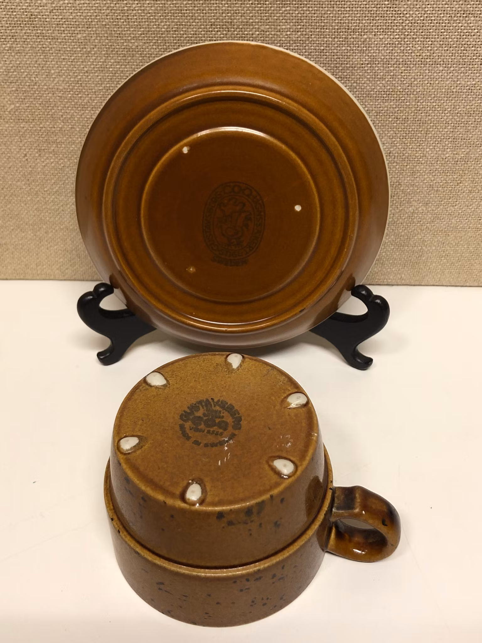 Tekopp med fat design Stig Lindberg, märkt Gustavsberg Coq ugnssäkert Stig L.