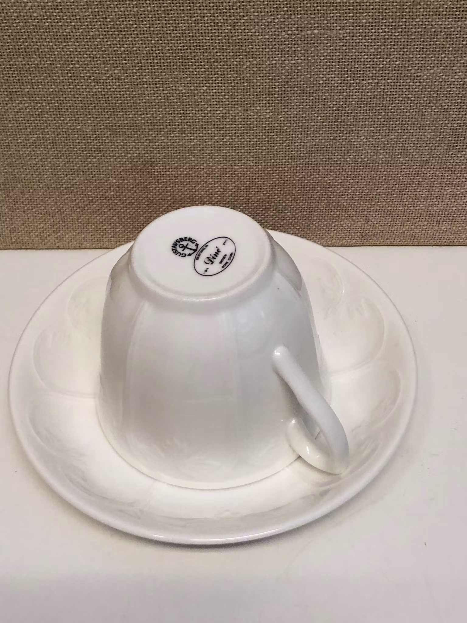 Tekopp med fat stämplad Gustavsberg benporslin Diné VDN B555 Sweden.
