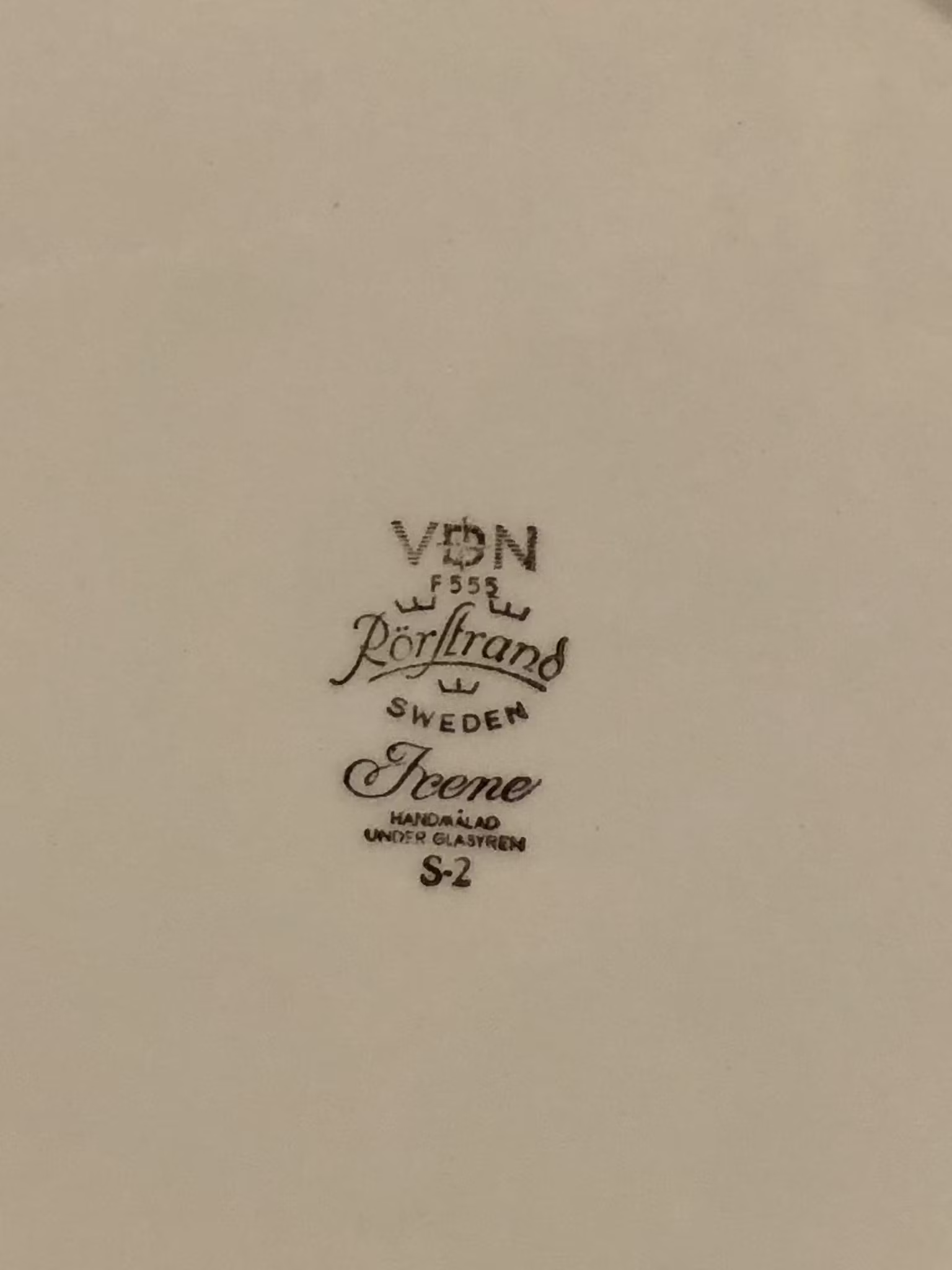 Mattallrik Irene design Rose Marie Benedikt märkt VDN 555 Rörstrand Sweden handmålad under glasyren R-2.