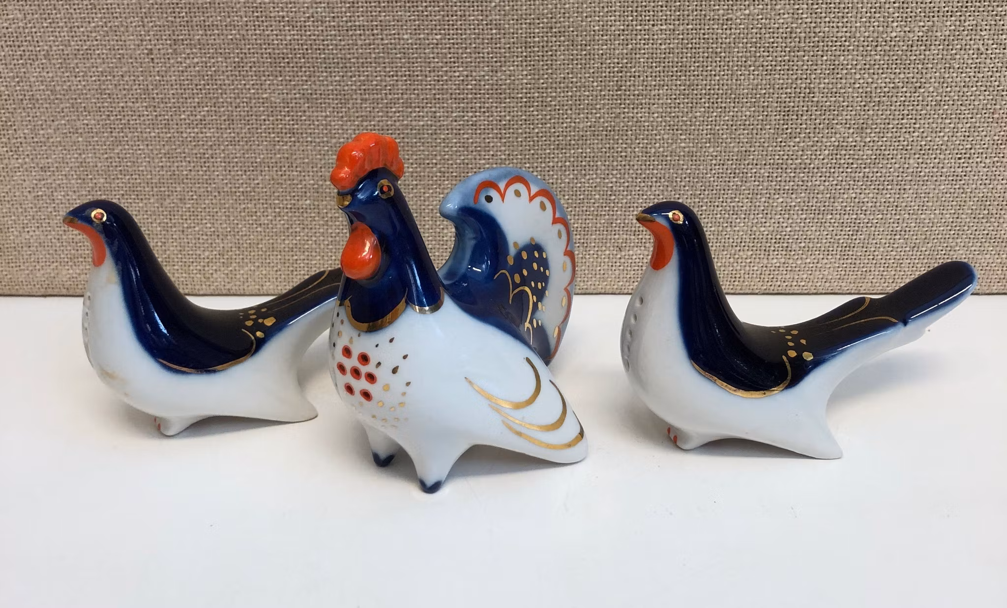 SALT OCH PEPPARKAR 3 delar porslin, Lomonosov, USSR.