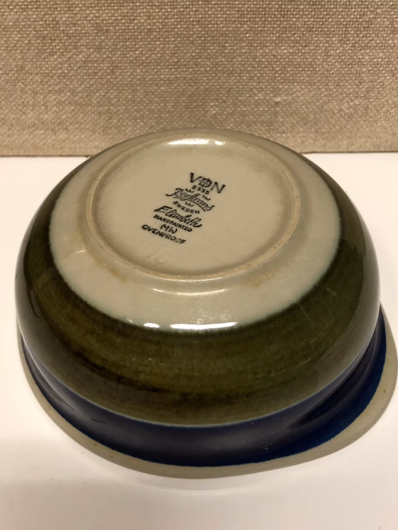 Skål med öron design Mariann Westman, märkt VDN 555 Rörstrand Sweden Elisabeth handmålad MW.