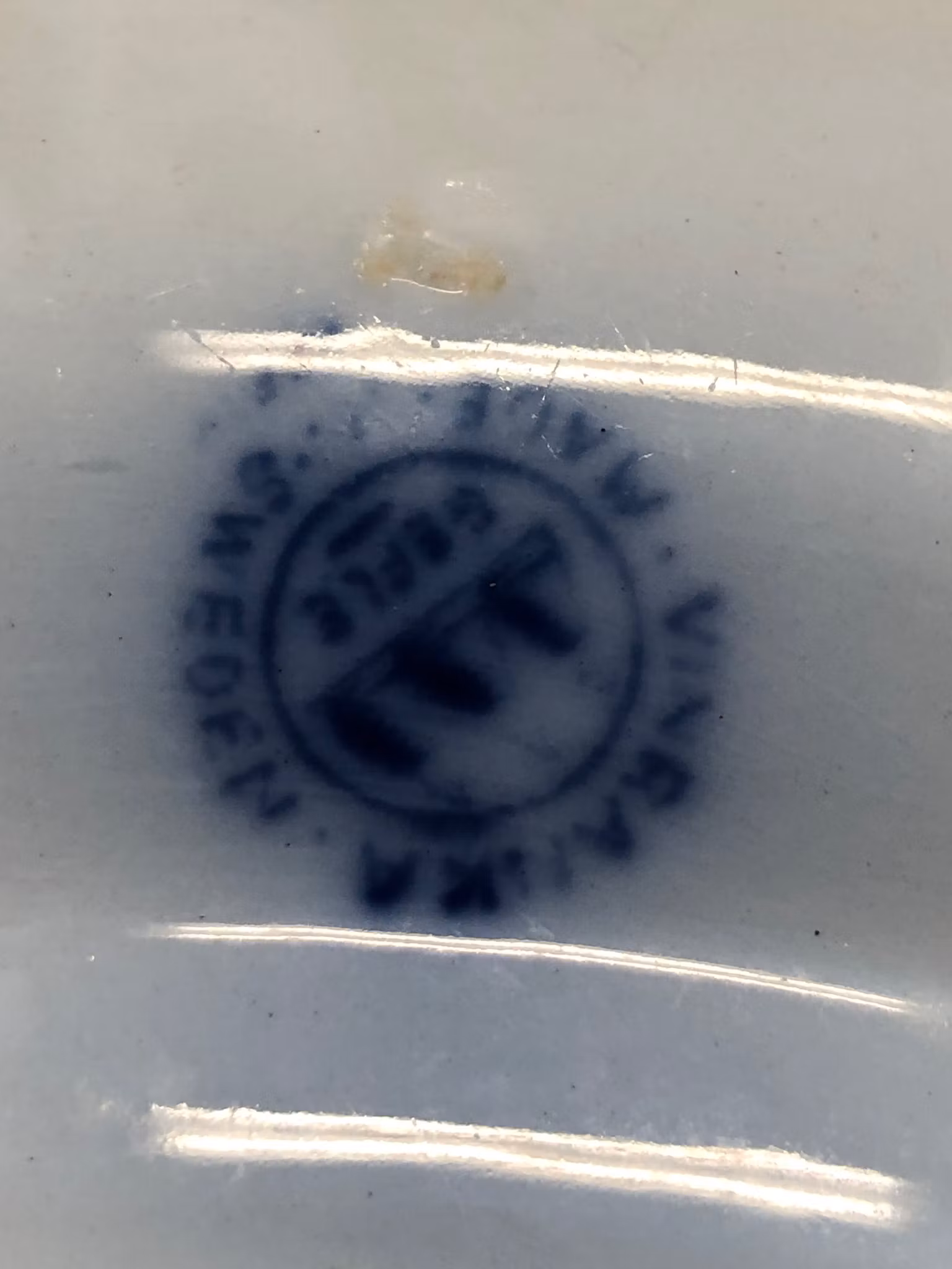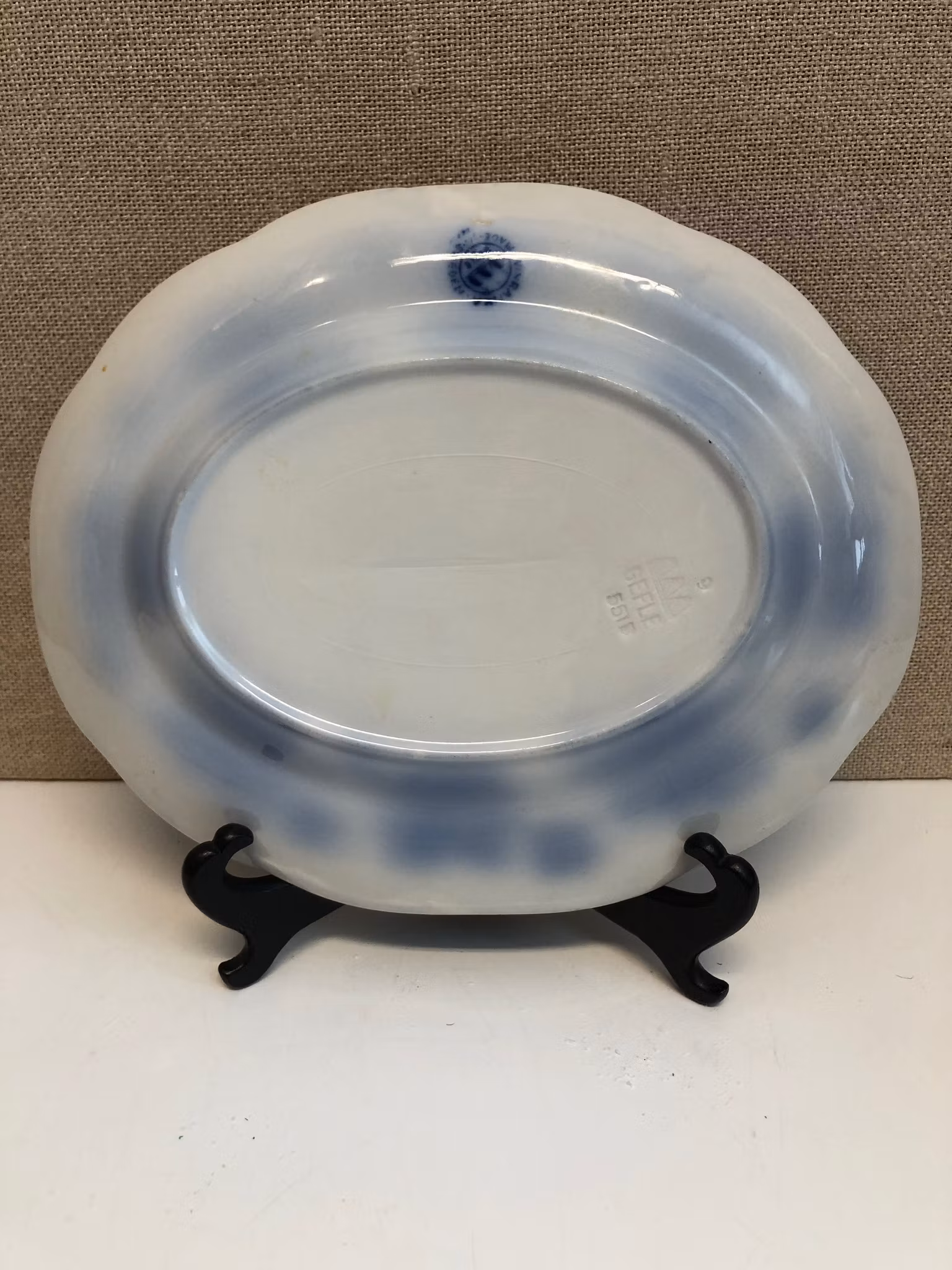 Uppläggningsfat i flintgods Vinrankan flytande blå design Arthur Percy Gefle, stämplade.