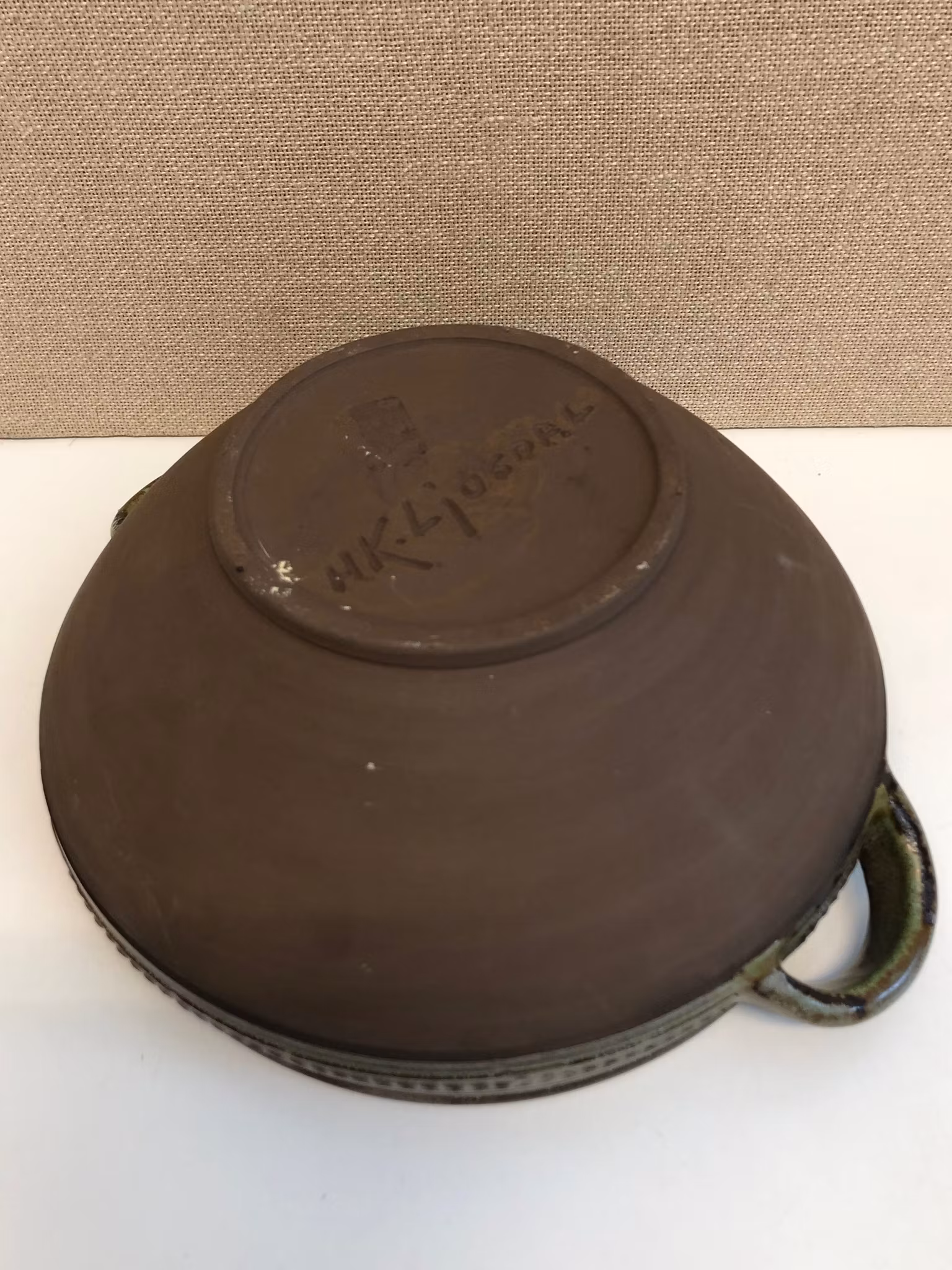 Skål med hänklar i keramik märkt i godset HK ljusdal.