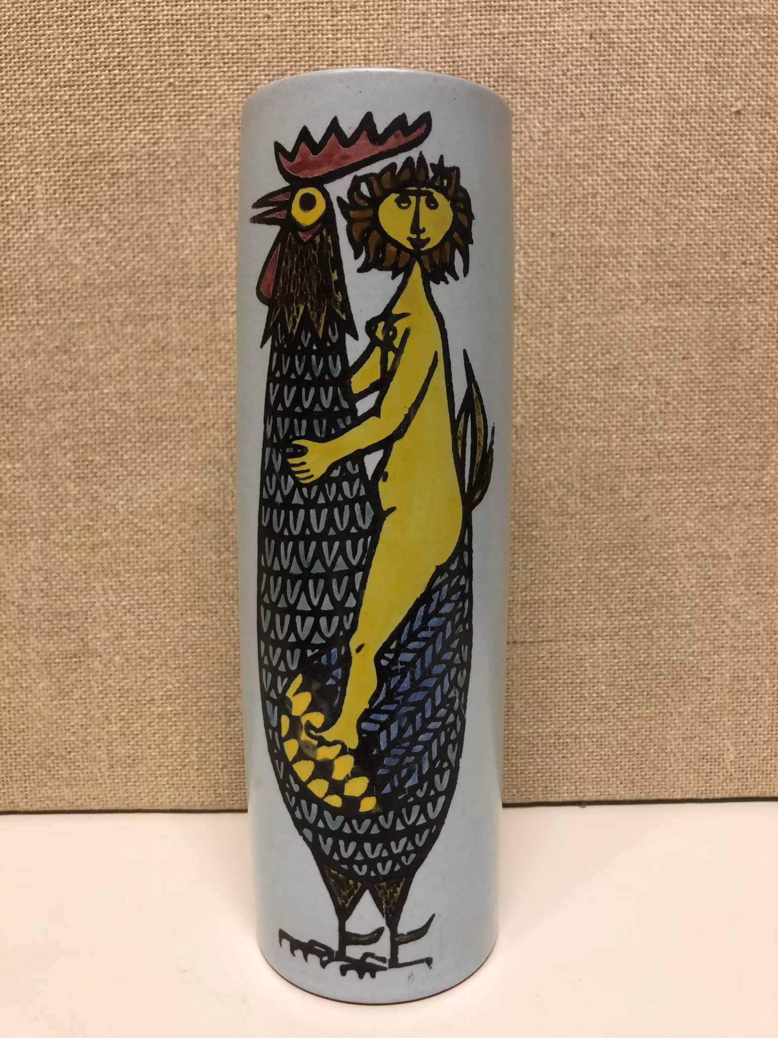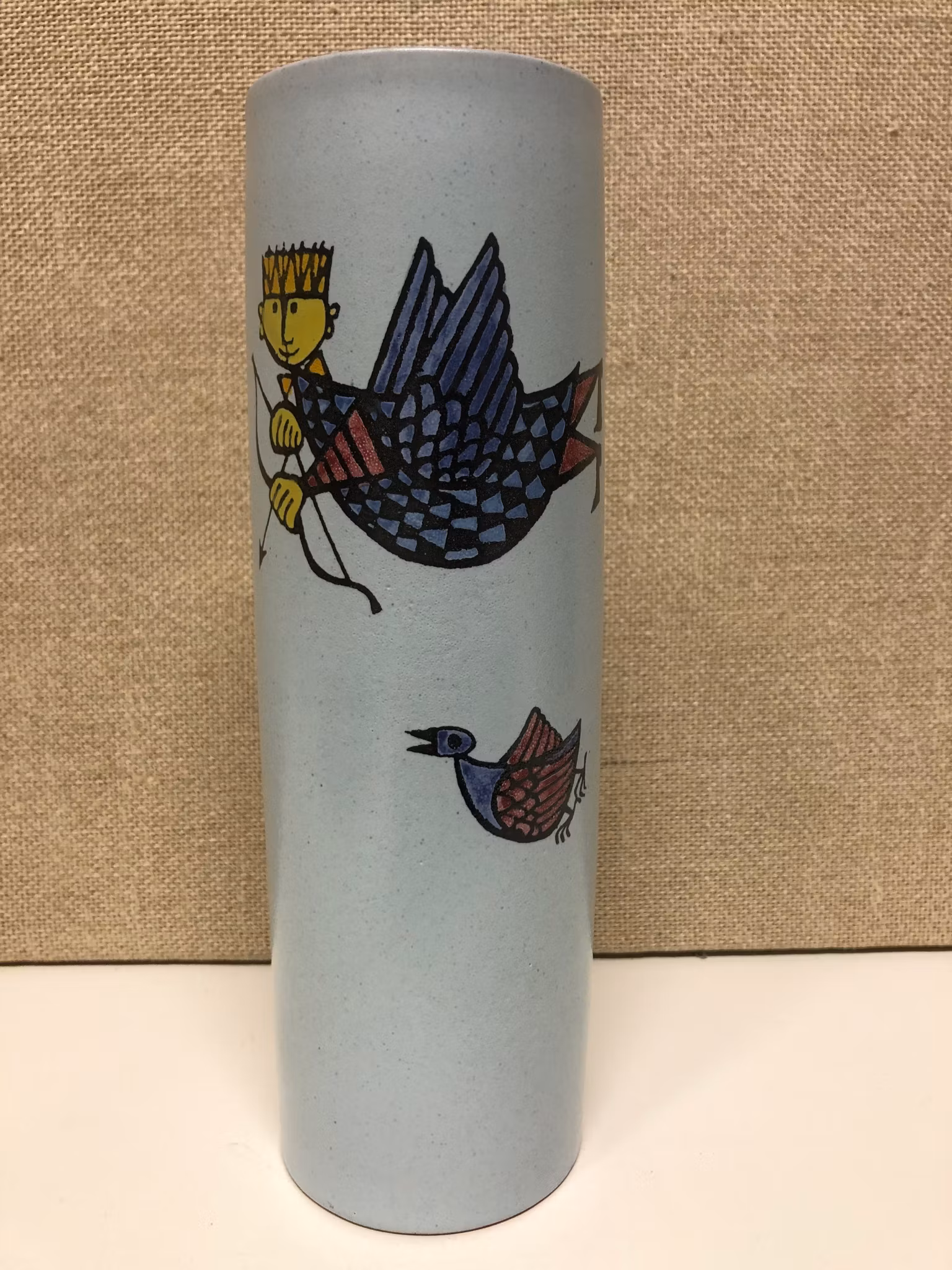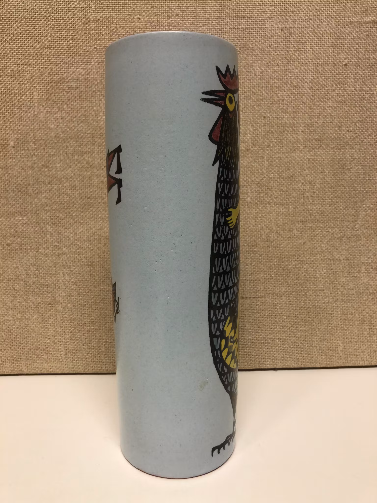 Vas i fajans design Stig Lindberg, märkt med studiohanden Sweden 256 Y samt målar signatur.
