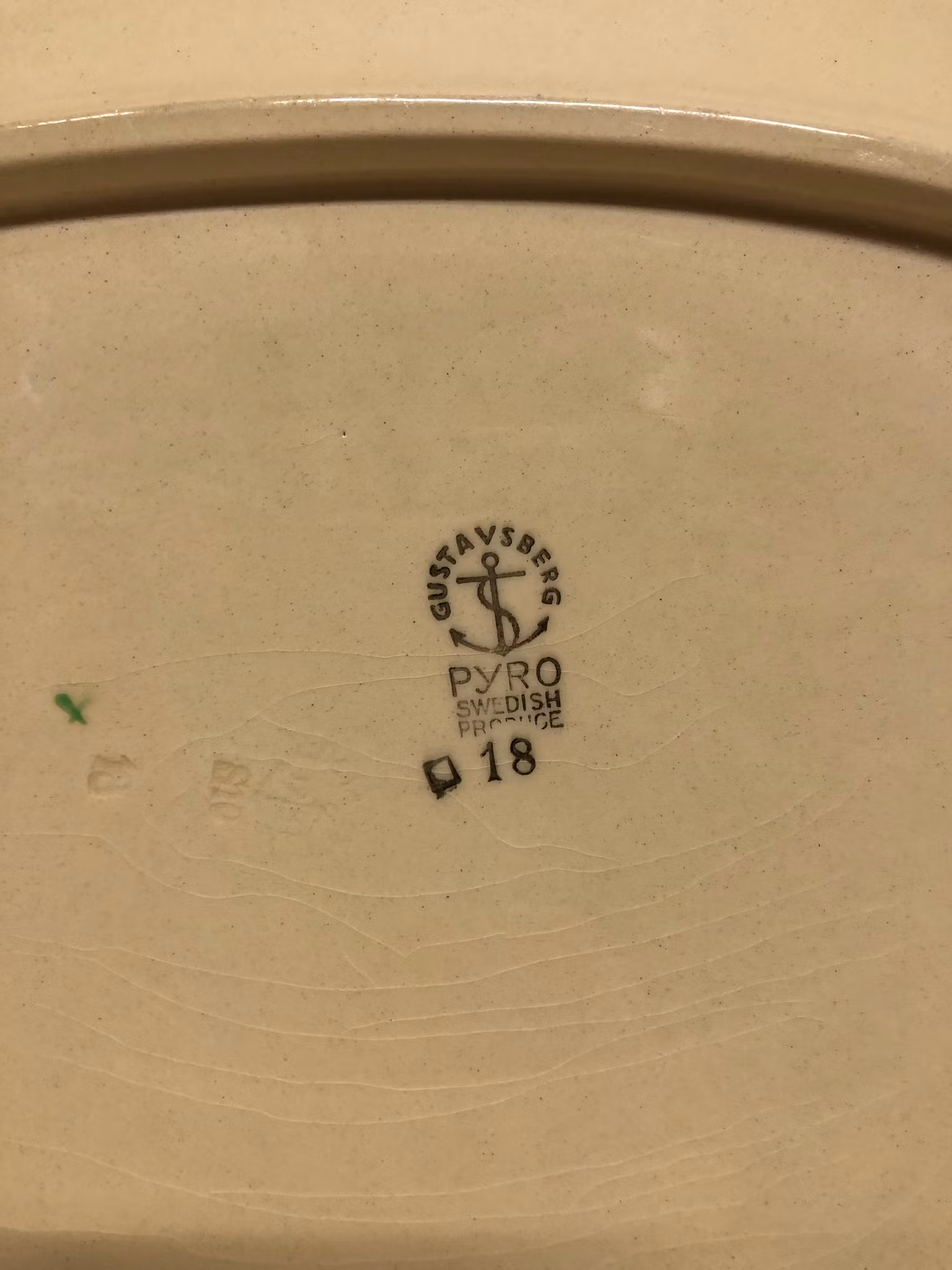 Uppläggningsfat design Wilhelm Kåge, märkt Gustavsberg Pyro produce 18.