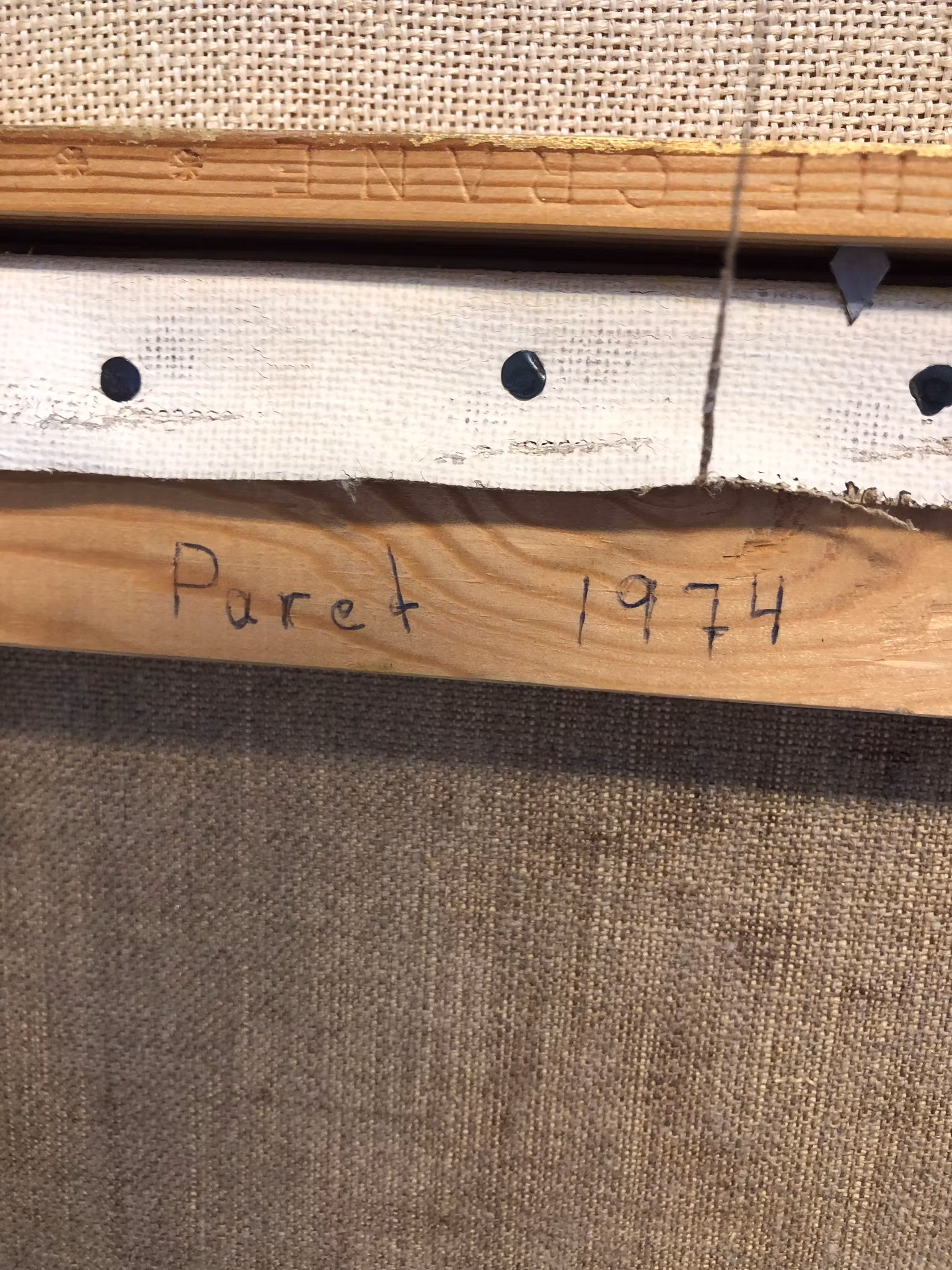 Olja på duk av Britta Karlsson, märkt på spännramen Paret 1974.