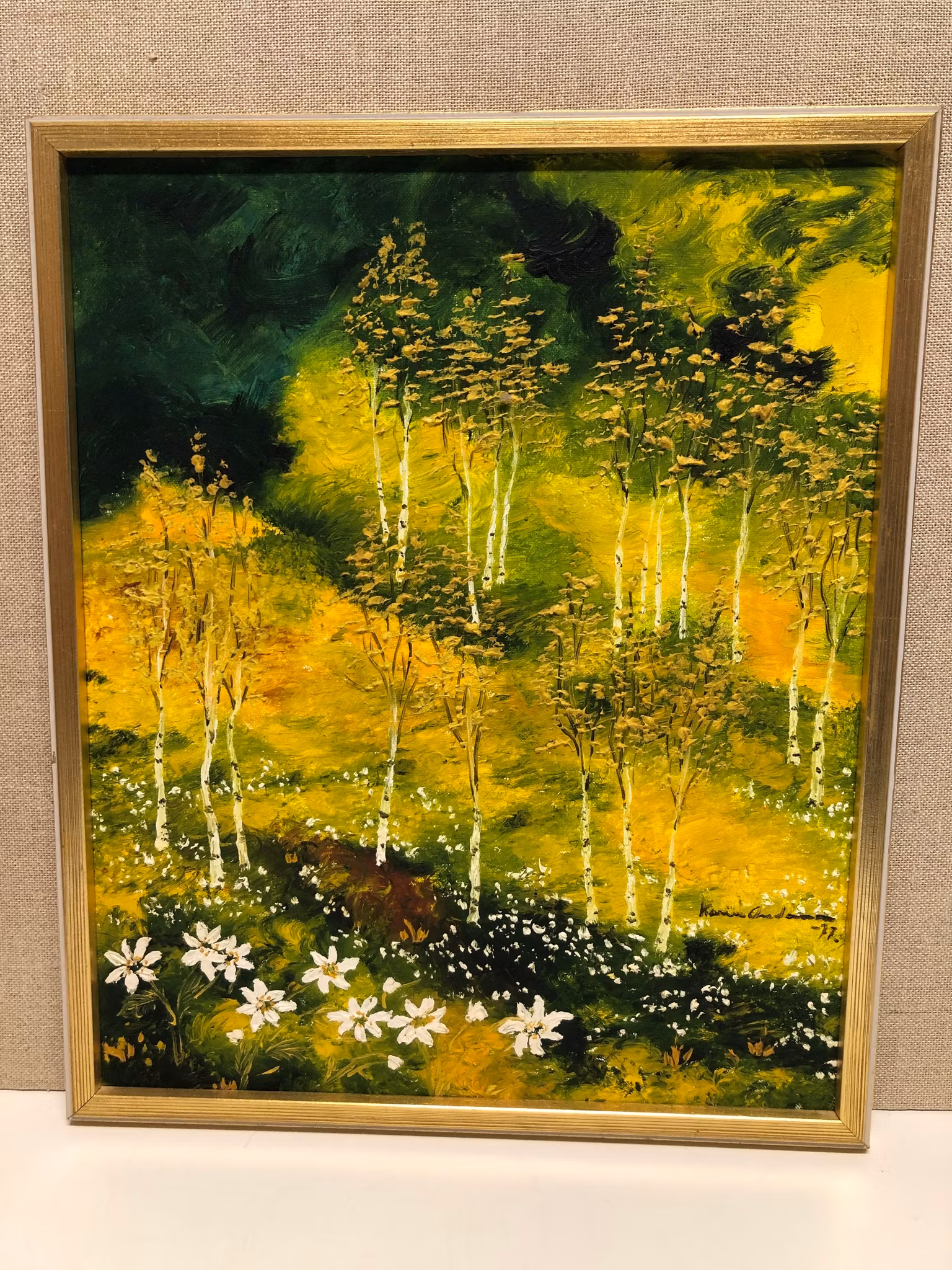 KARIN ANDERSSON. Olja på duk, "Björkar", signerad och daterad -77.