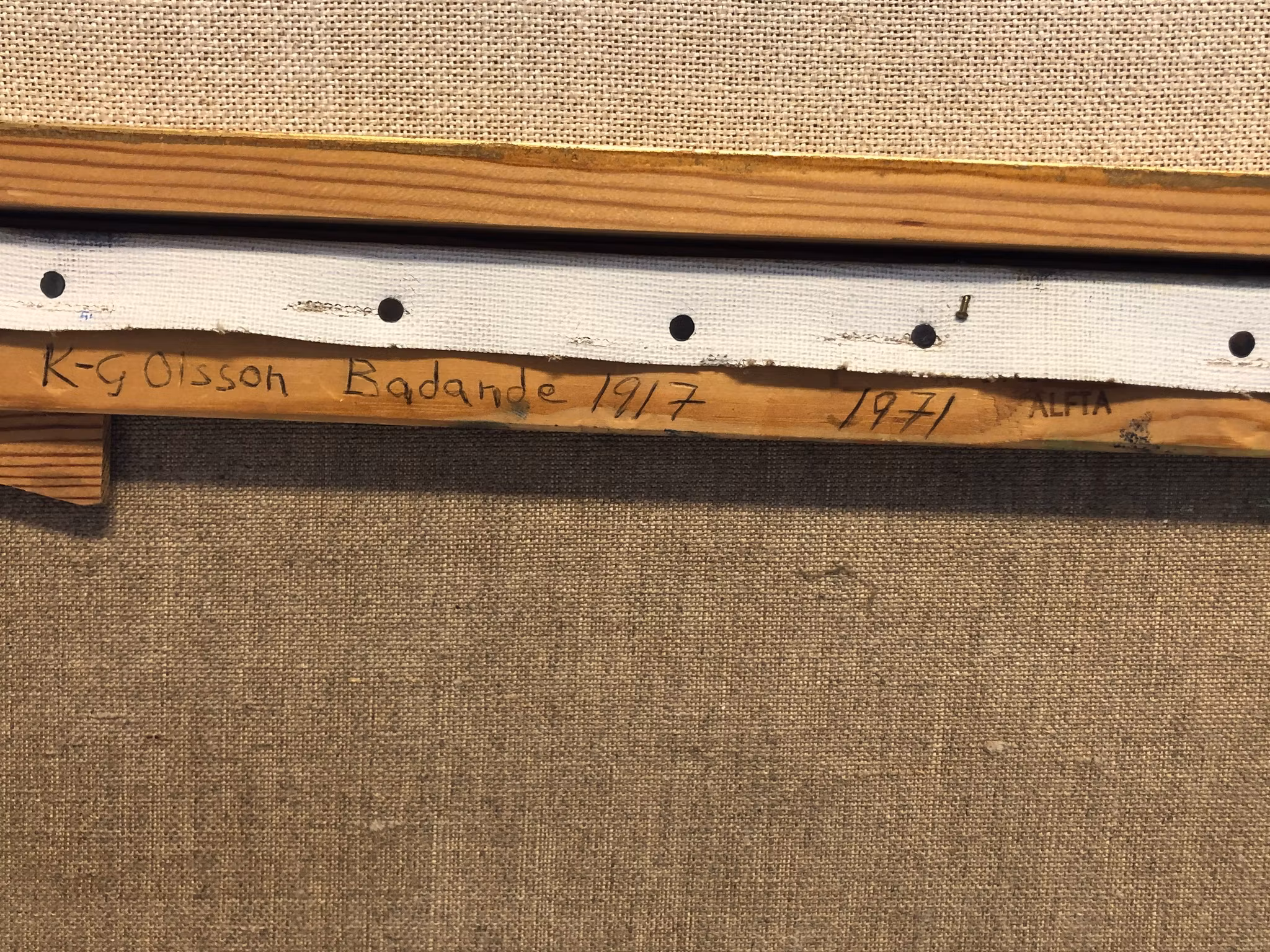 K.G Olsson olja på duk, märkt på spännramen Badande 1917, 1971.