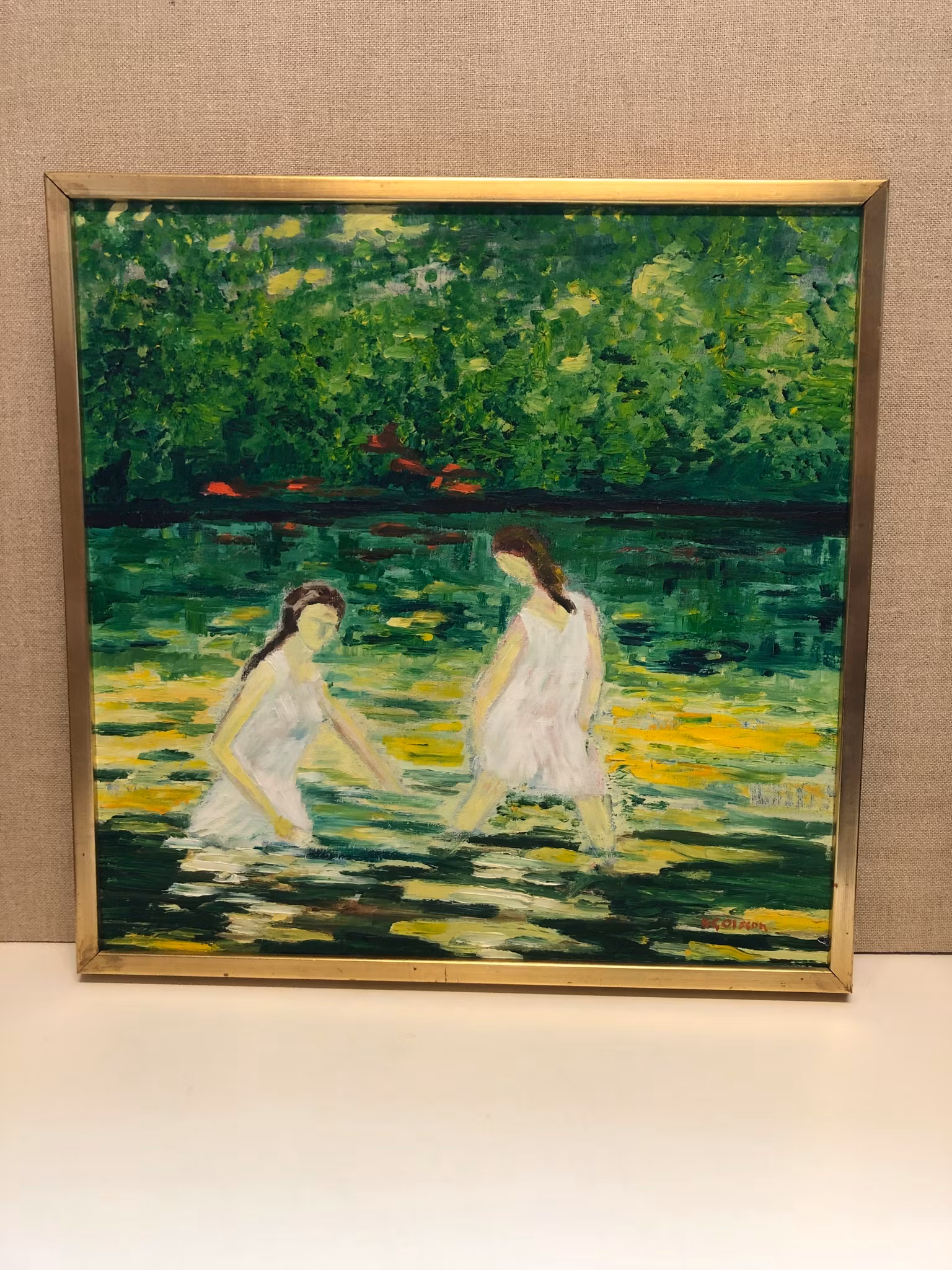 K.G. OLSSON. Olja på duk, " Badande 1917", signerad.