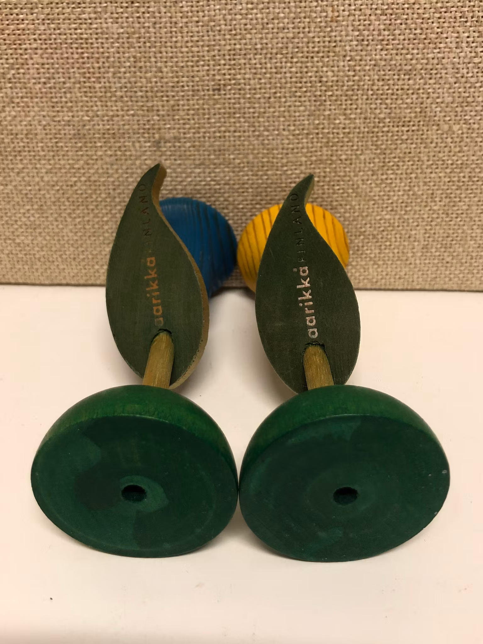 2 st. träskulpturer i form av blomma, märkt undersida blad Aarikka Finland.