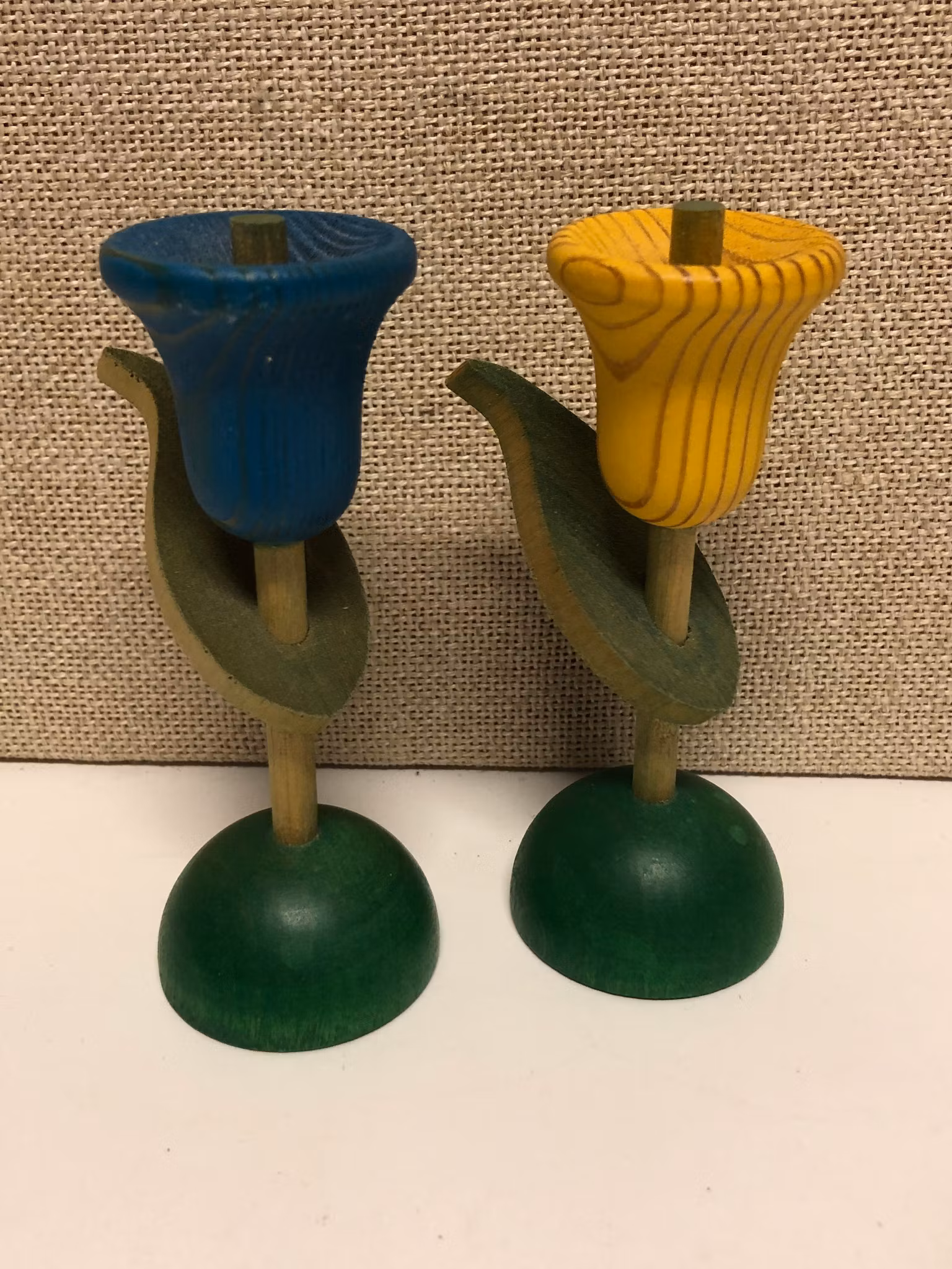 SKULPTURER 2 st. trä, " Blommor", Aarikka, Finland.