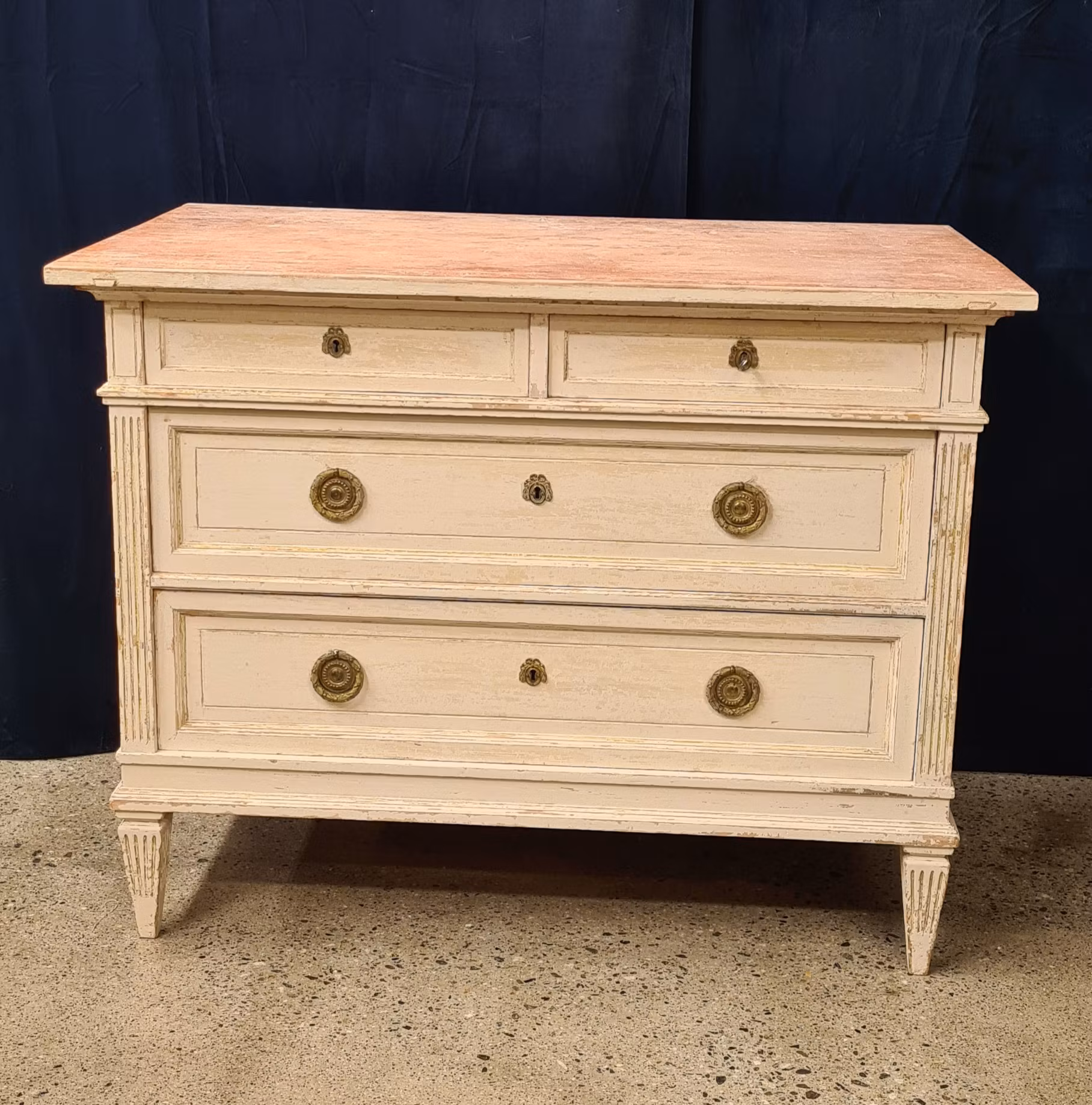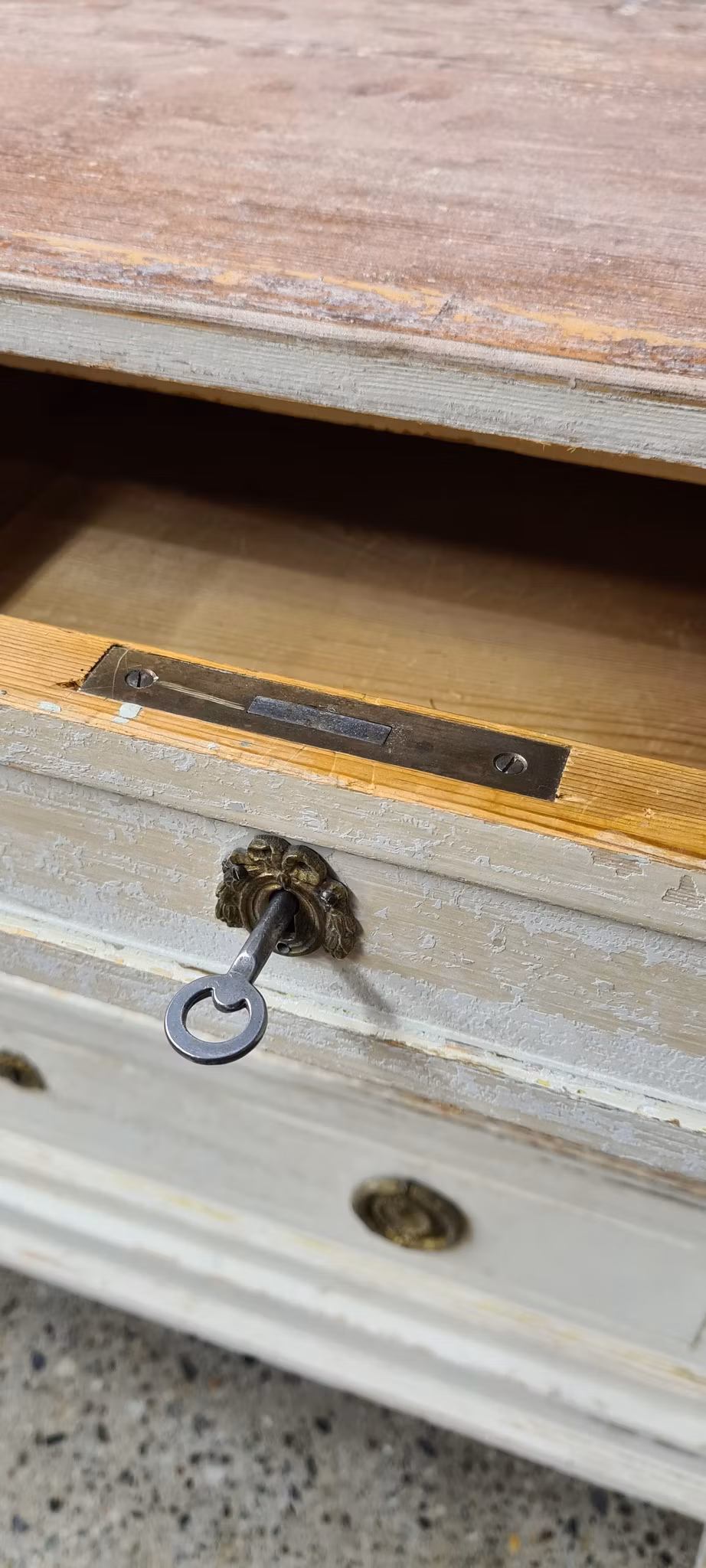 BYRÅ, bemålad furu, Gustaviansk stil, tidigt 1900-tal. 14 500 kr I lager. Lägg i korgen Lagersaldo: 1 Produktbeskrivning Recensioner Höjd 82 cm.Längd 105 cm.Bredd 58,5 cm.