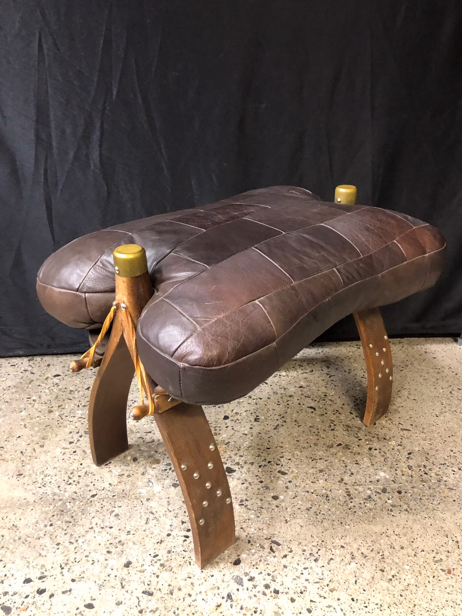 PALL, trä/läder, "Kamelpall", 1900-talets andra hälft.