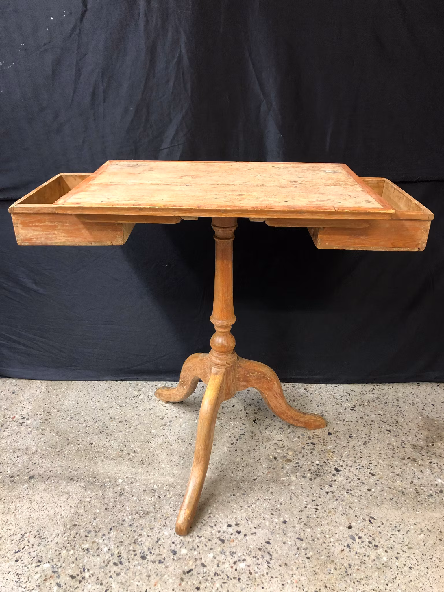Pelarbord med två utdragslådor, löstagbar skiva.