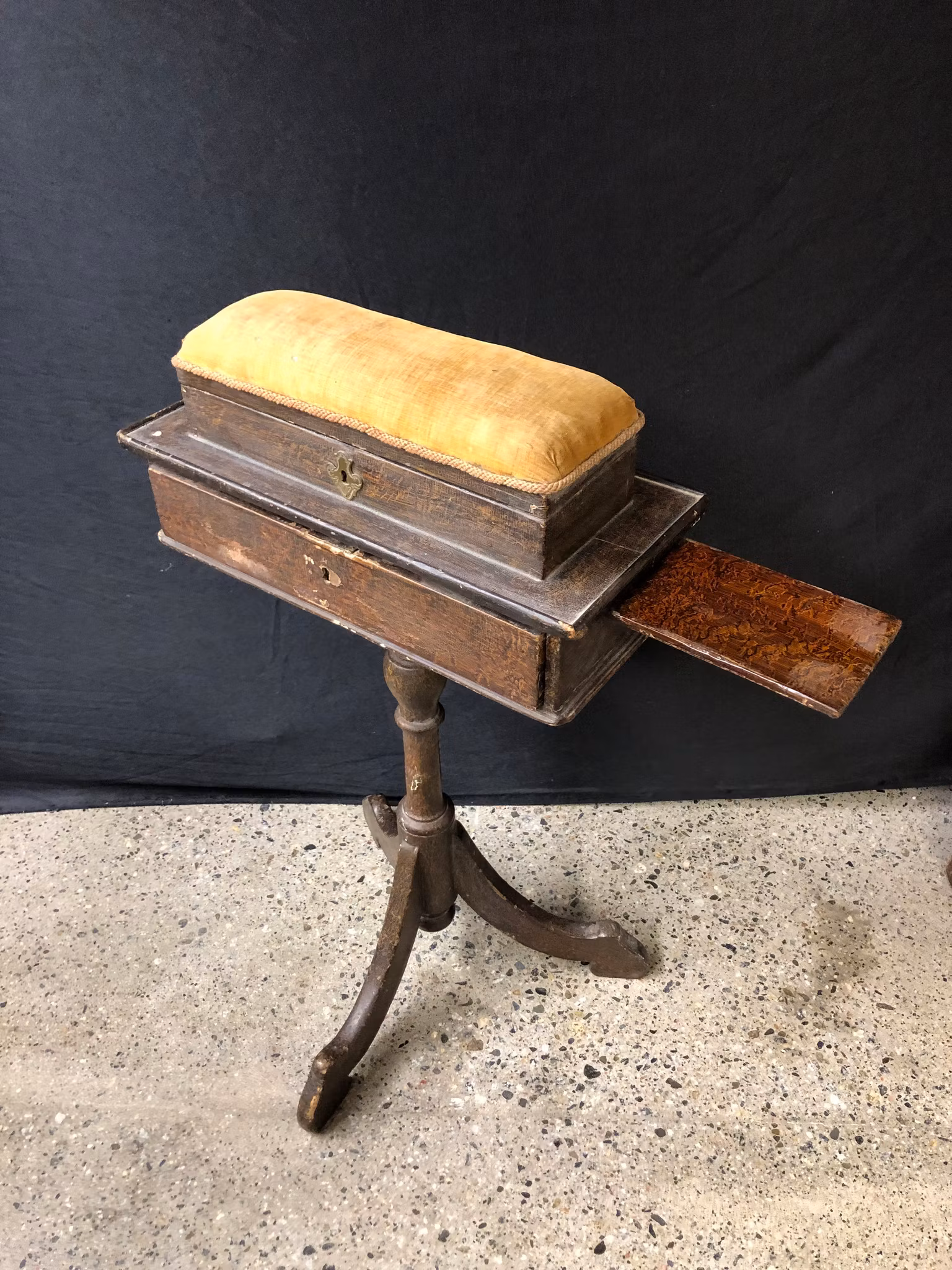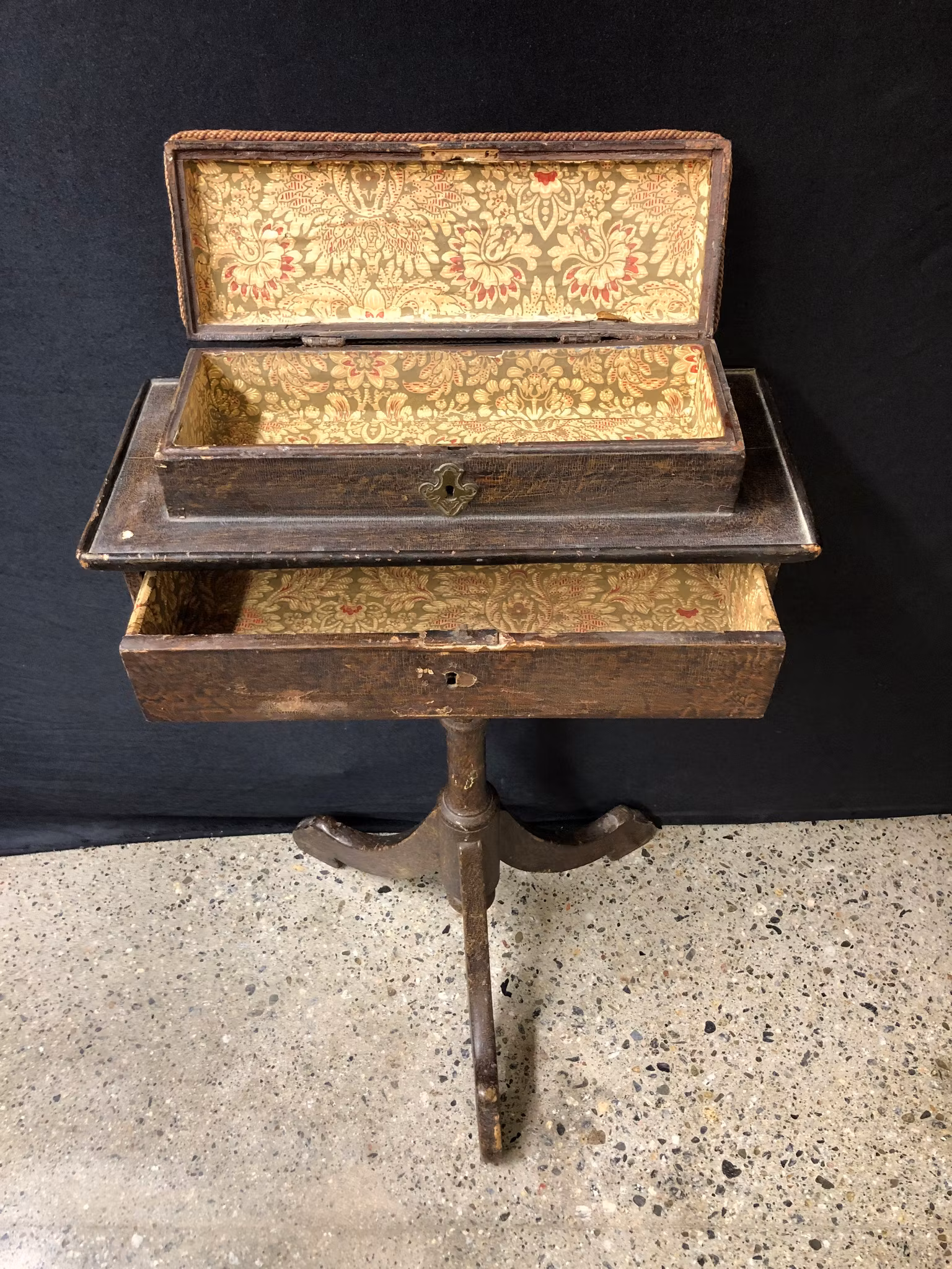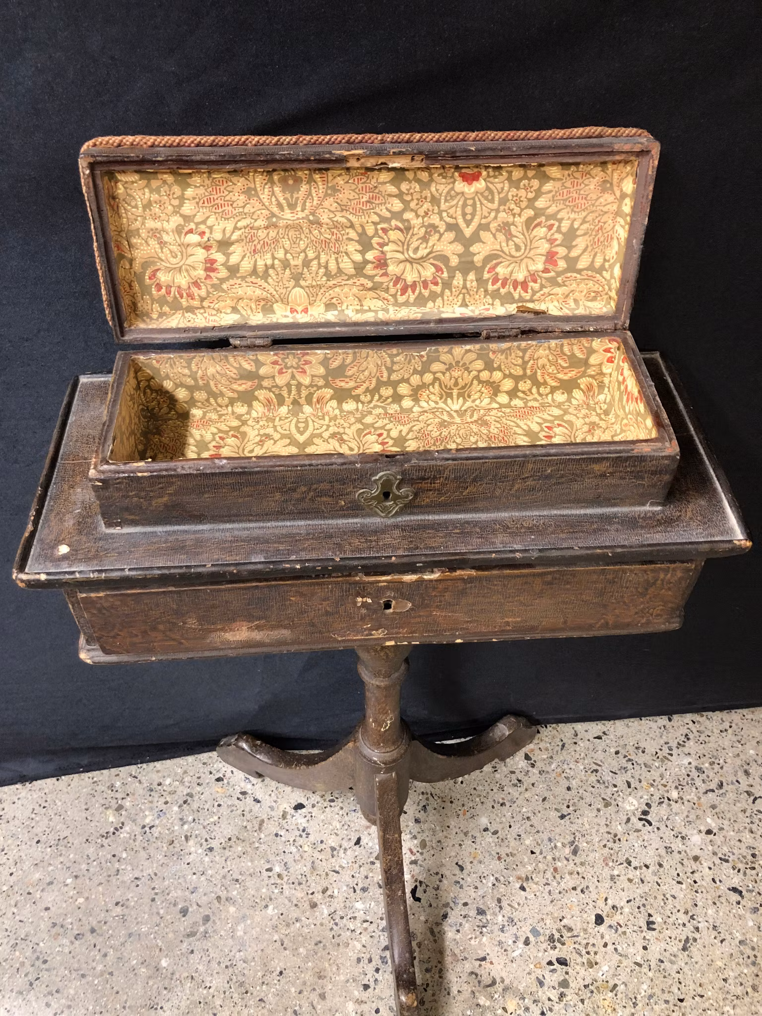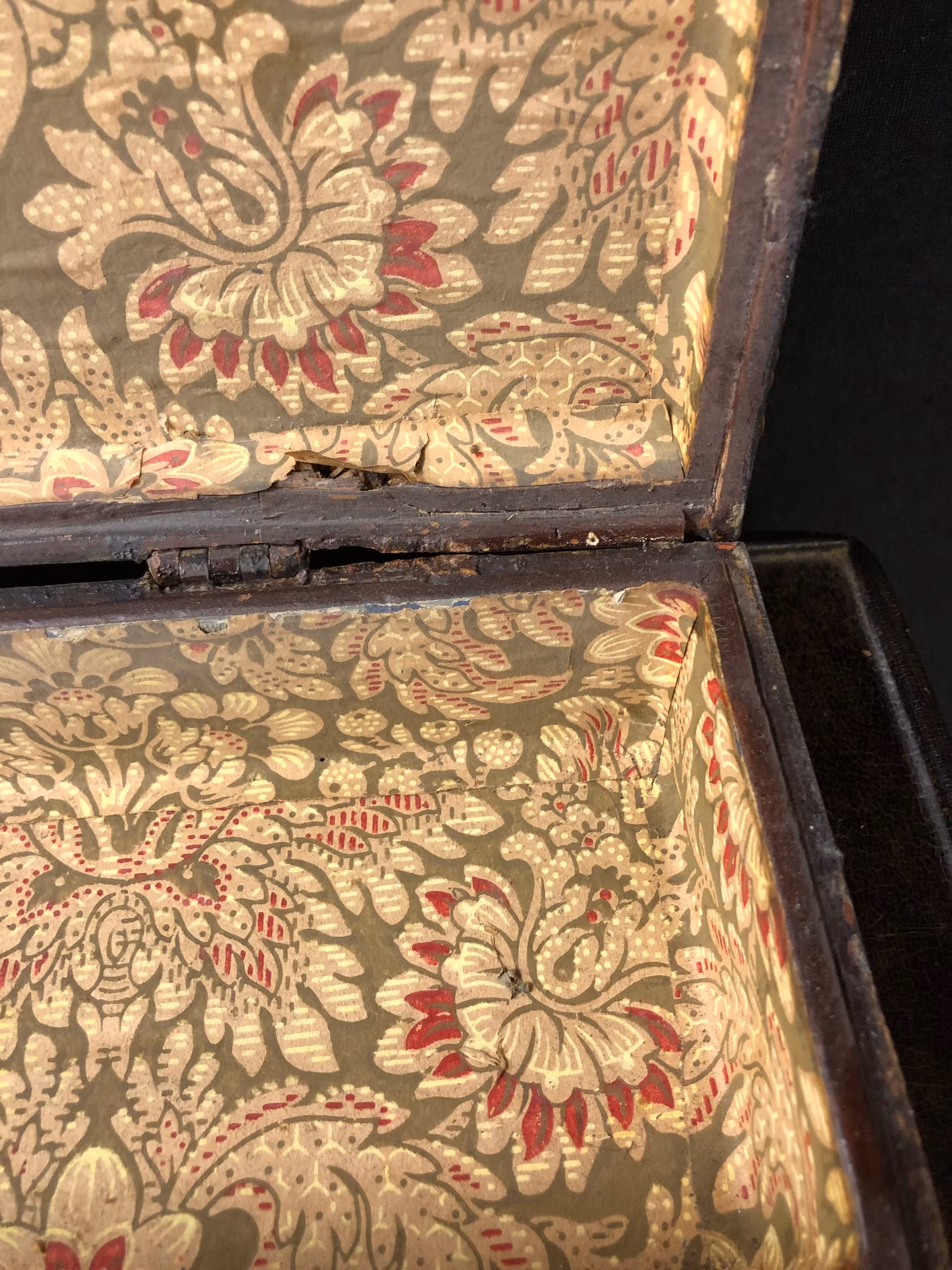 Toppen klädd med textil, invändigt med mönstrat tapet, 2 st, utdragbara ljusbrickor.