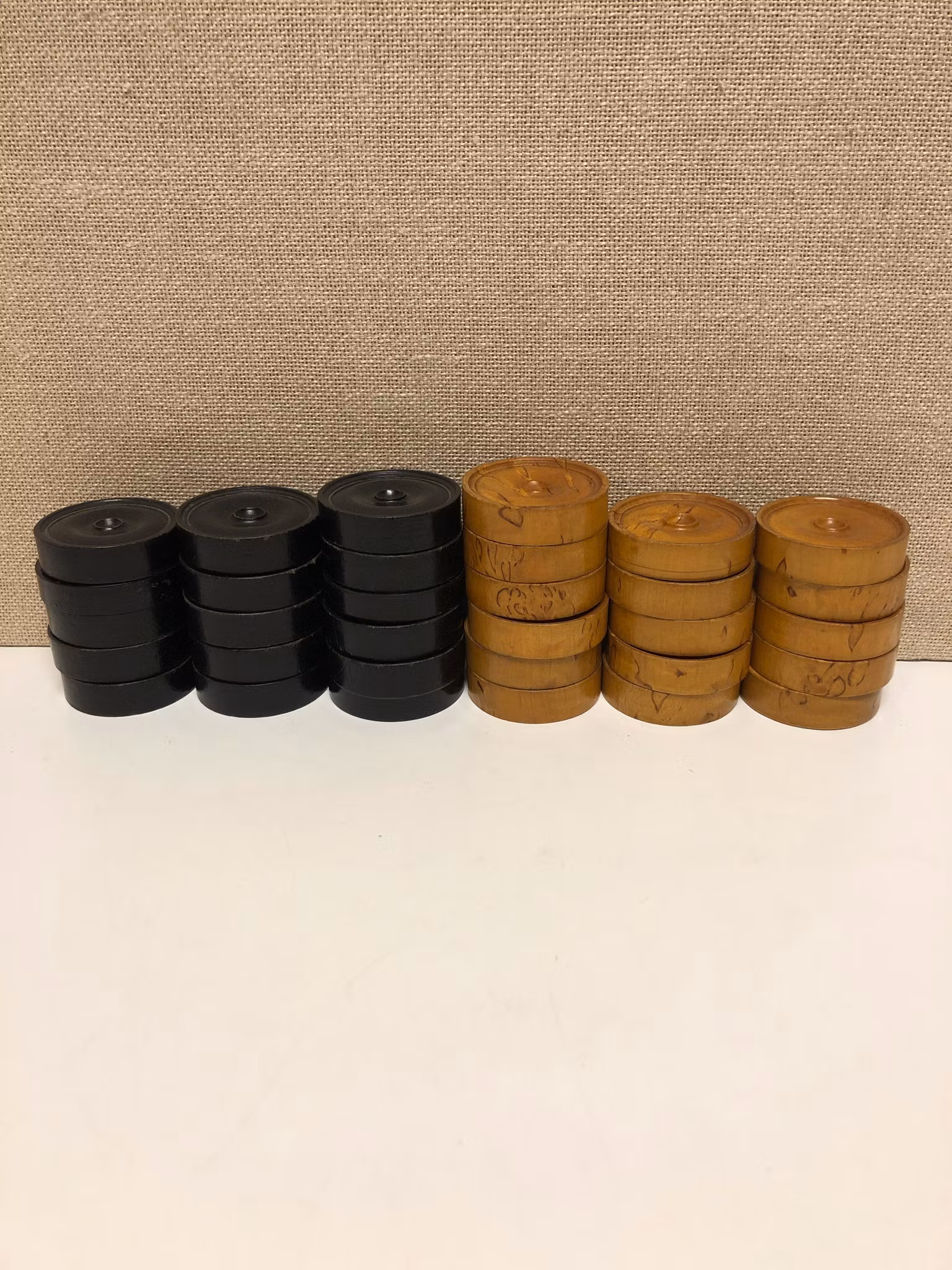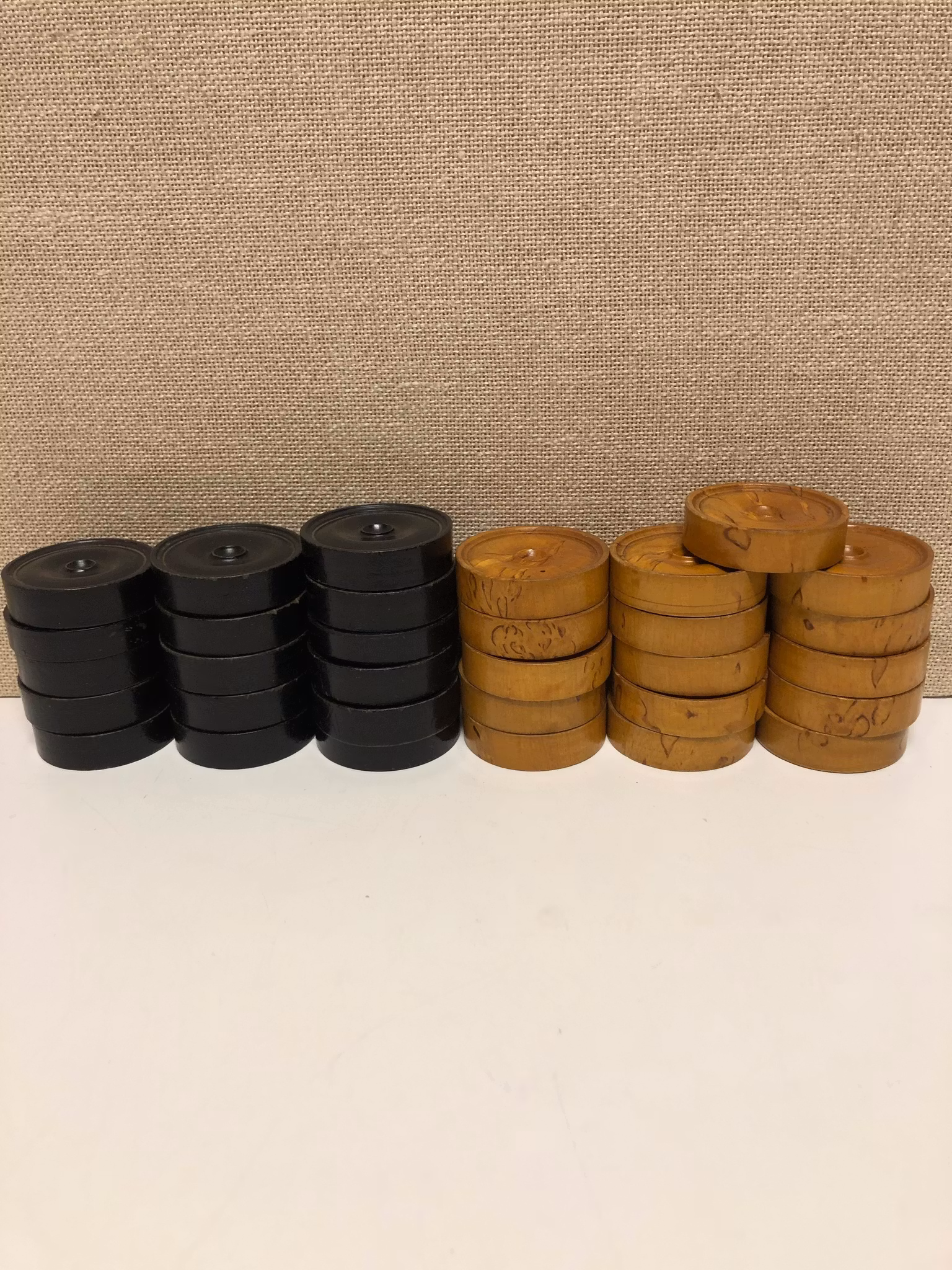 SPELPJÄSER 32 st. björk, backgammon, 1800-tal.