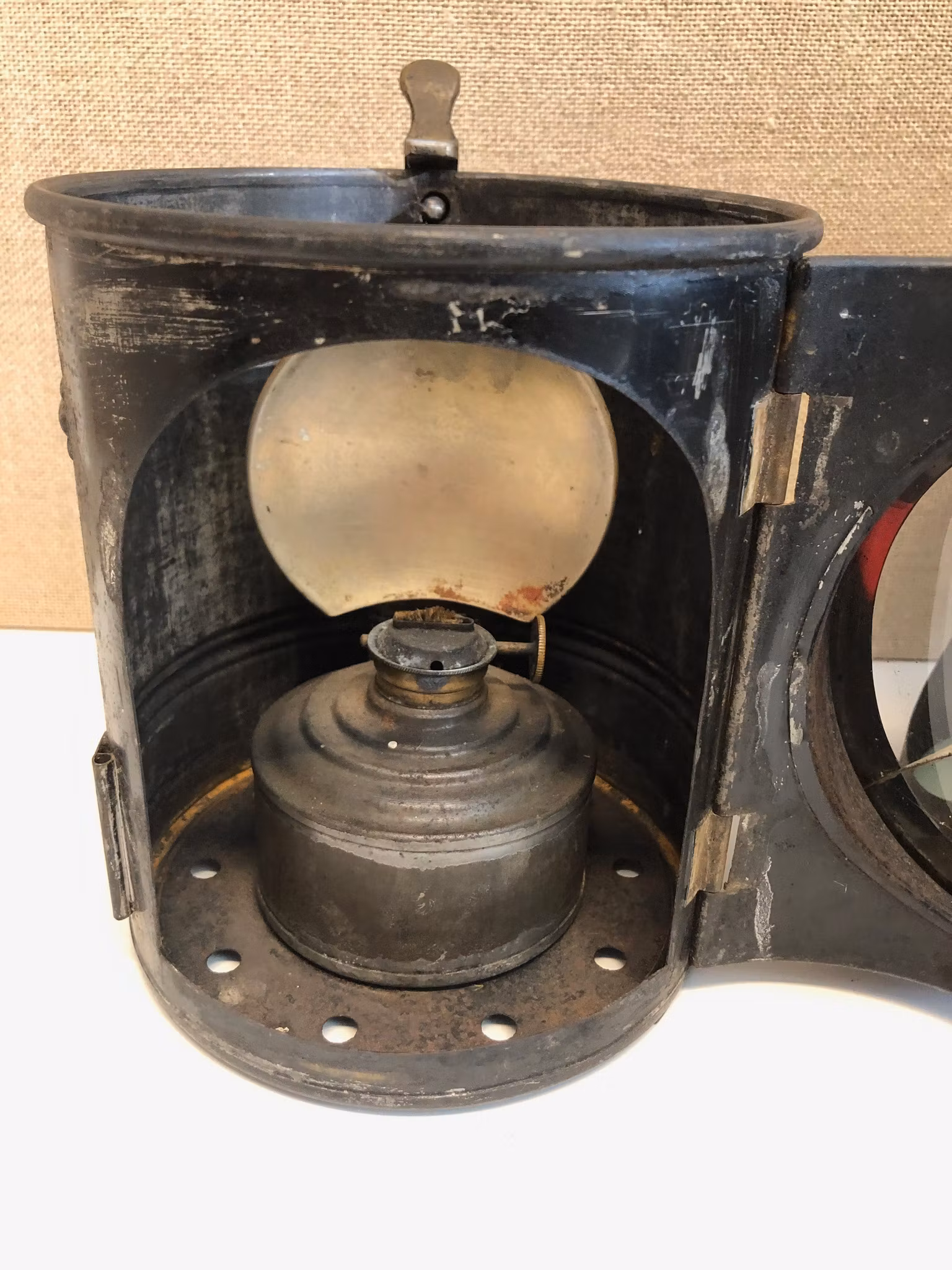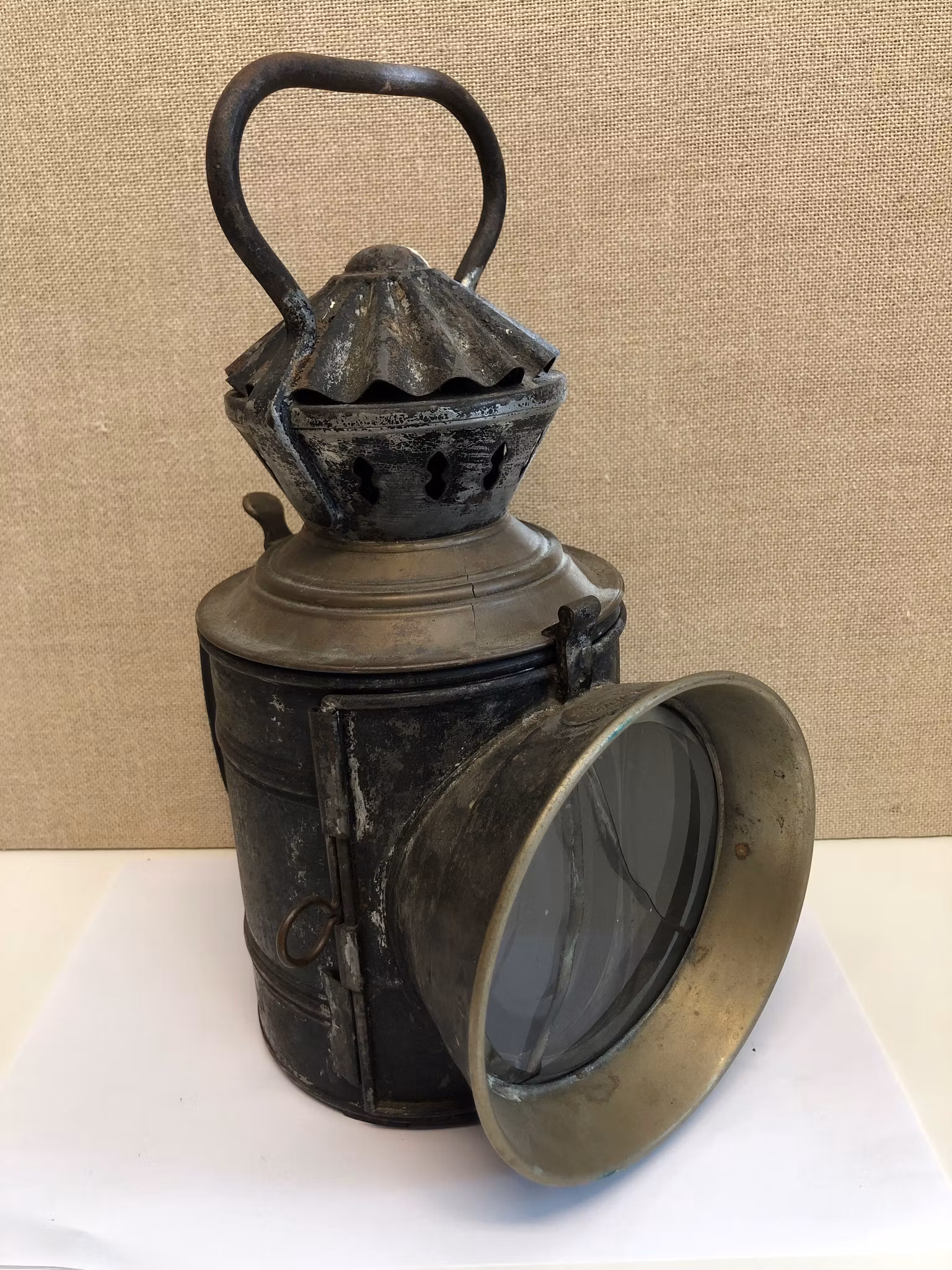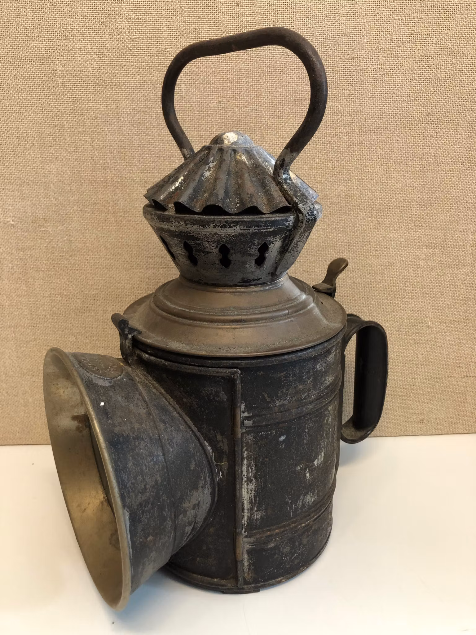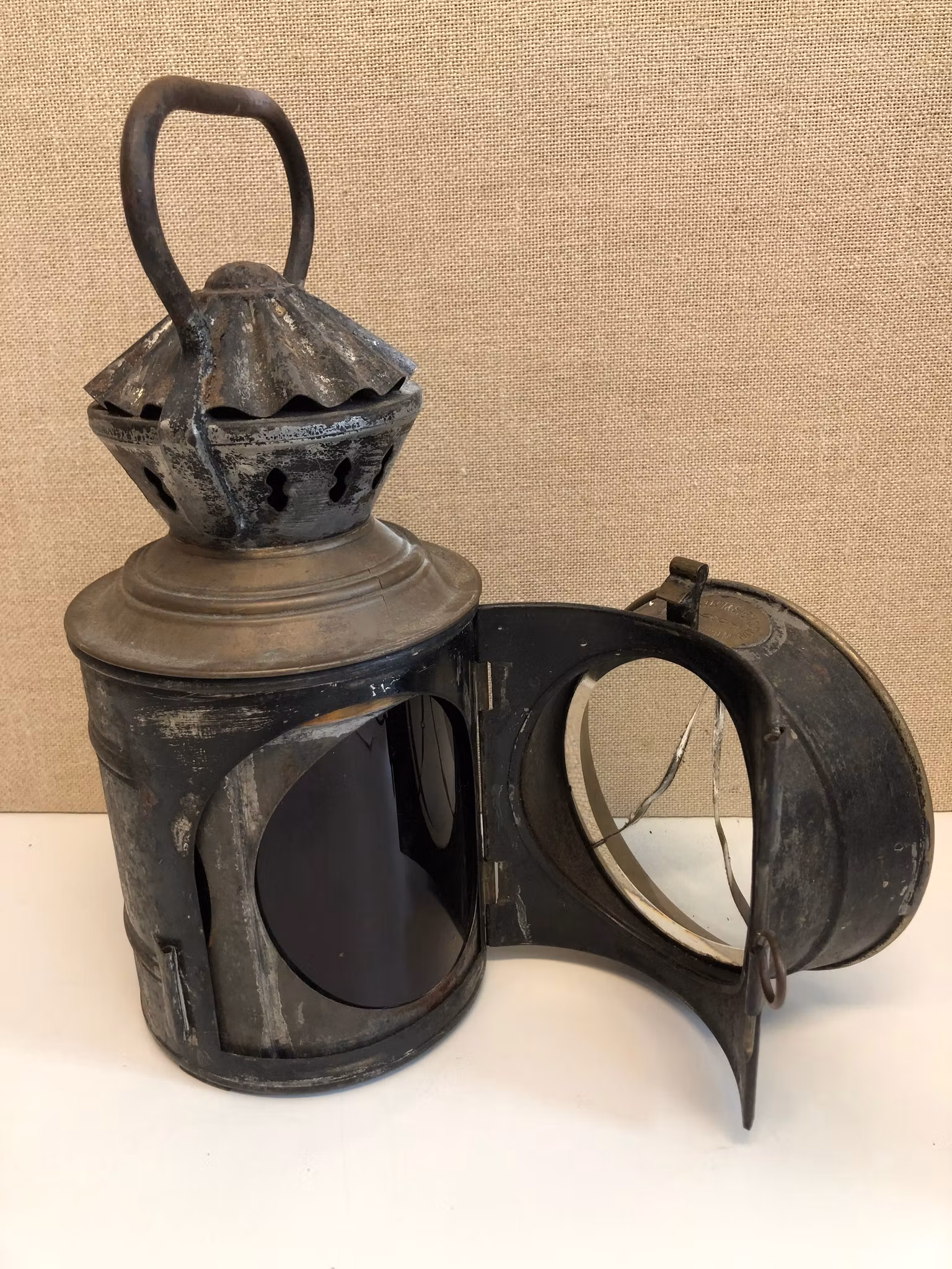 Stinslykta i metall med invändig brännare, brickmärkt Dahlstedt & Svensson Stockholm