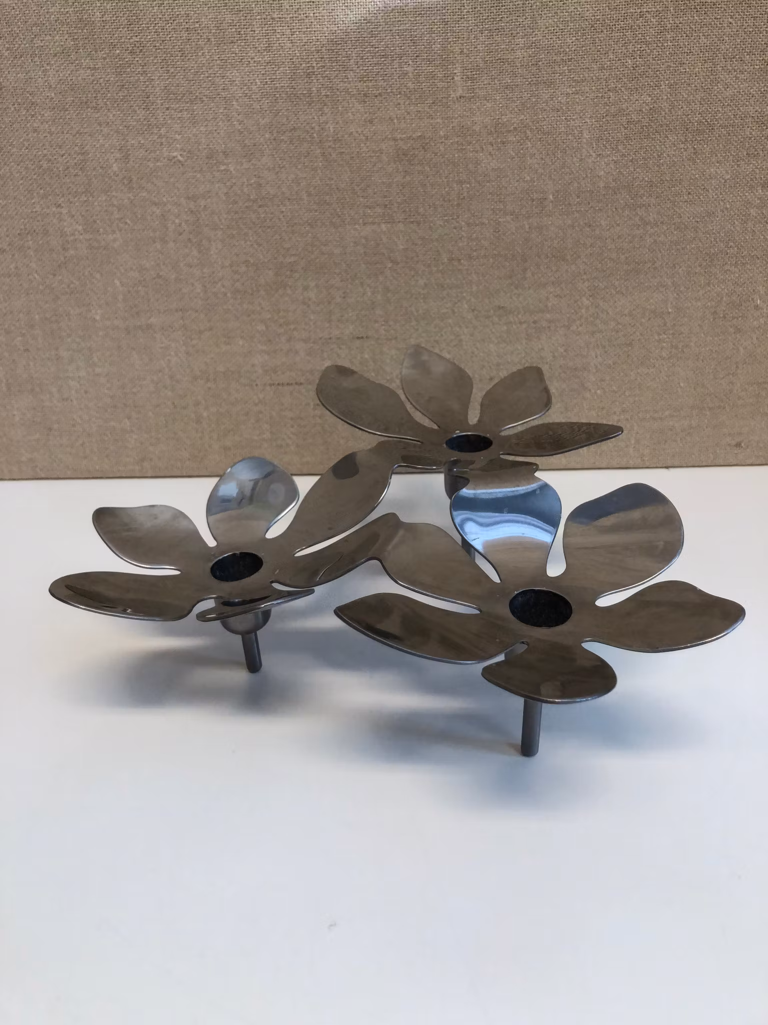 Ljusstake för tre ljus i rostfritt stål från serien Stockholm, design Monika Mudler Ikea.