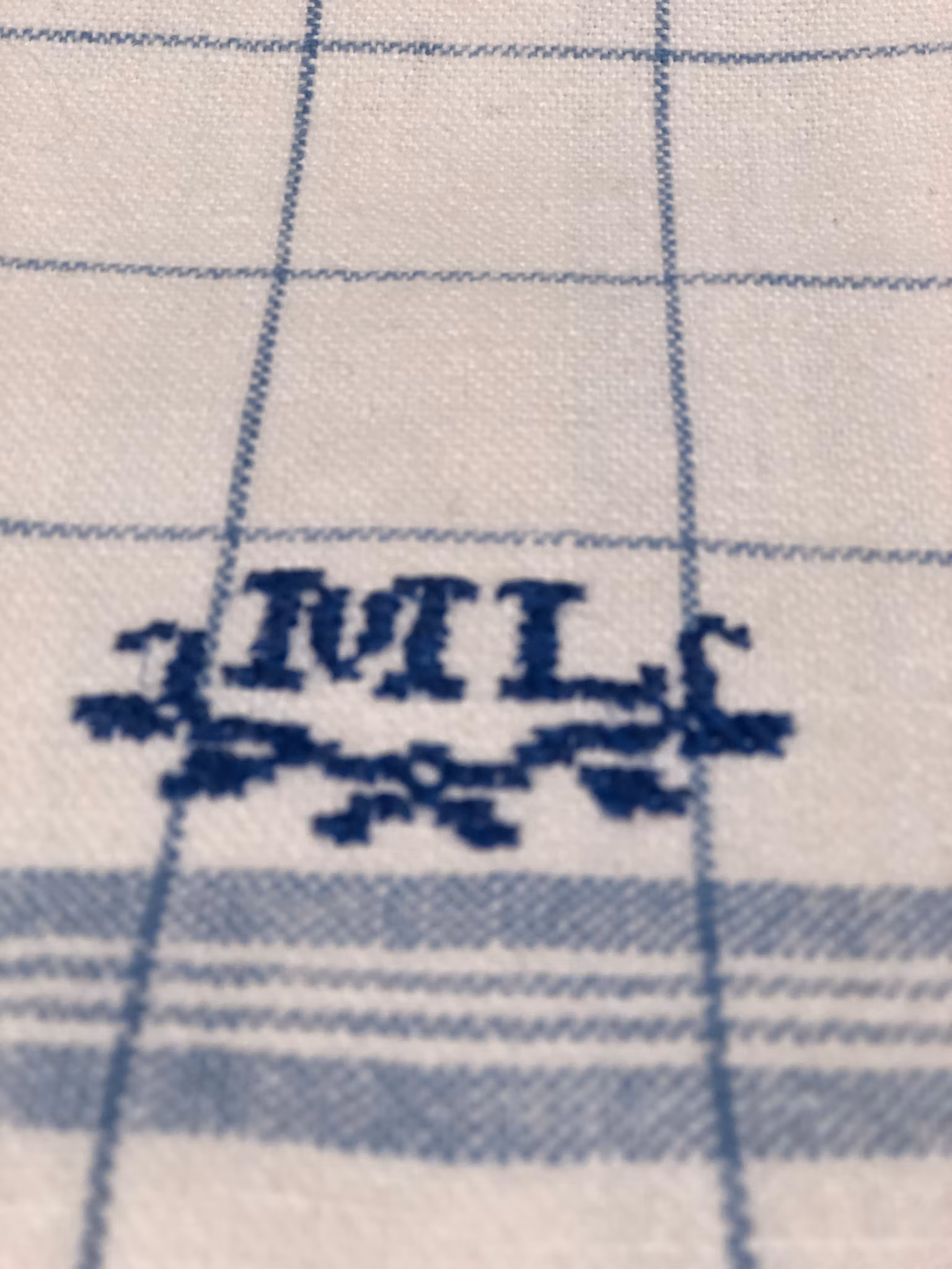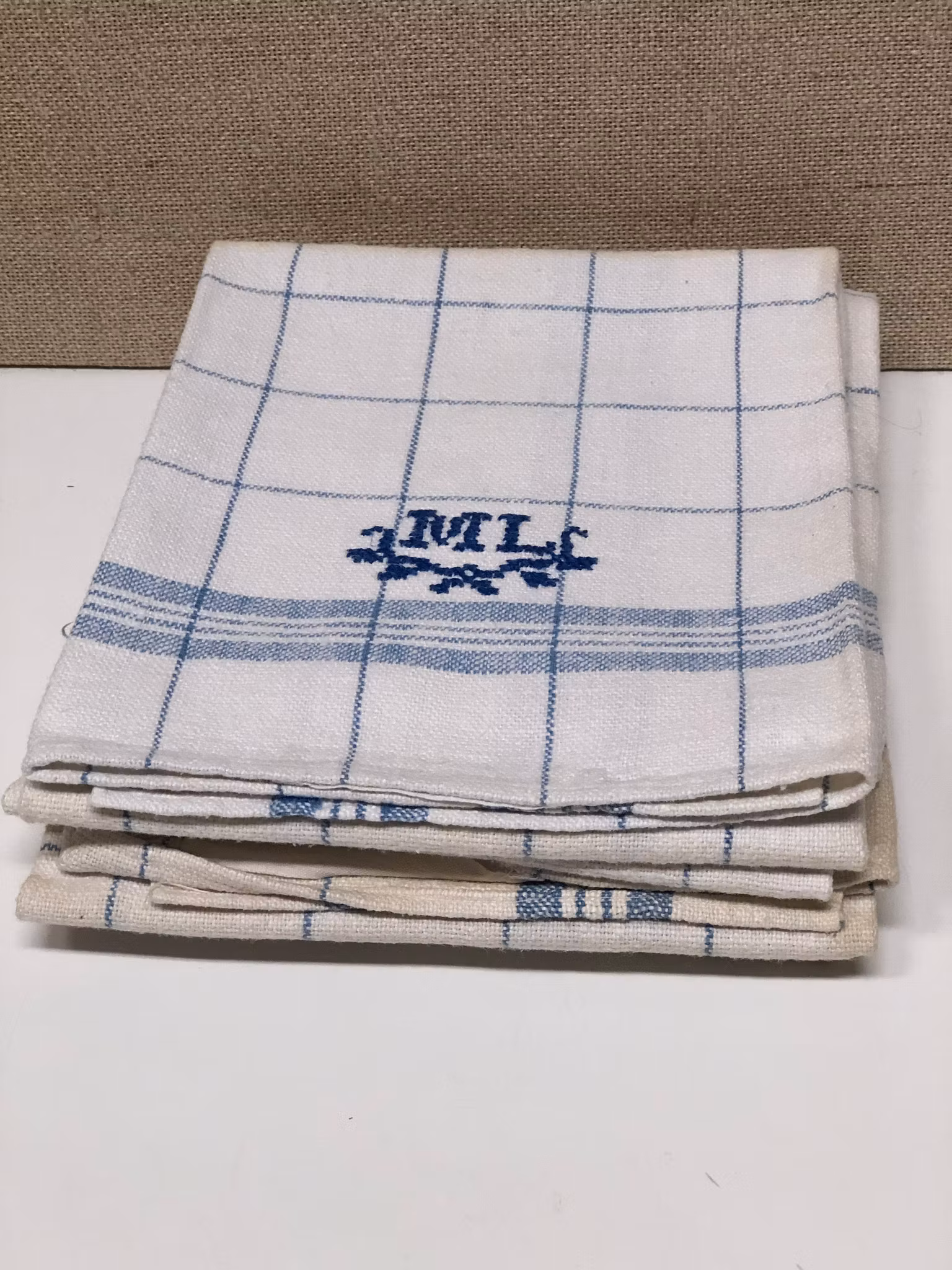 Samtliga handdukar med broderat monogram ML. Henkel för upphängning. Mått 48 x 65 cm, totalvikt 416 gram.